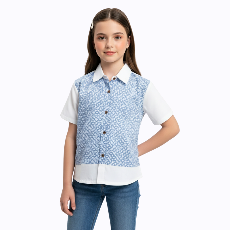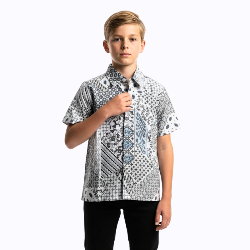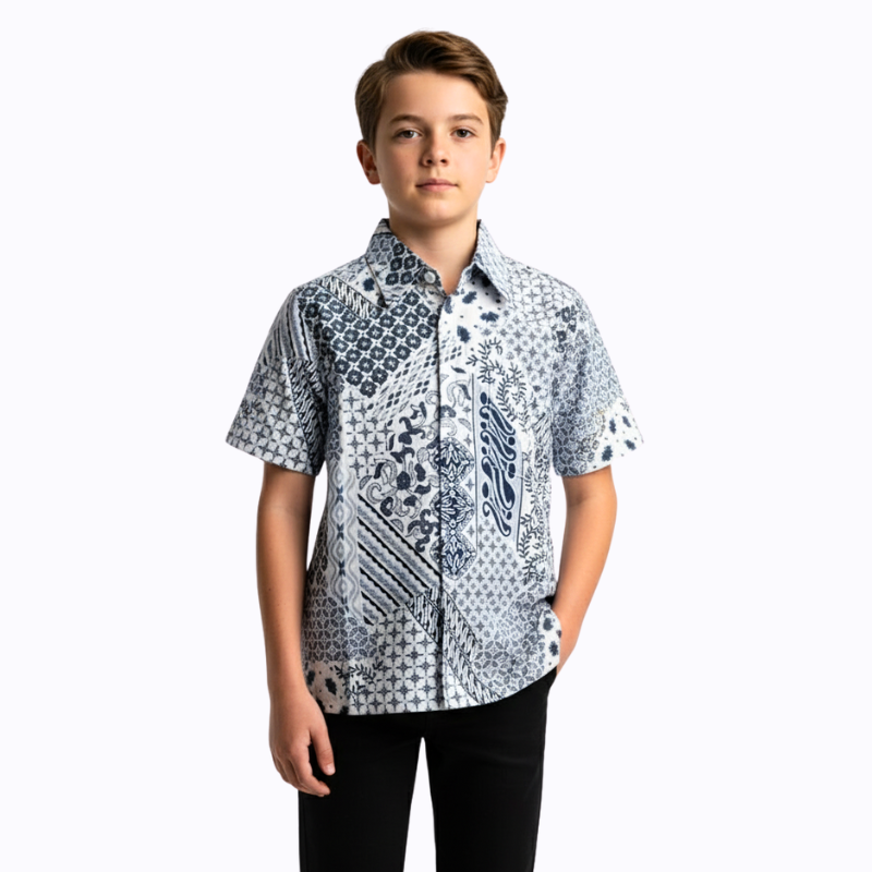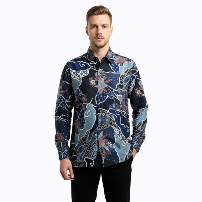 1. Kemeja batik print dengan detail motif batik cap yang elegan