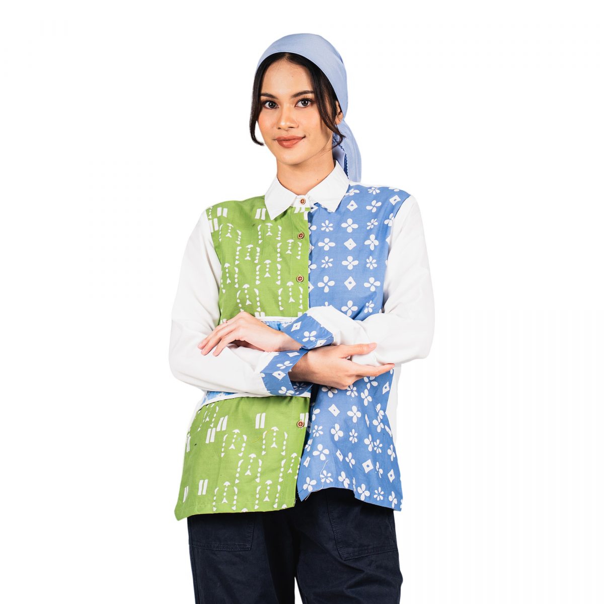 1. Kemeja bernuansa two tone detail motif batik cap yang modern