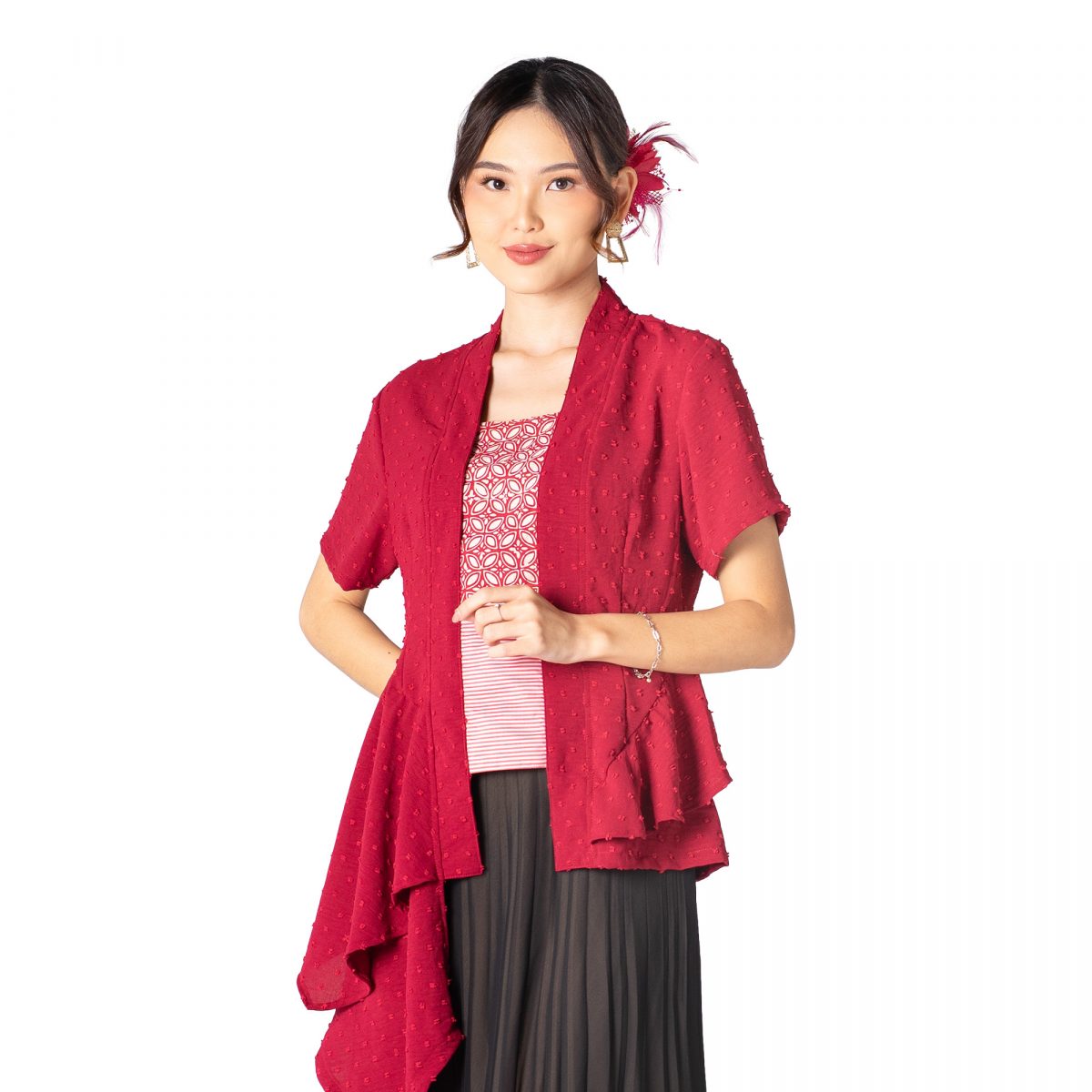1. Blouse desain kutubaru dengan aksen batik cap bergaya ethnic modern