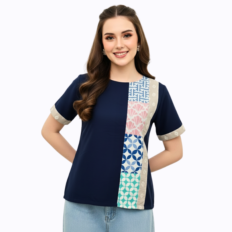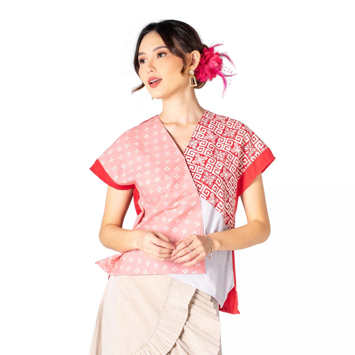 1. Blouse batik cap desain multi tone bernuansa ethnic modern