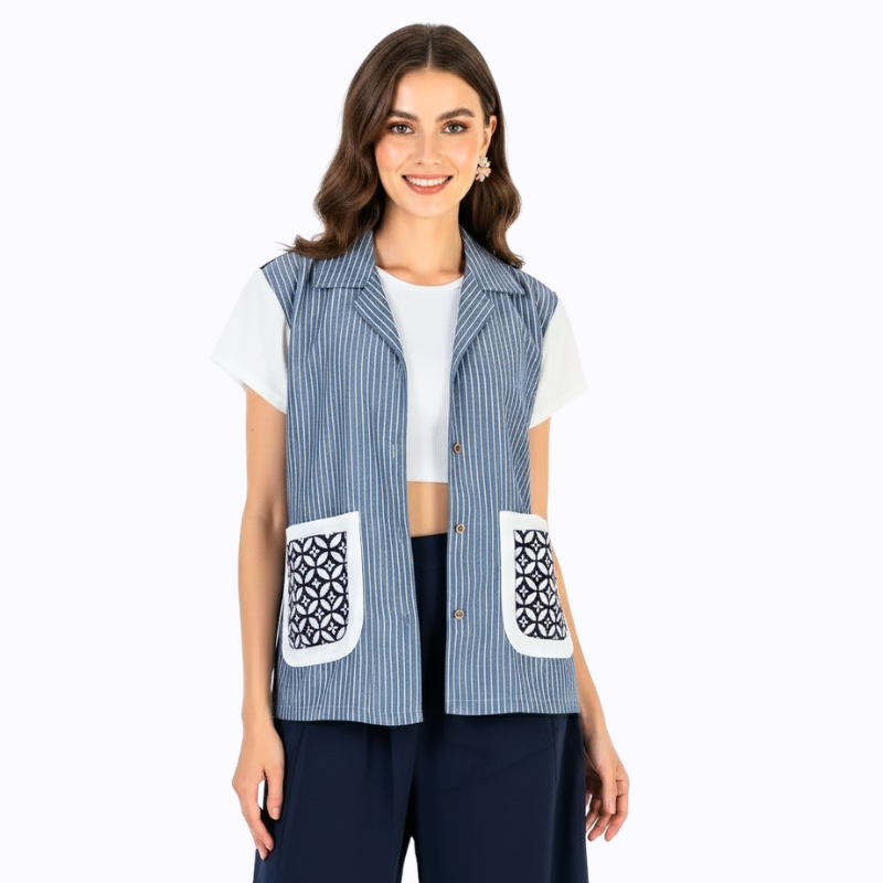 1. Blazer bergaya modern ethnic dengan aksen batik cap