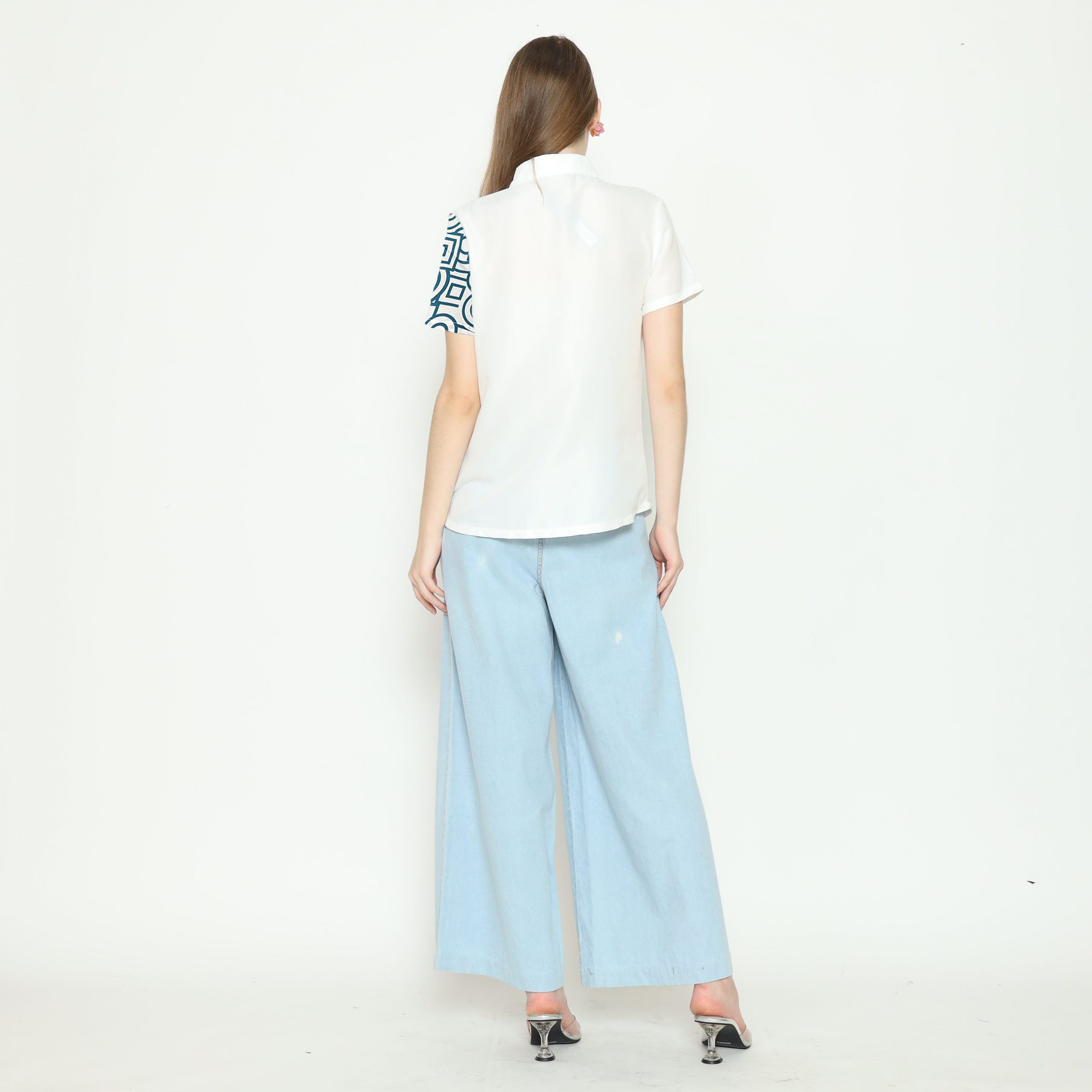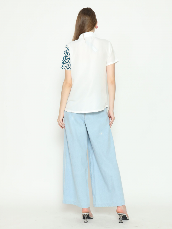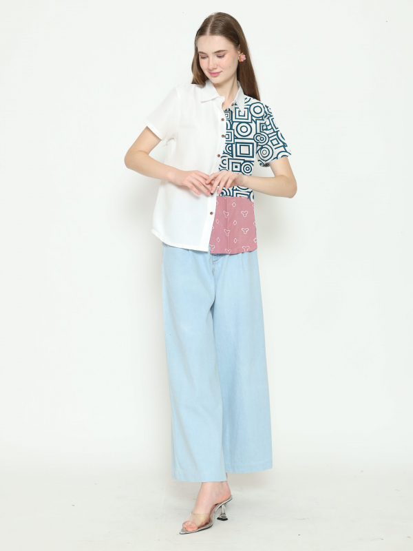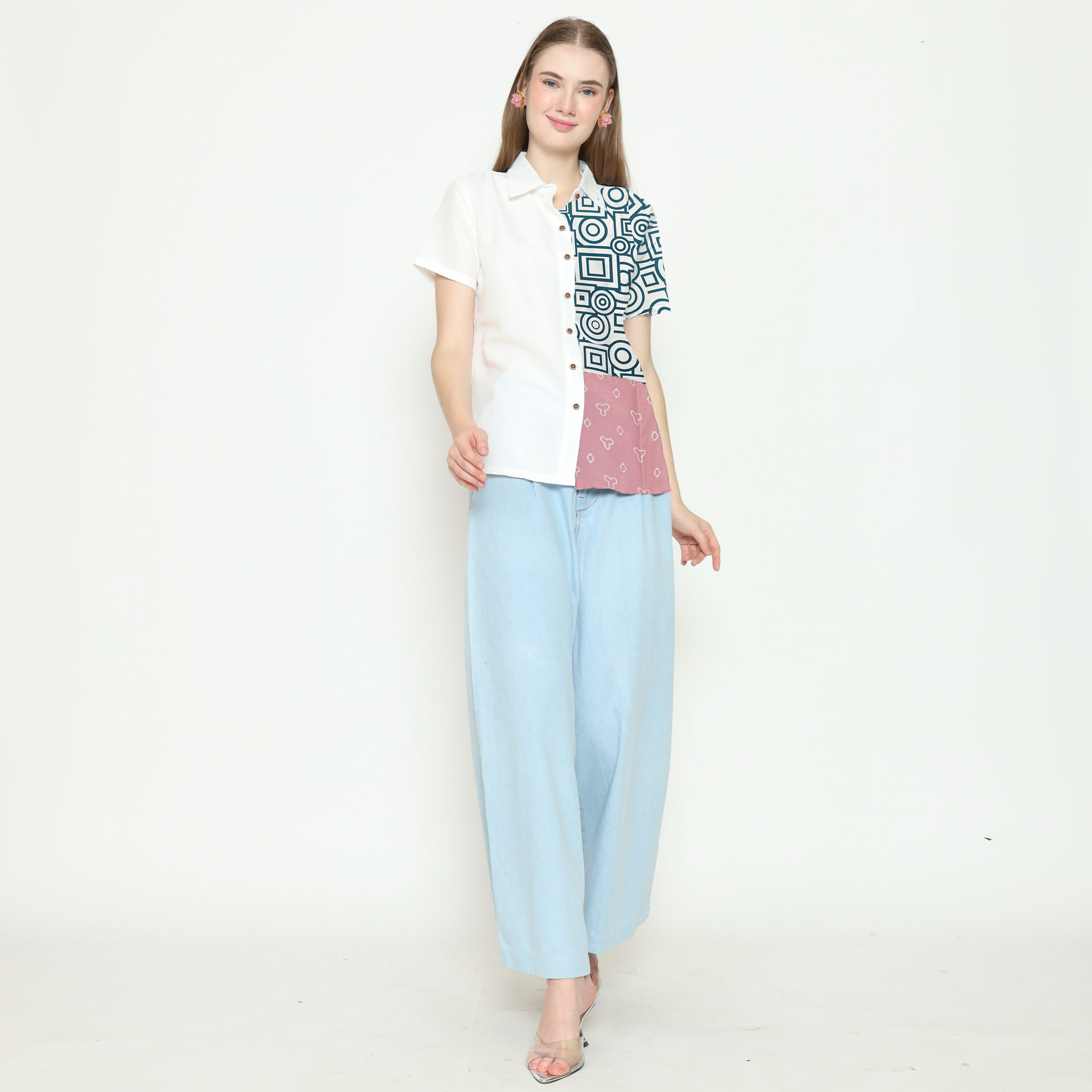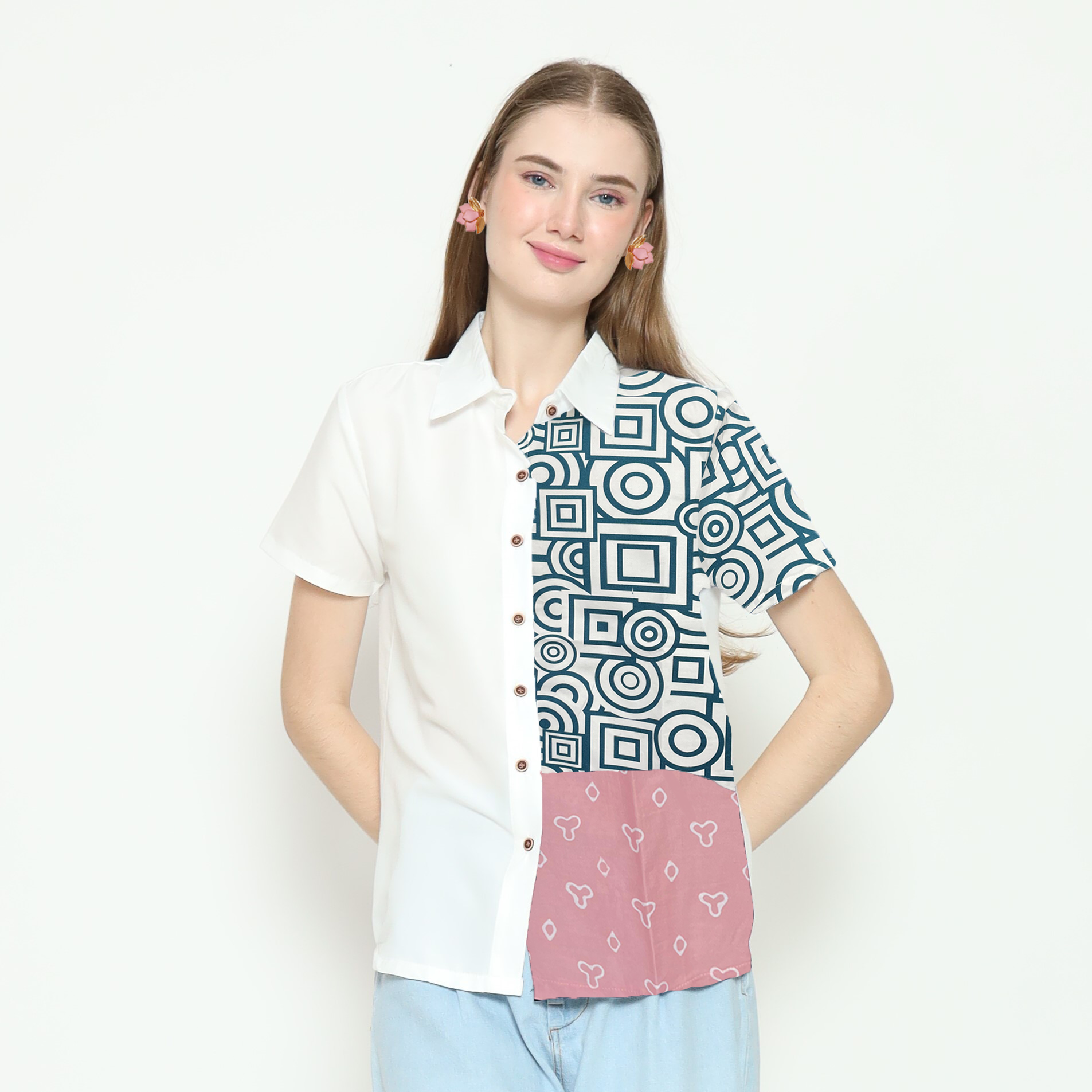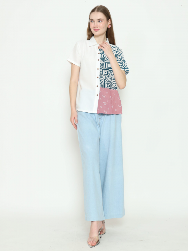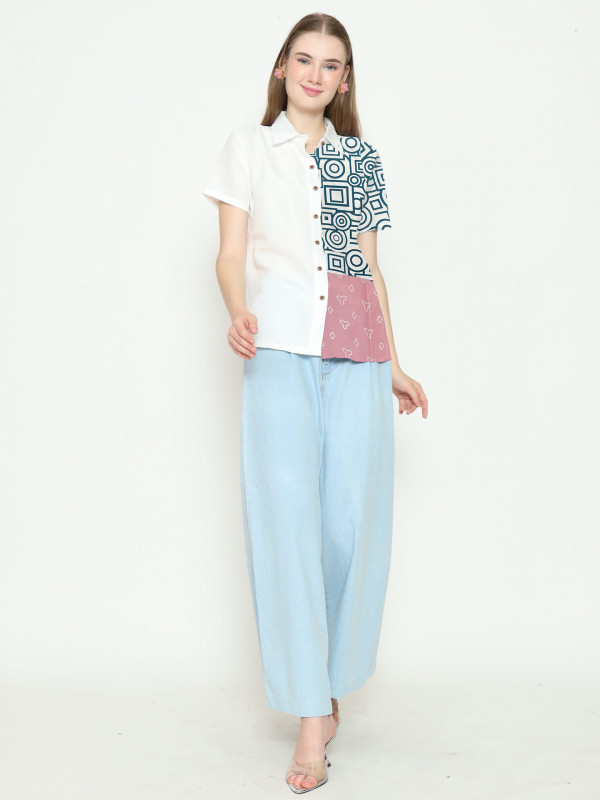 1. Kemeja bergaya semi formal detail motif batik cap yang modern
