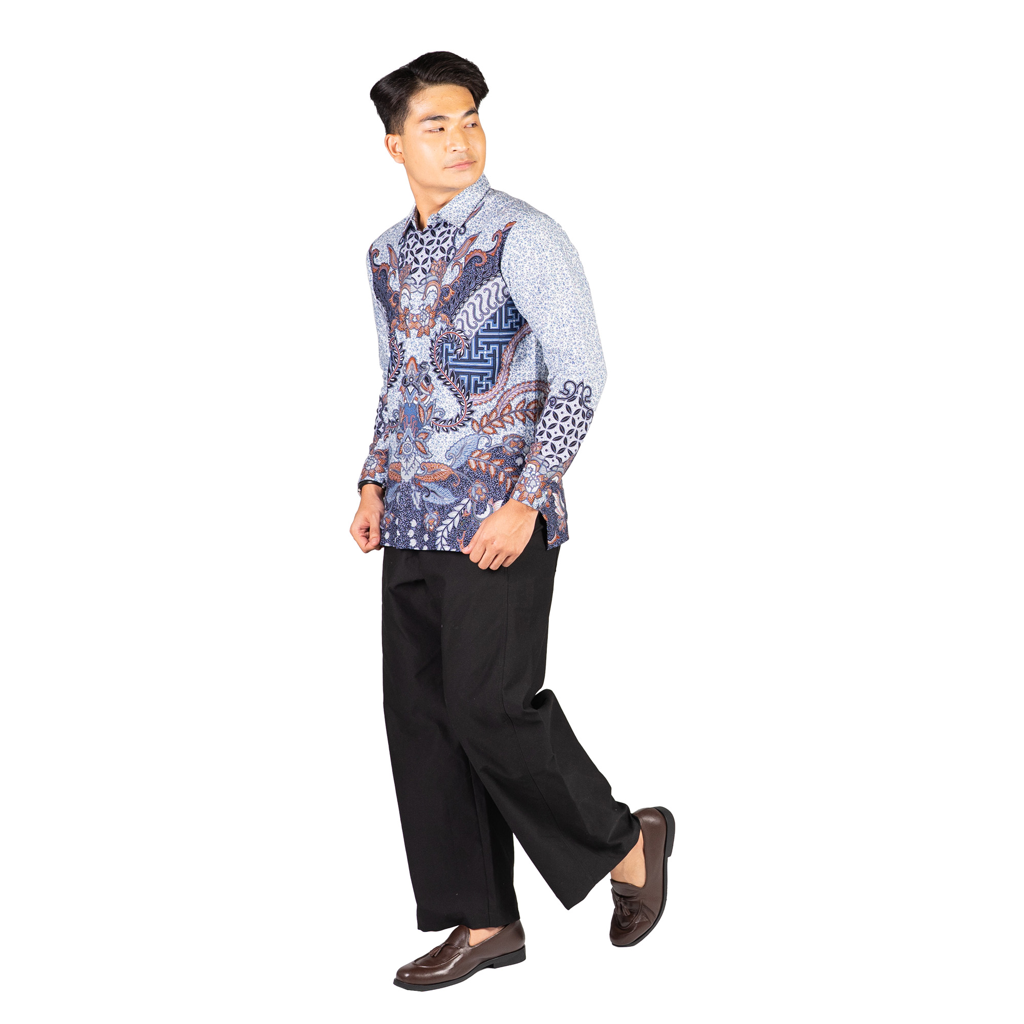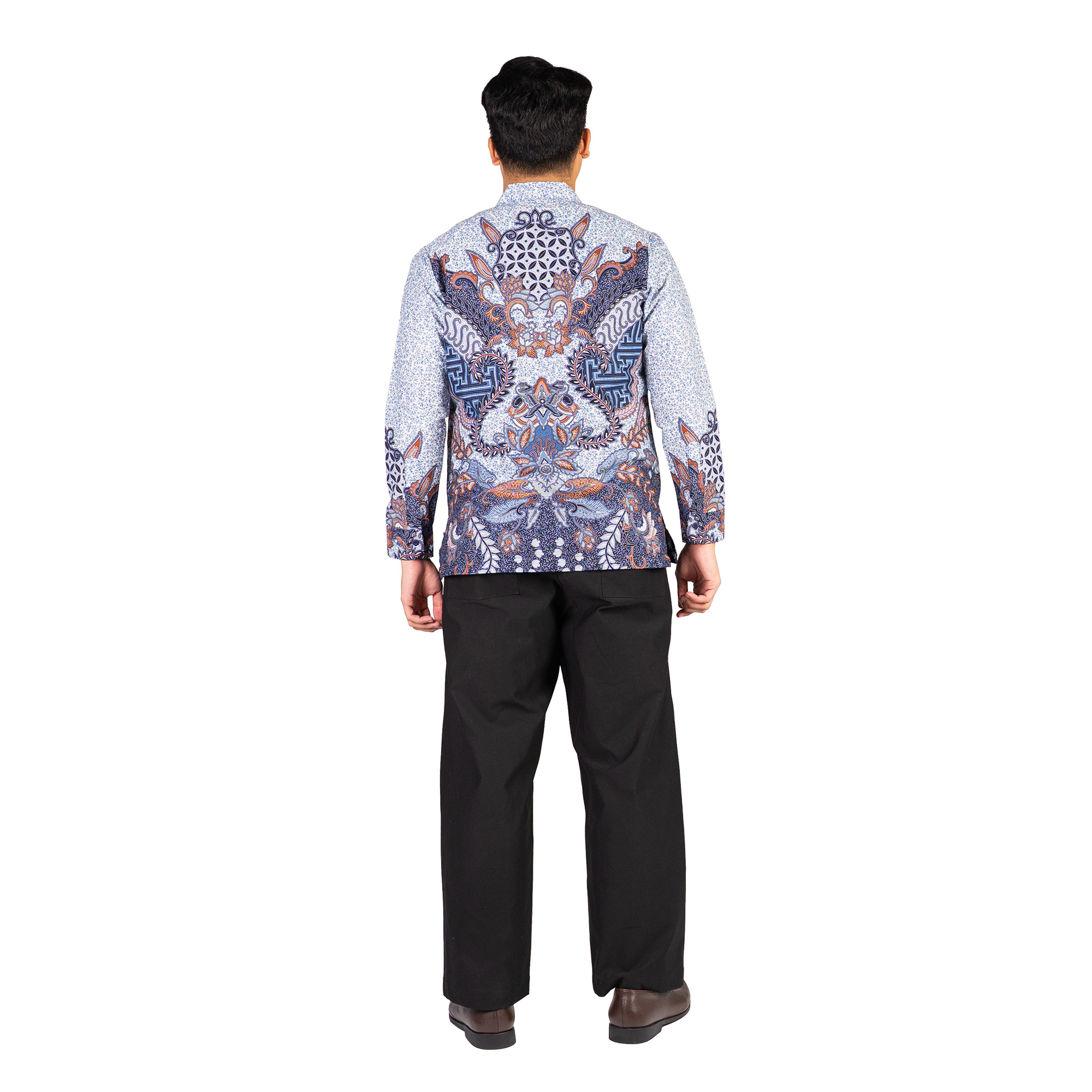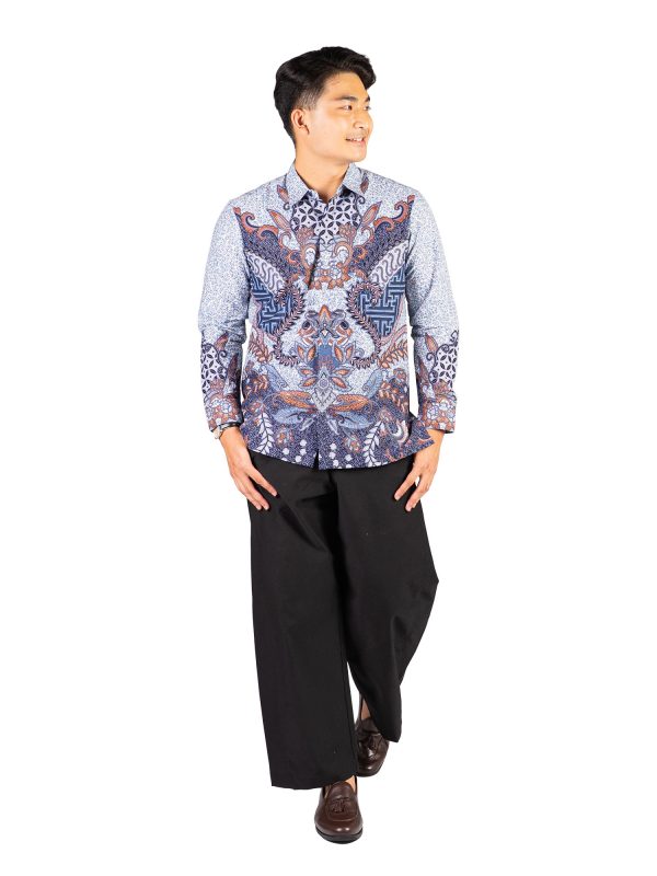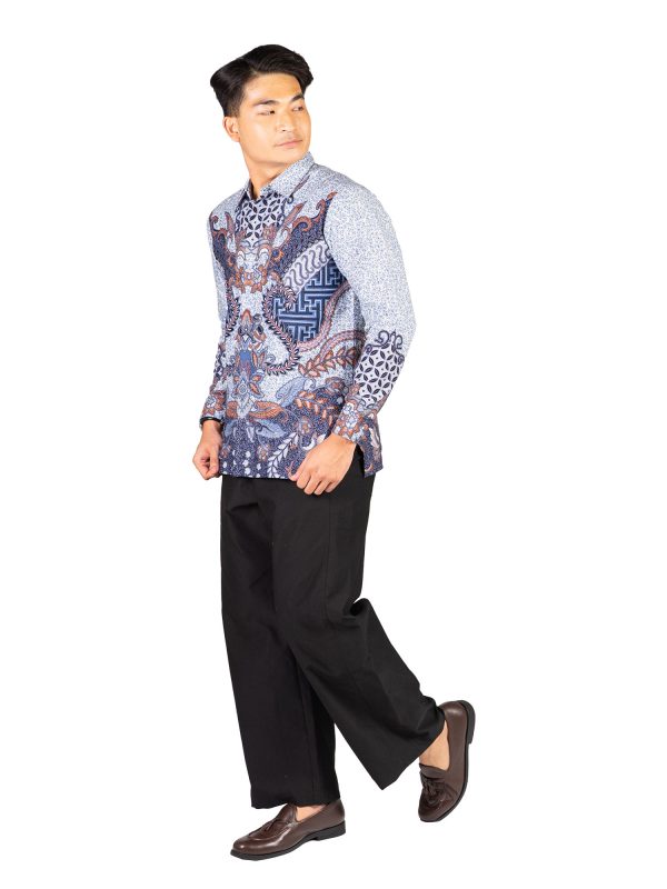 1. Kemeja batik print dengan detail motif yang elegan