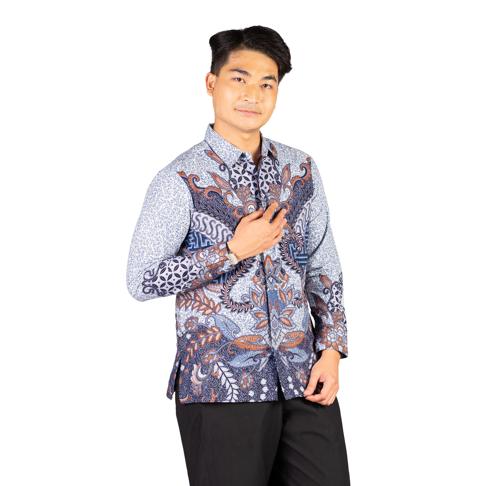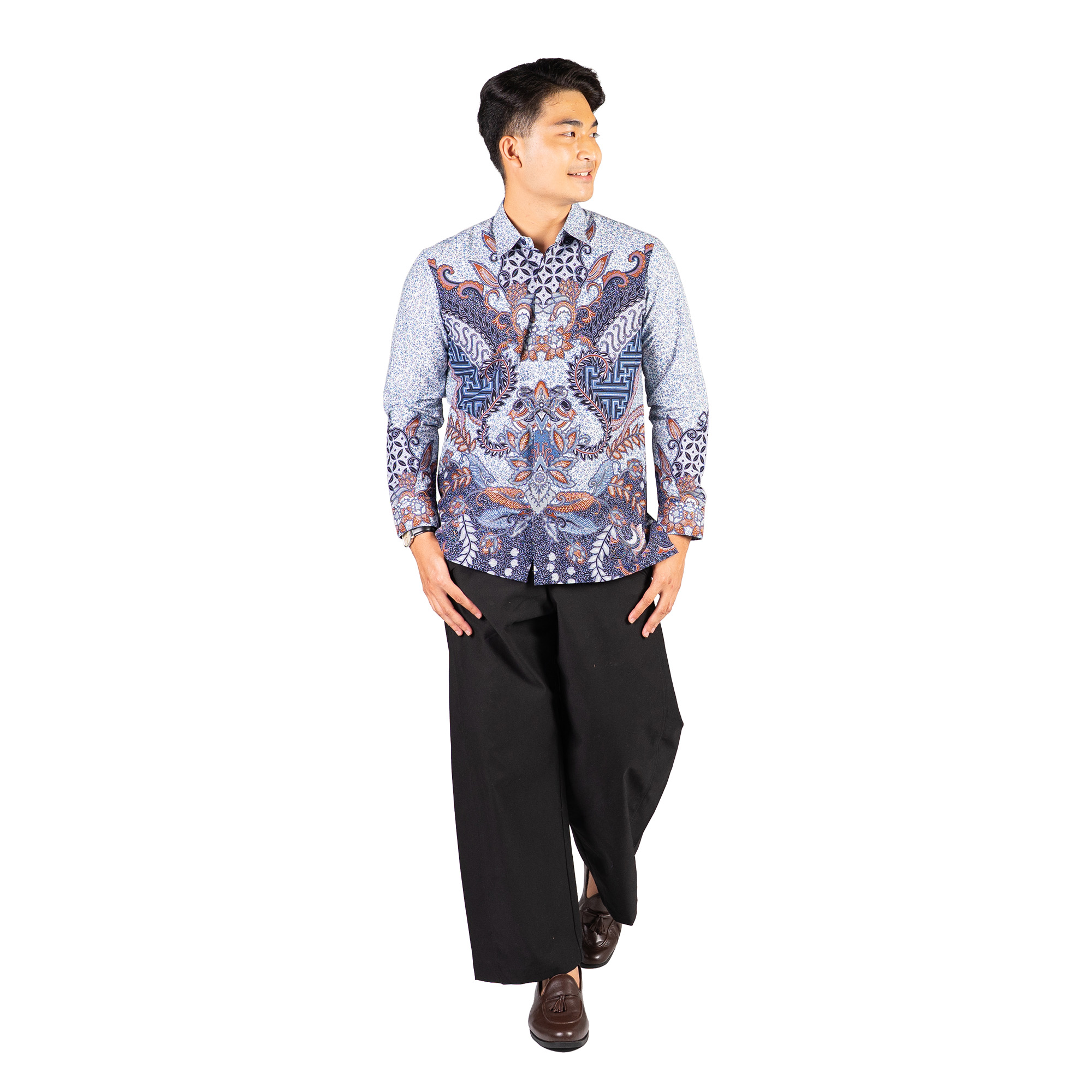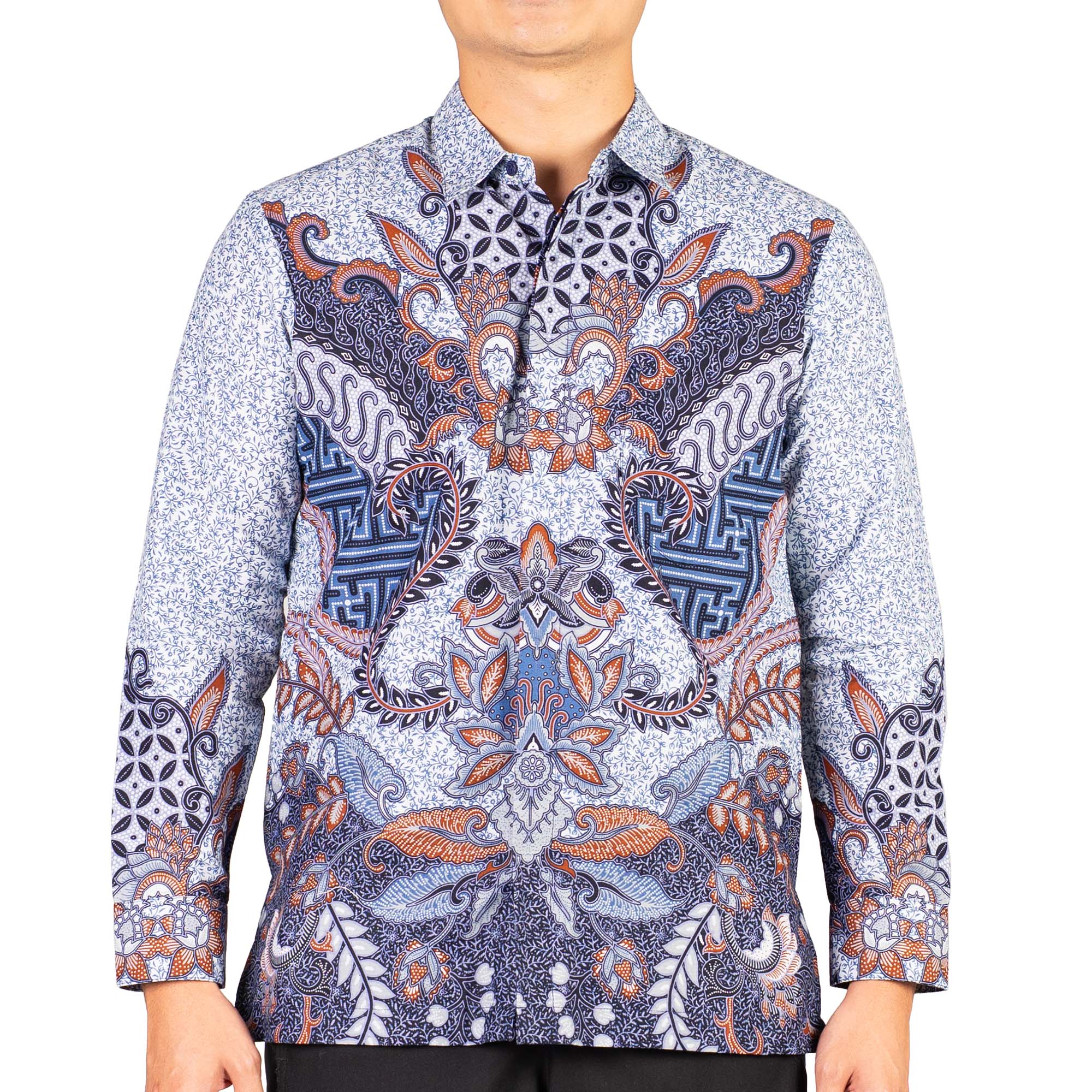 1. Kemeja batik print dengan detail motif yang elegan