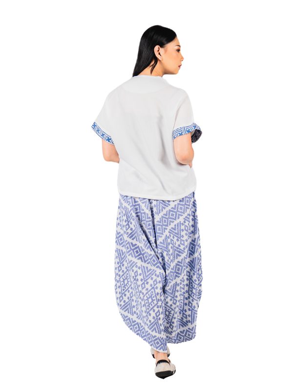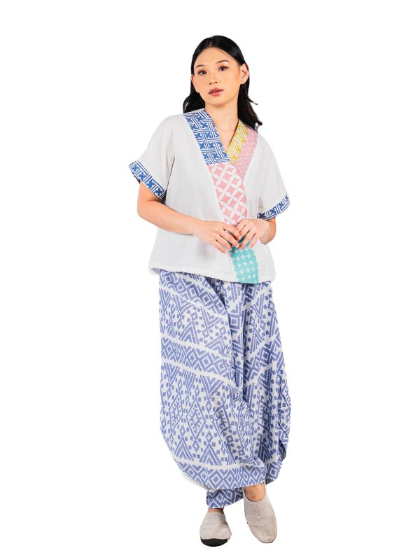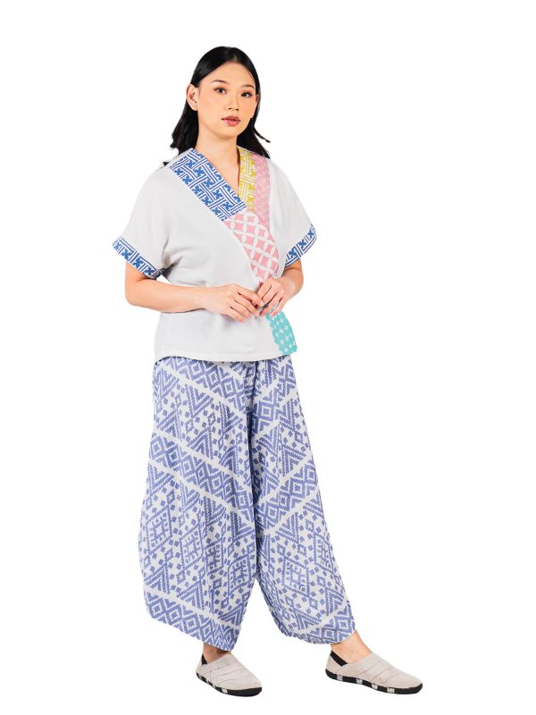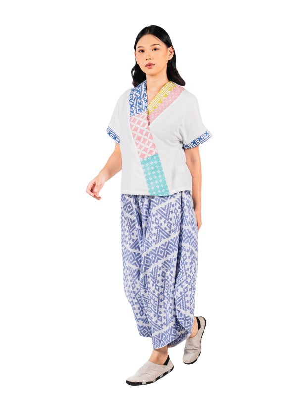 1. Blouse batik cap asymmetric patchwork dengan desain boxy cut