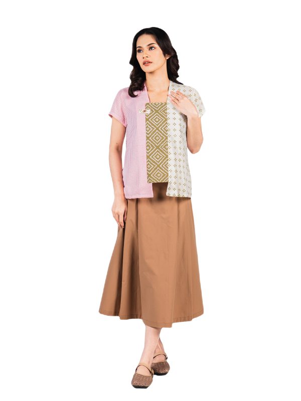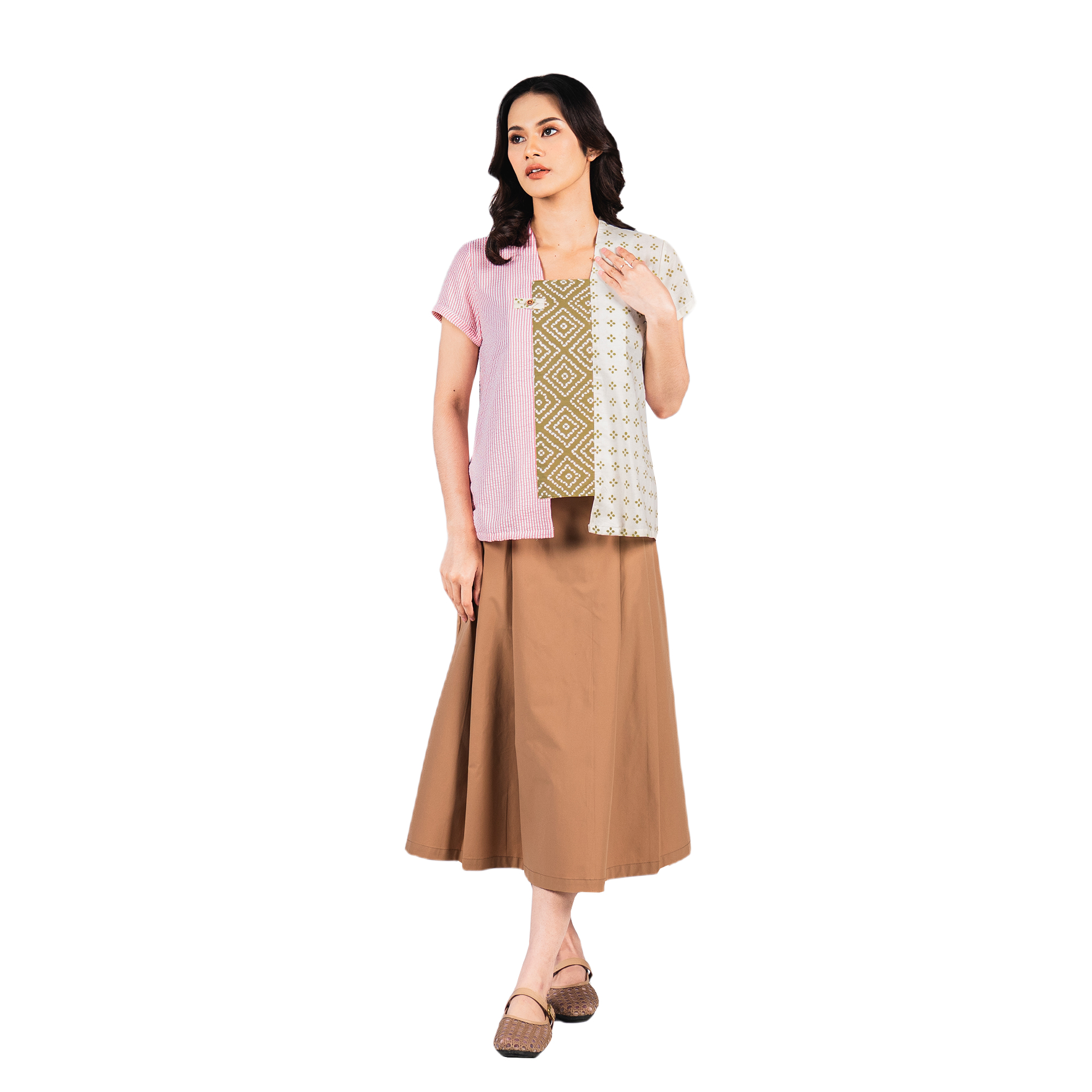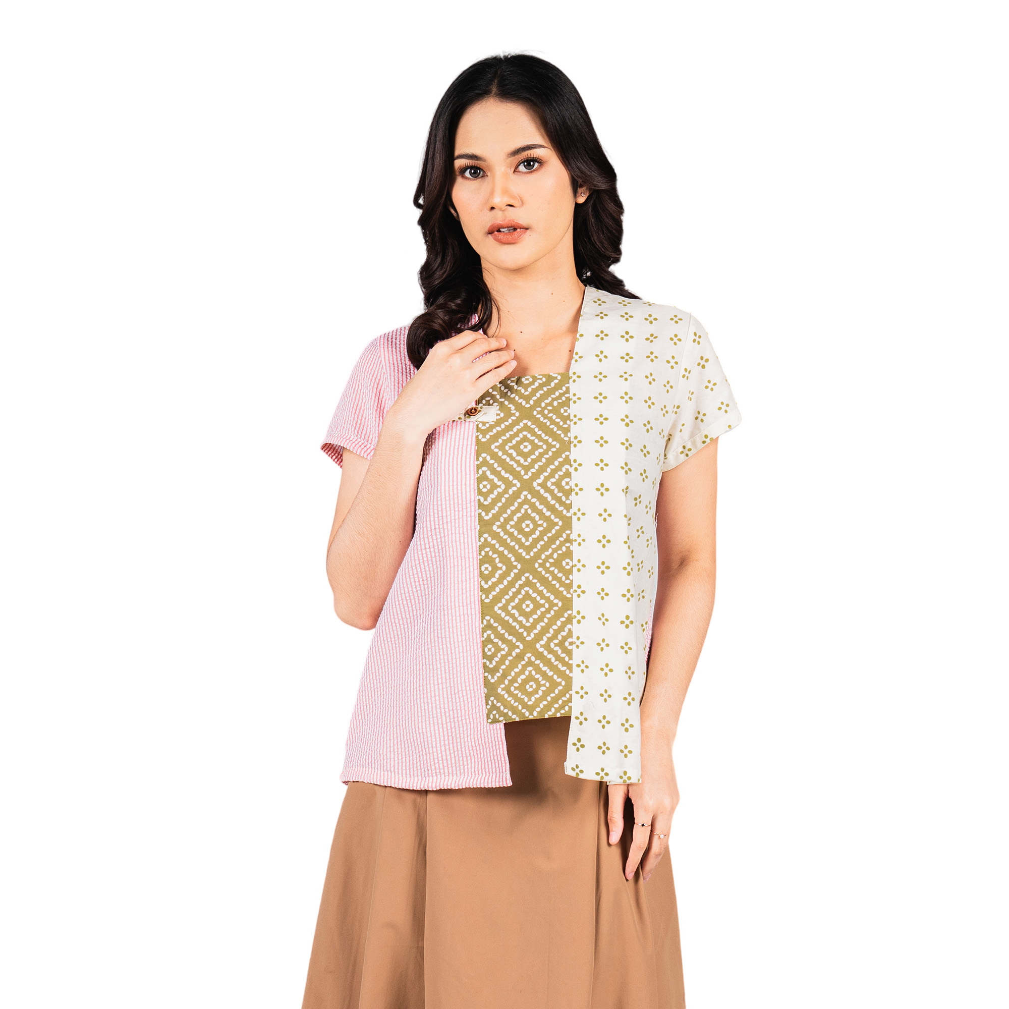 1. Blouse desain kutubaru dengan aksen batik cap bergaya ethnic modern