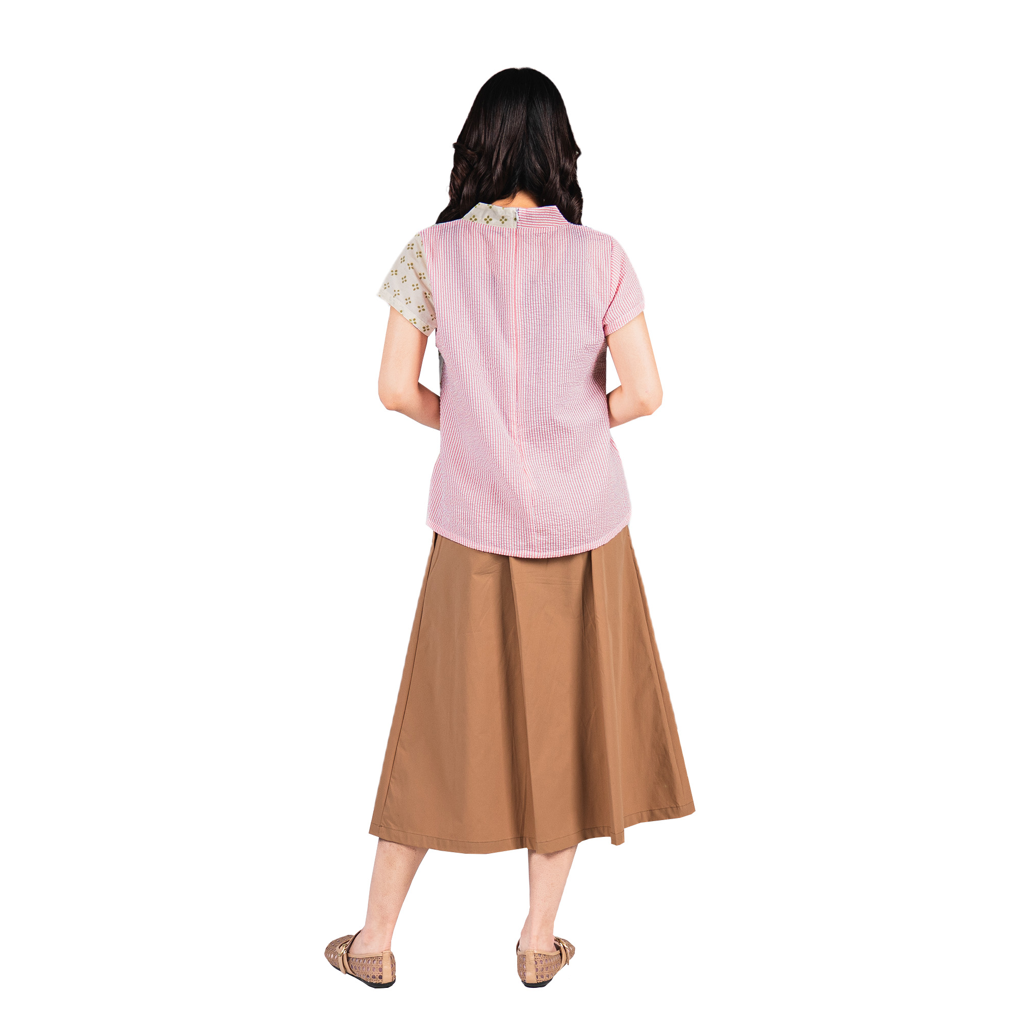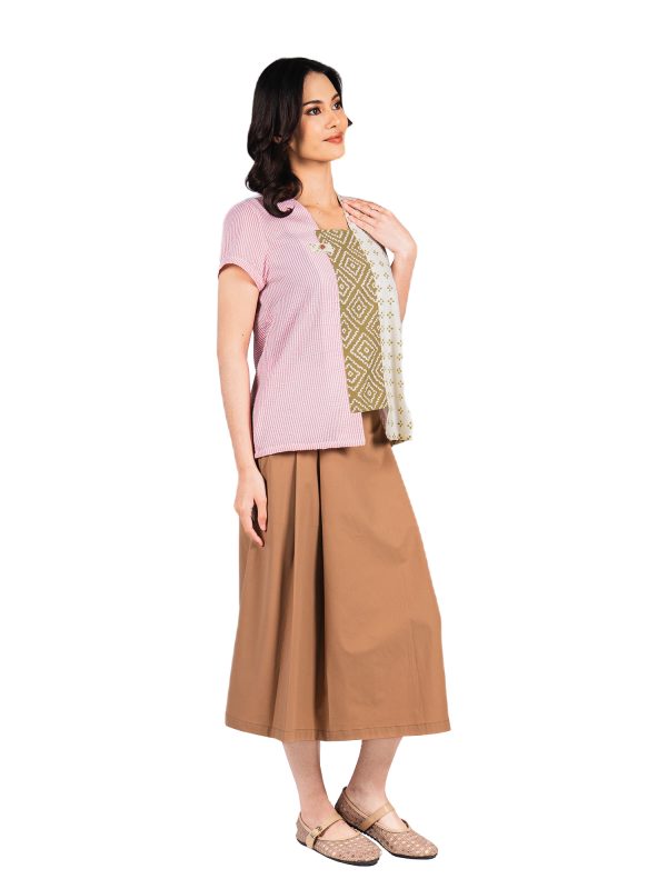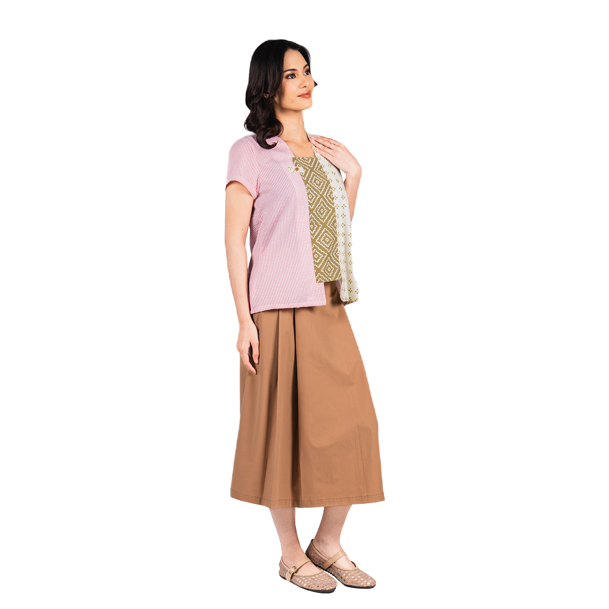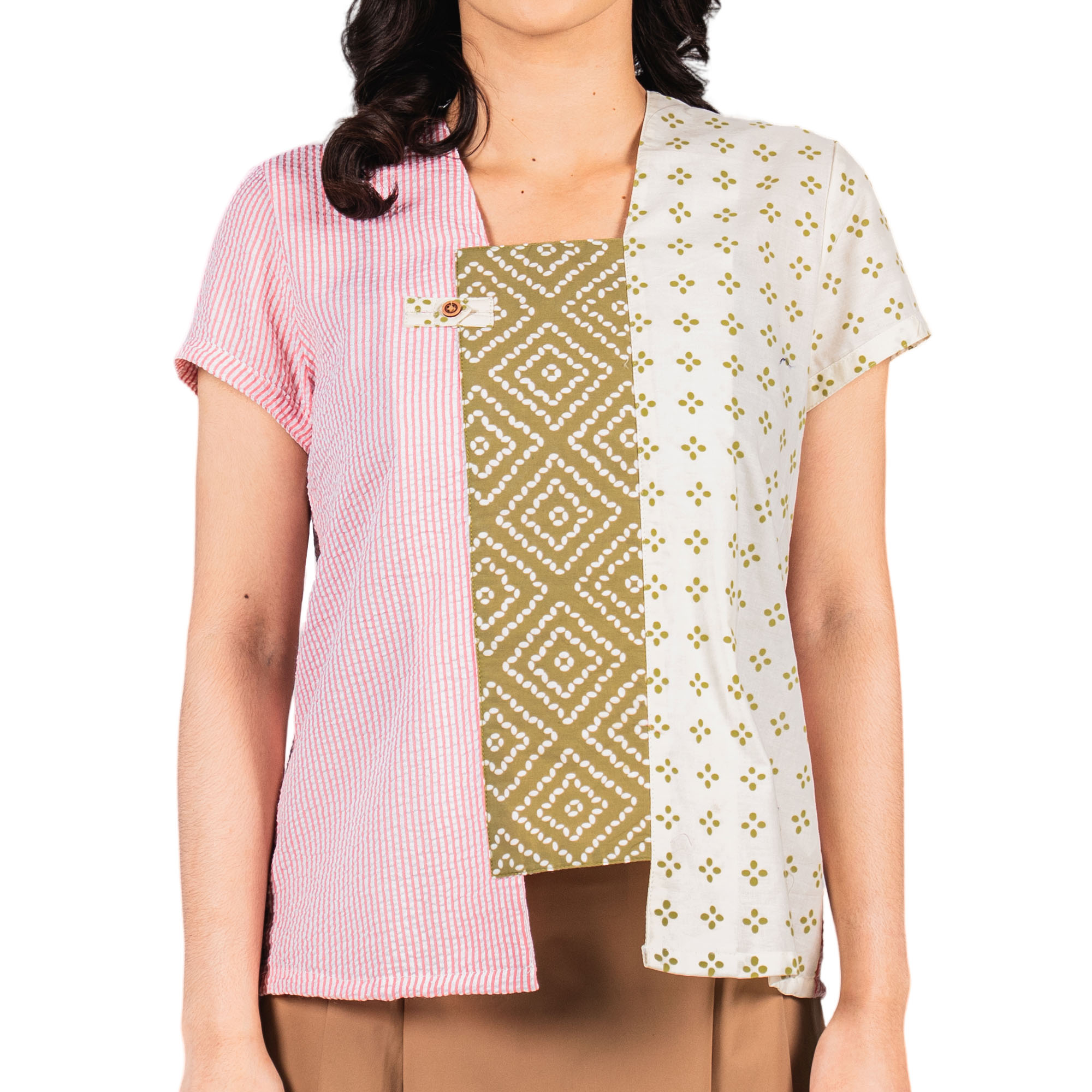 1. Blouse desain kutubaru dengan aksen batik cap bergaya ethnic modern