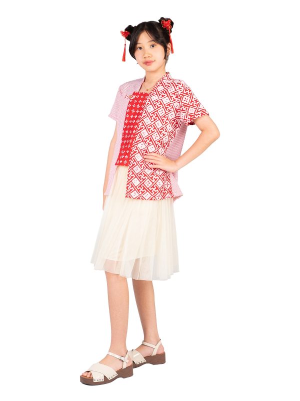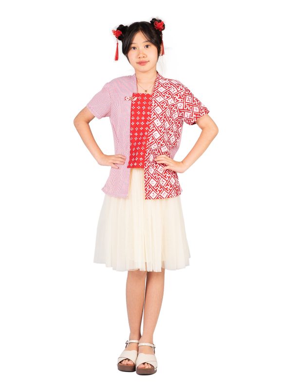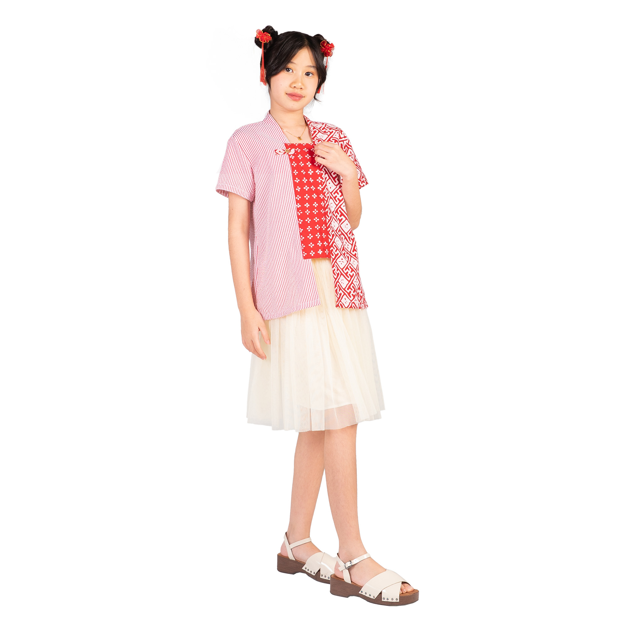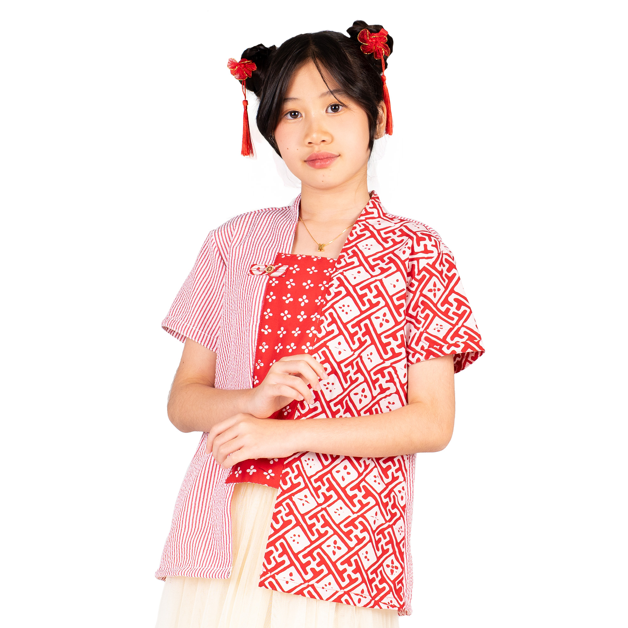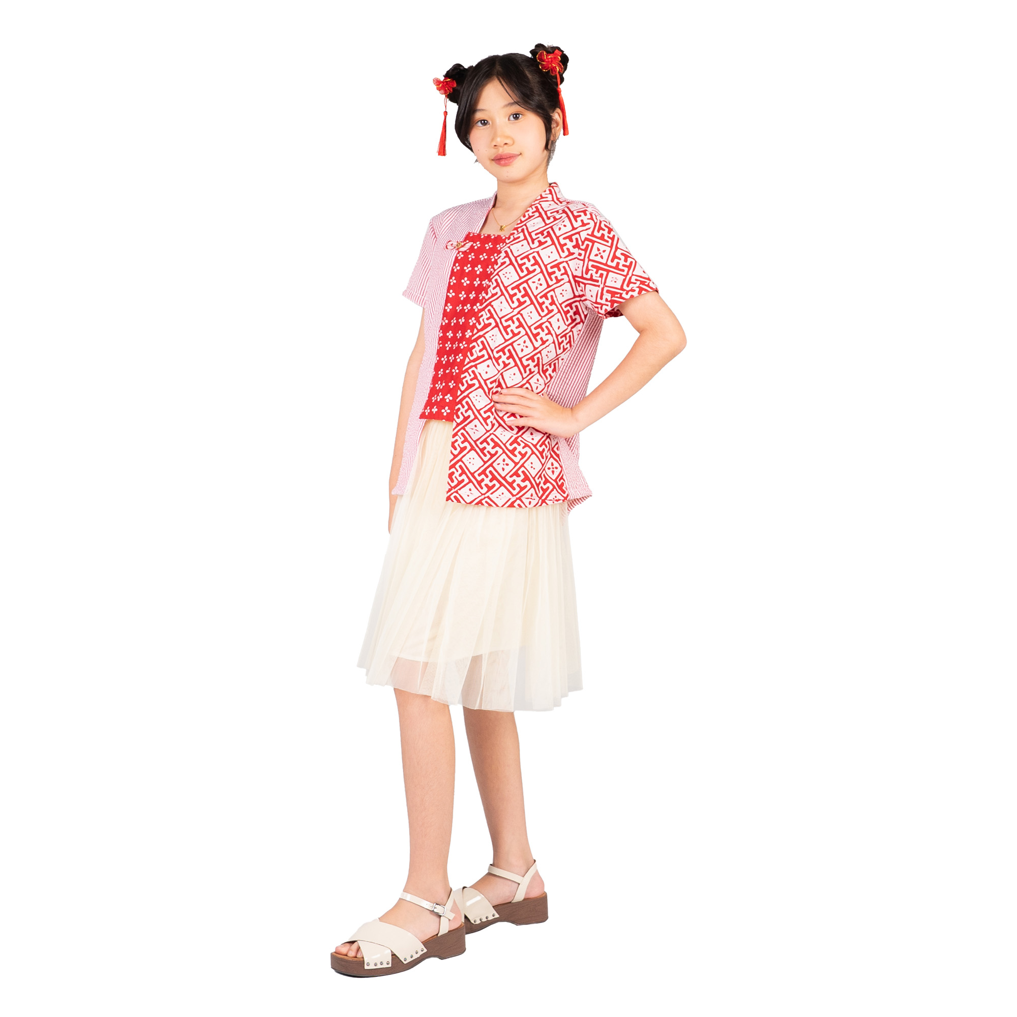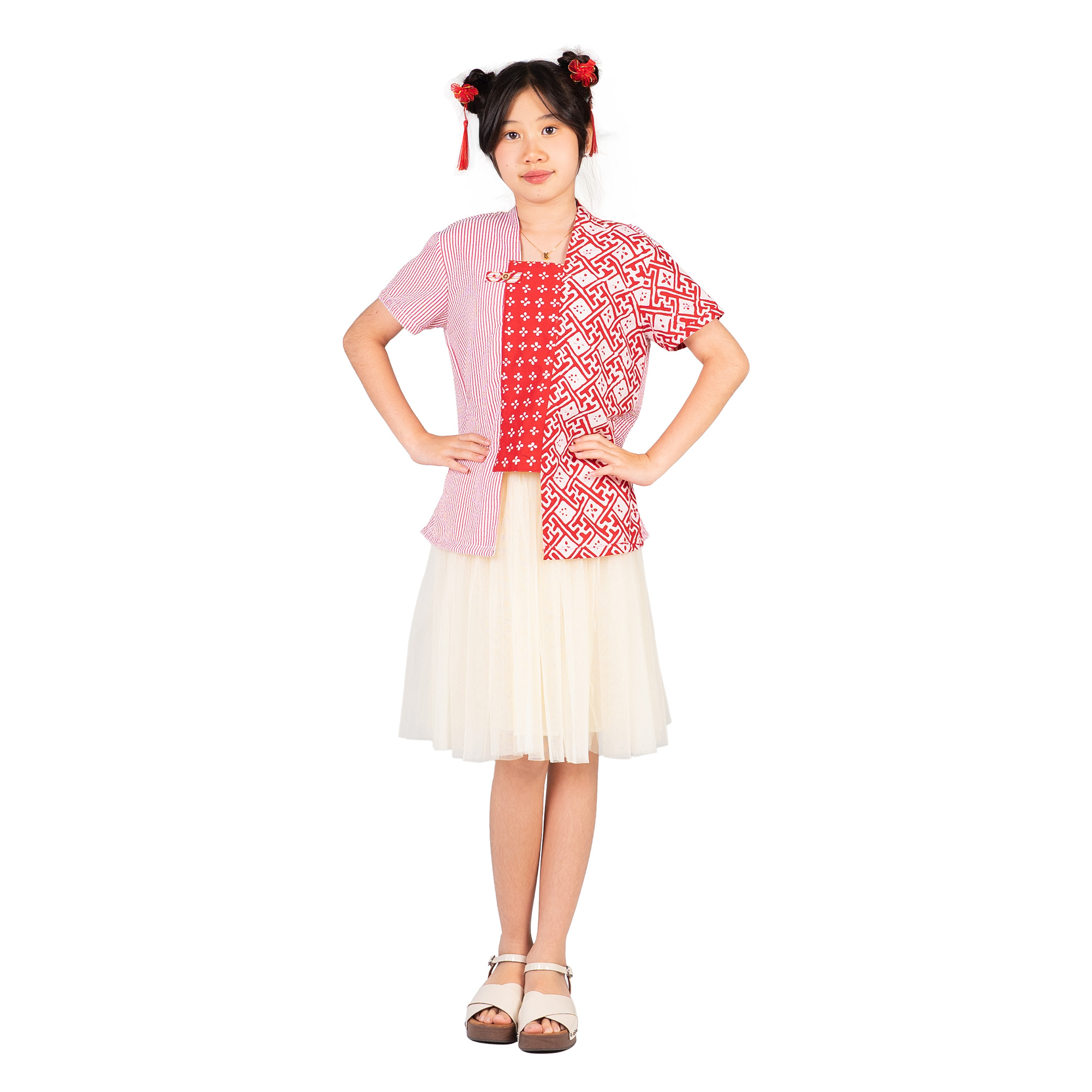 1. Blouse desain kutubaru dengan aksen batik cap bergaya ethnic modern