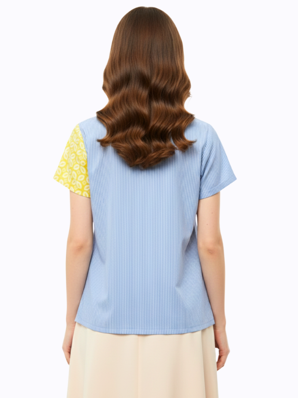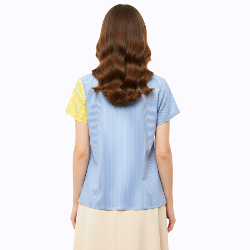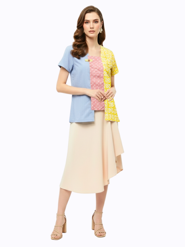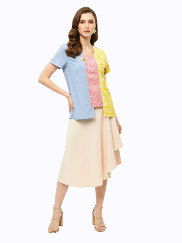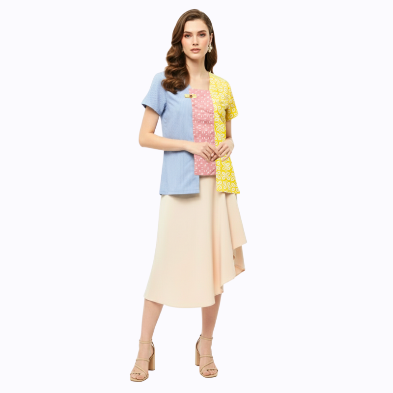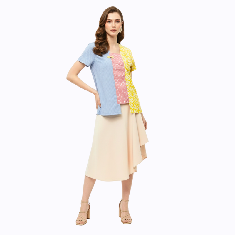 1. Blouse desain kutubaru dengan aksen batik cap bergaya ethnic modern