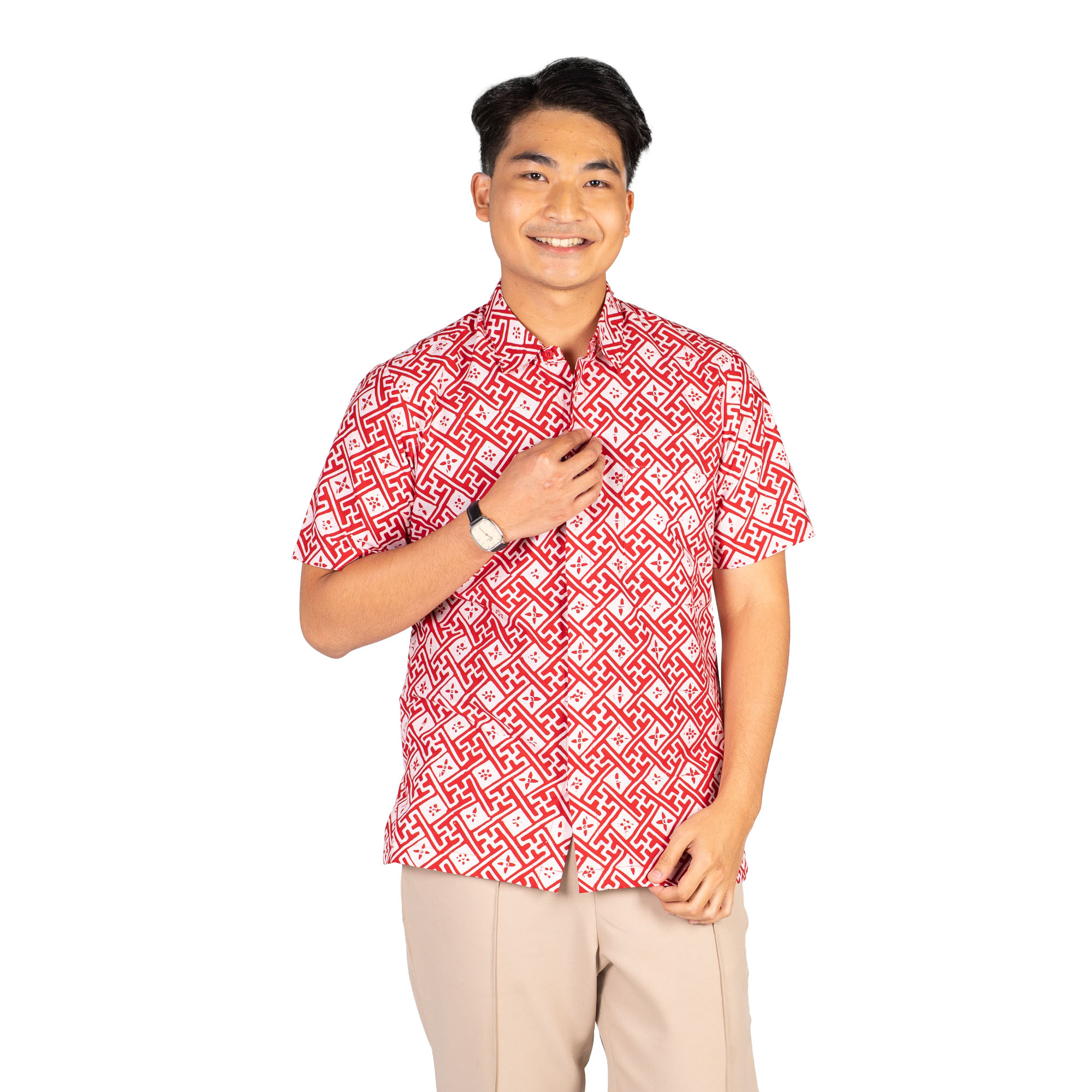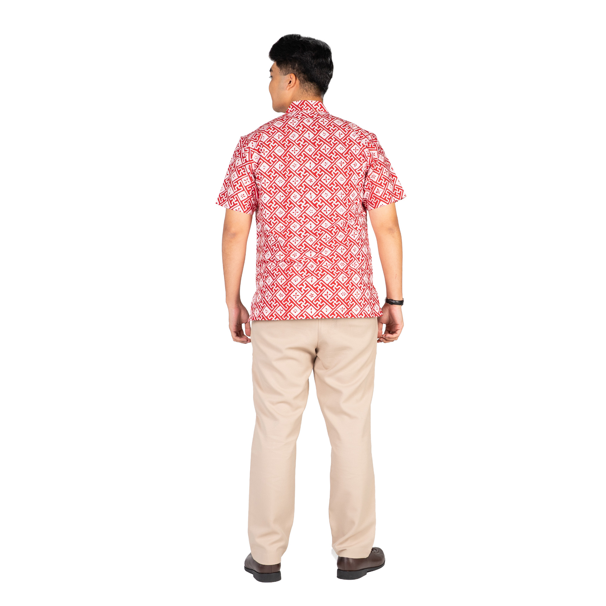1. Kemeja batik cap dengan detail motif batik cap yang elegan
