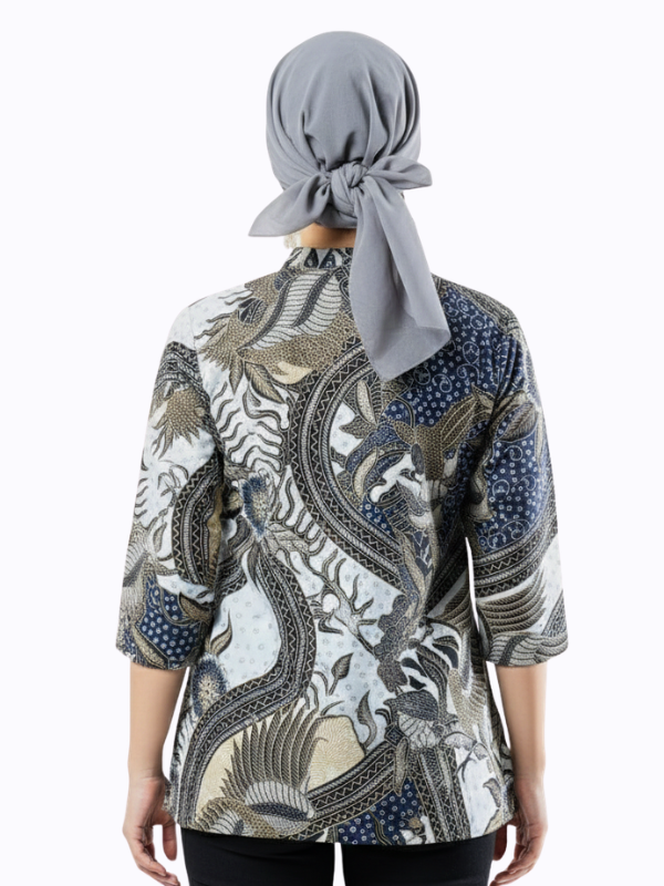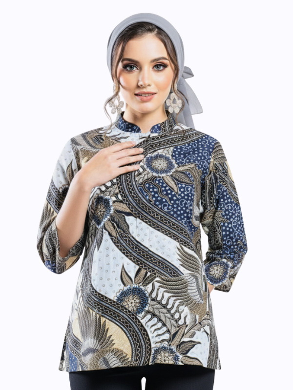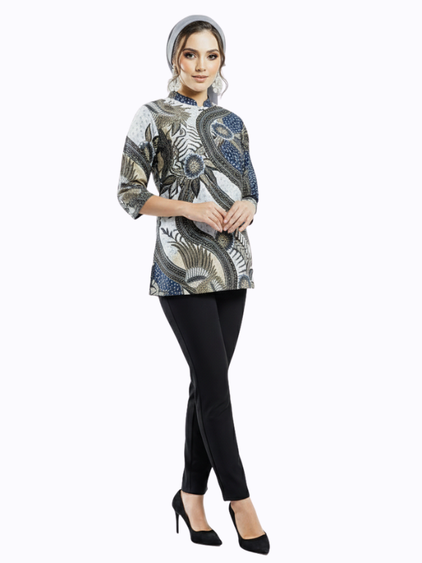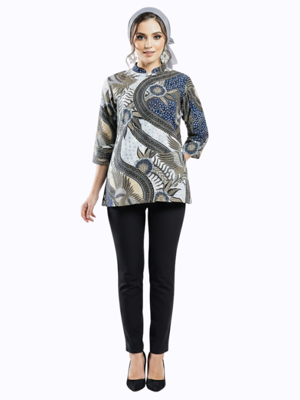 1. Blouse bergaya formal dengan balutan batik cap modern