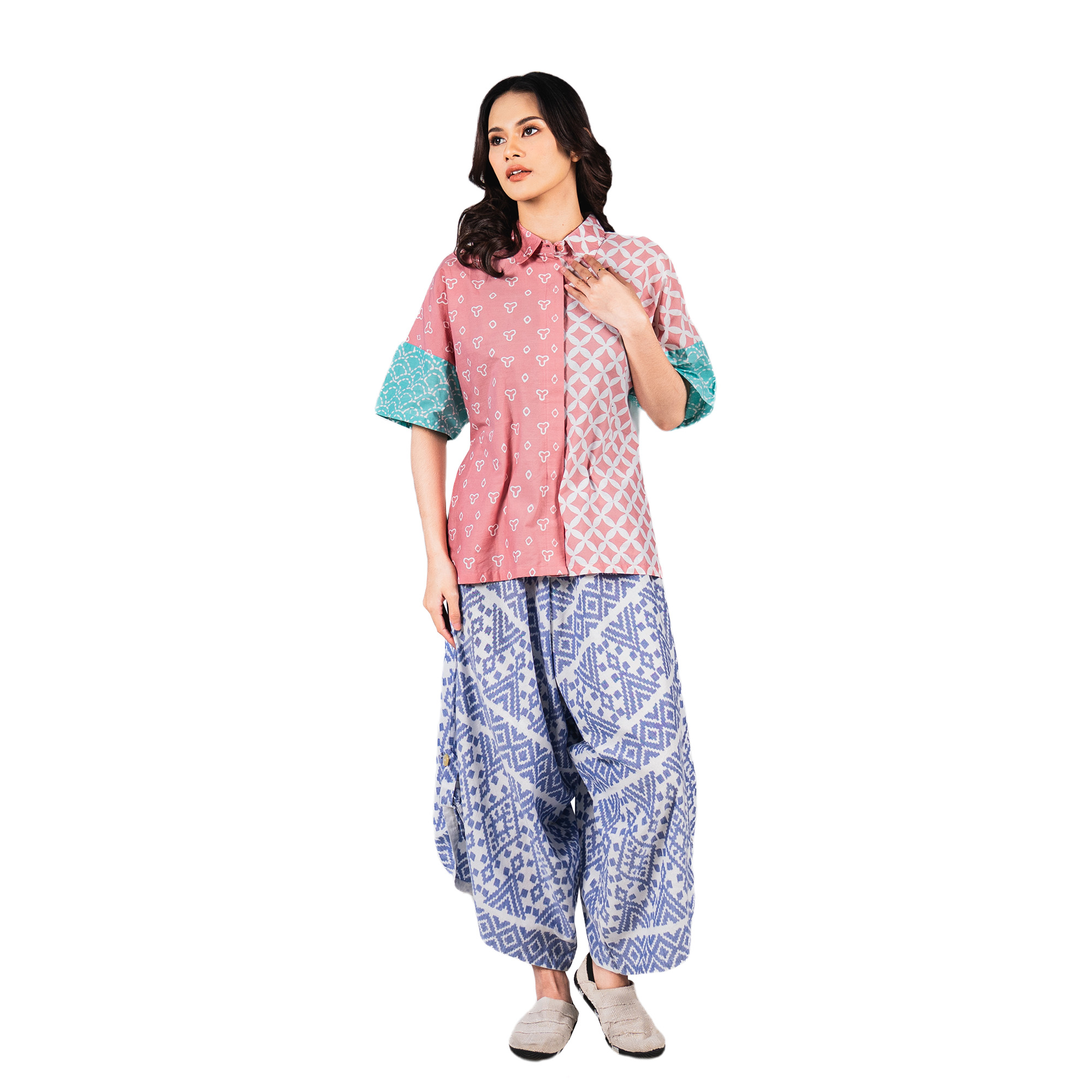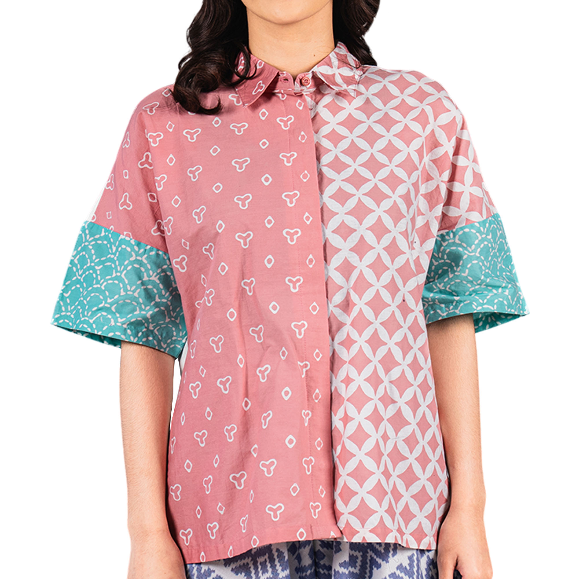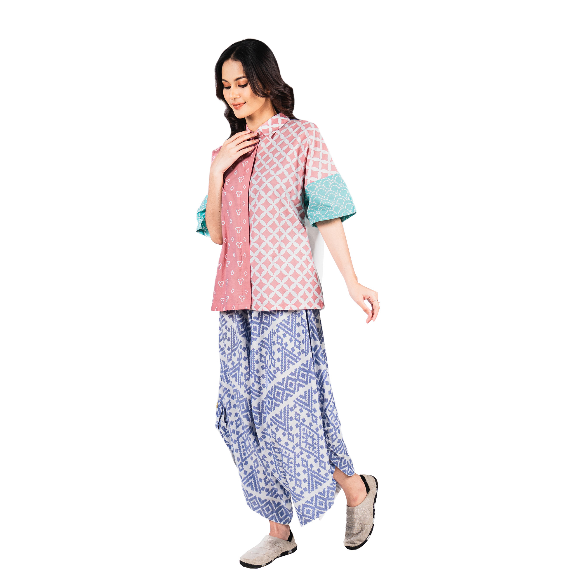 1. Blouse bernuansa multi tone detail motif batik cap yang modern
