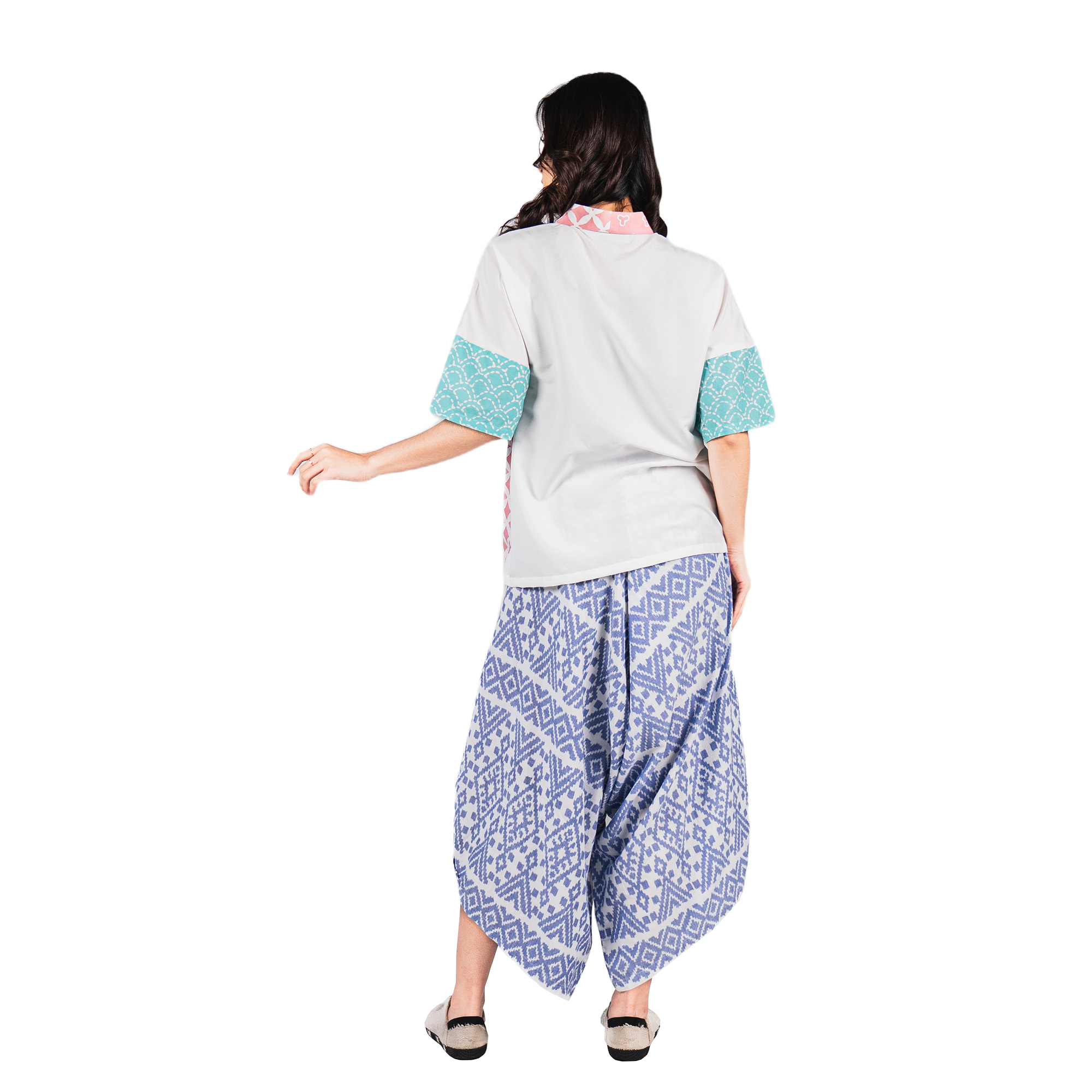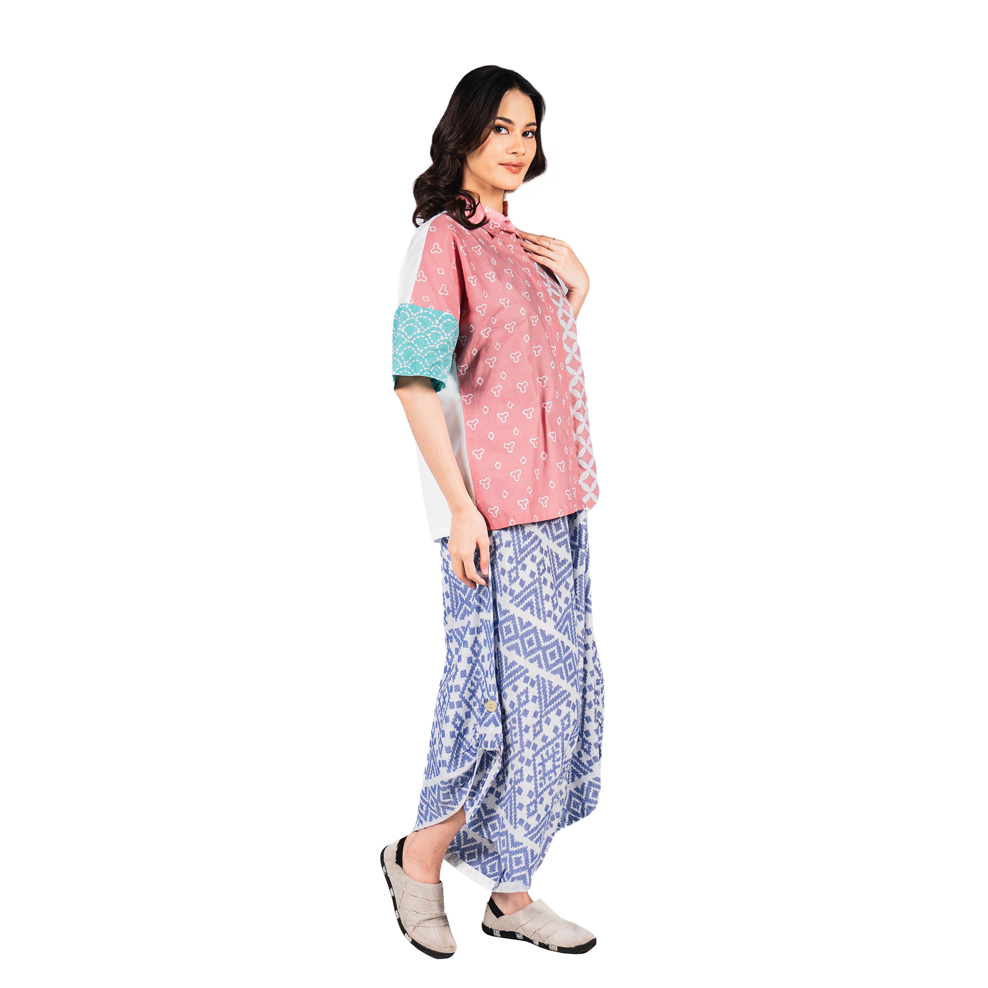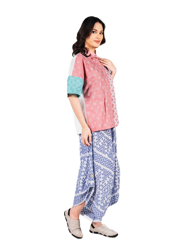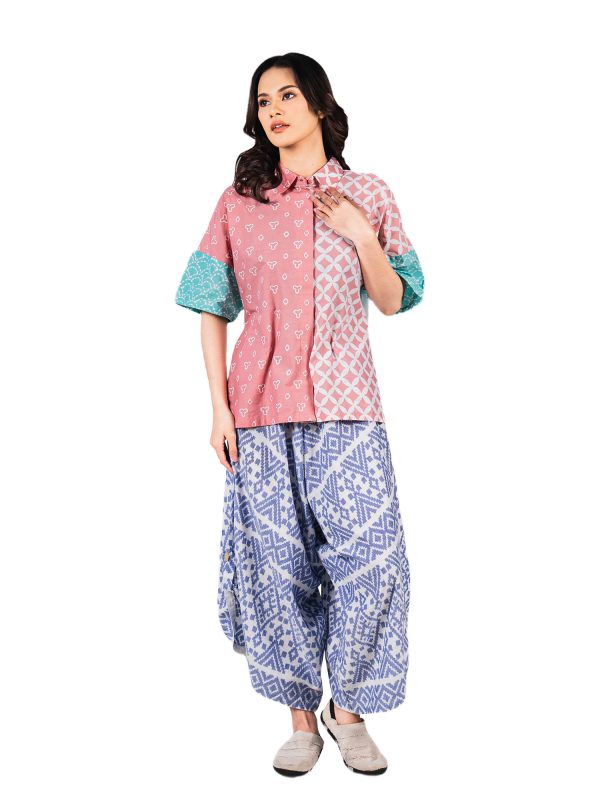 1. Blouse bernuansa multi tone detail motif batik cap yang modern