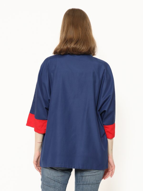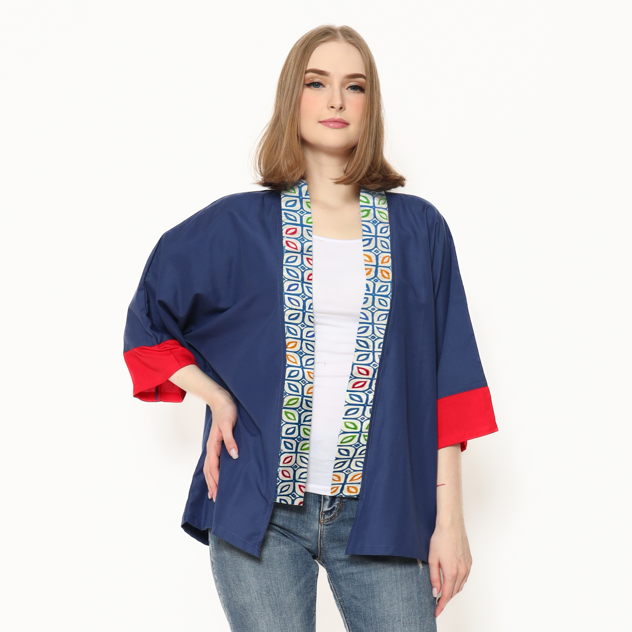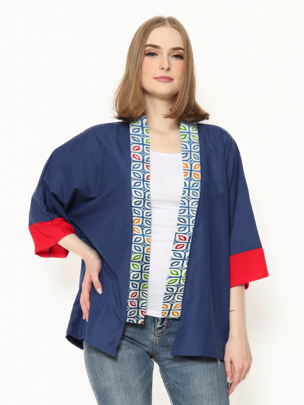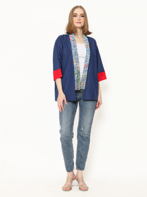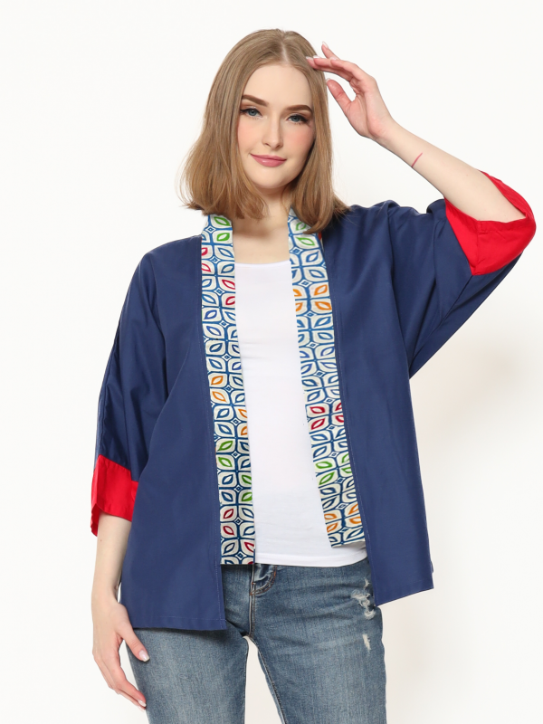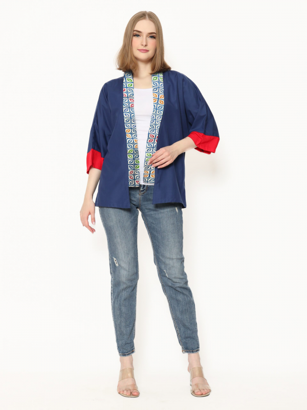 1. Blazer bergaya modern ethnic dengan aksen batik cap