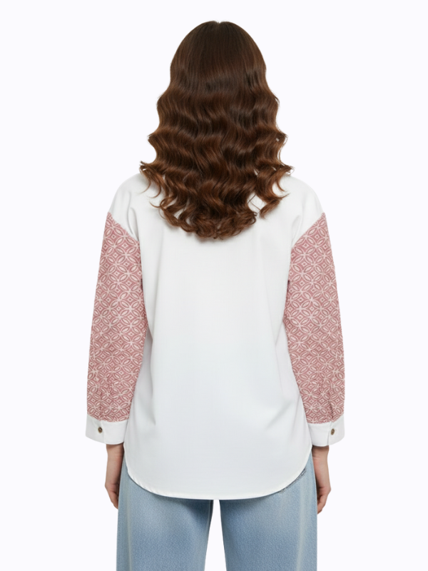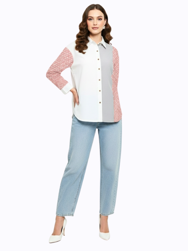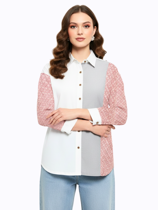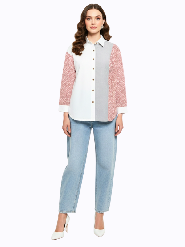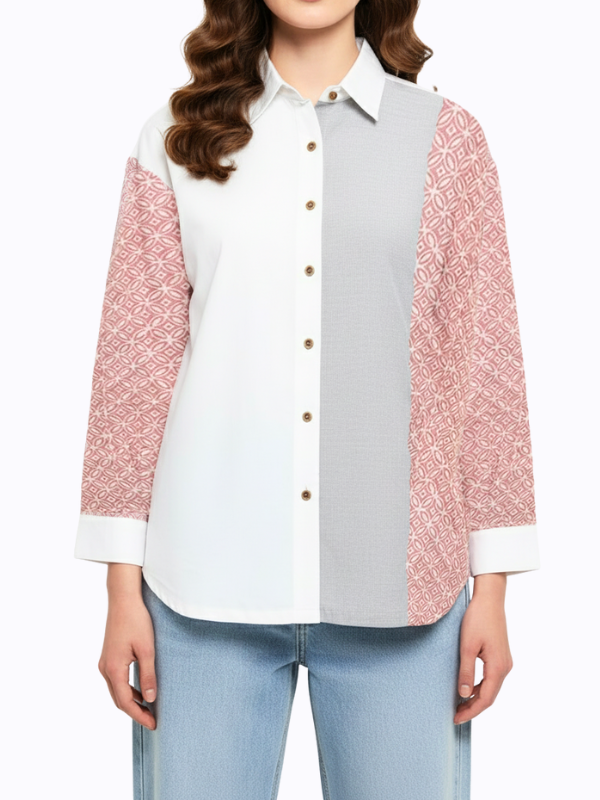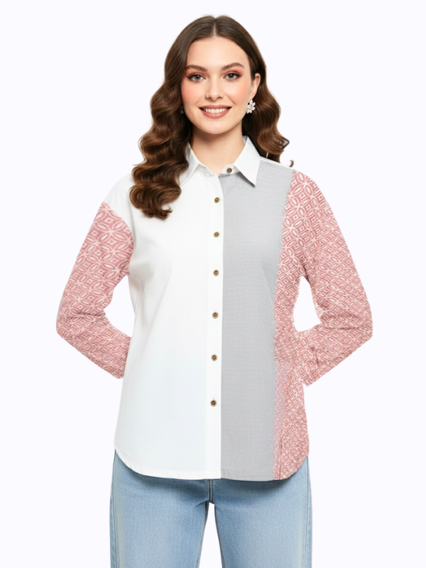 1. Blouse bernuansa two tone detail motif batik cap yang modern