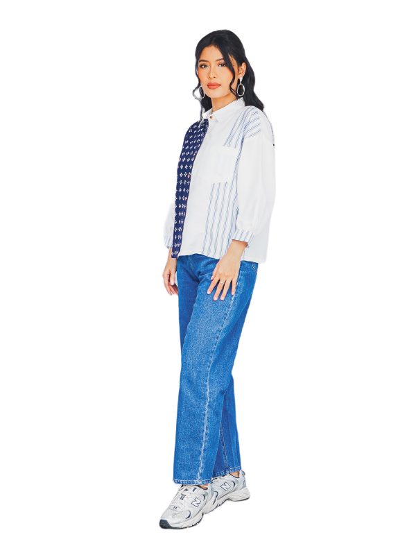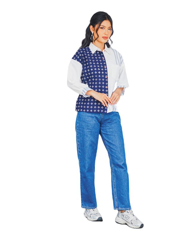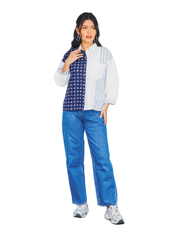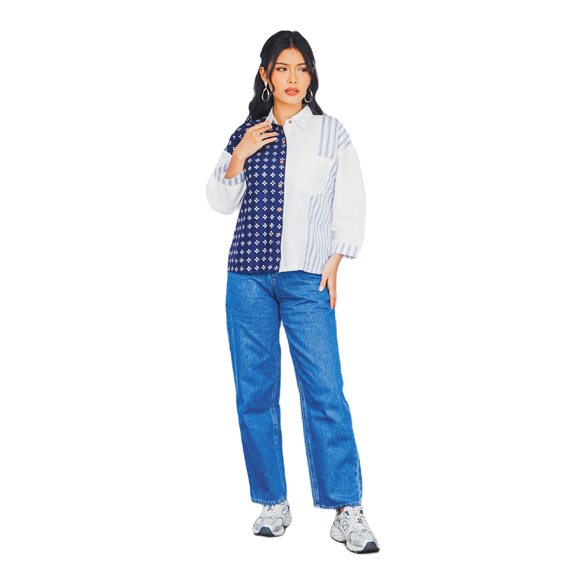 1. Kemeja bergaya semi formal detail motif batik cap yang modern