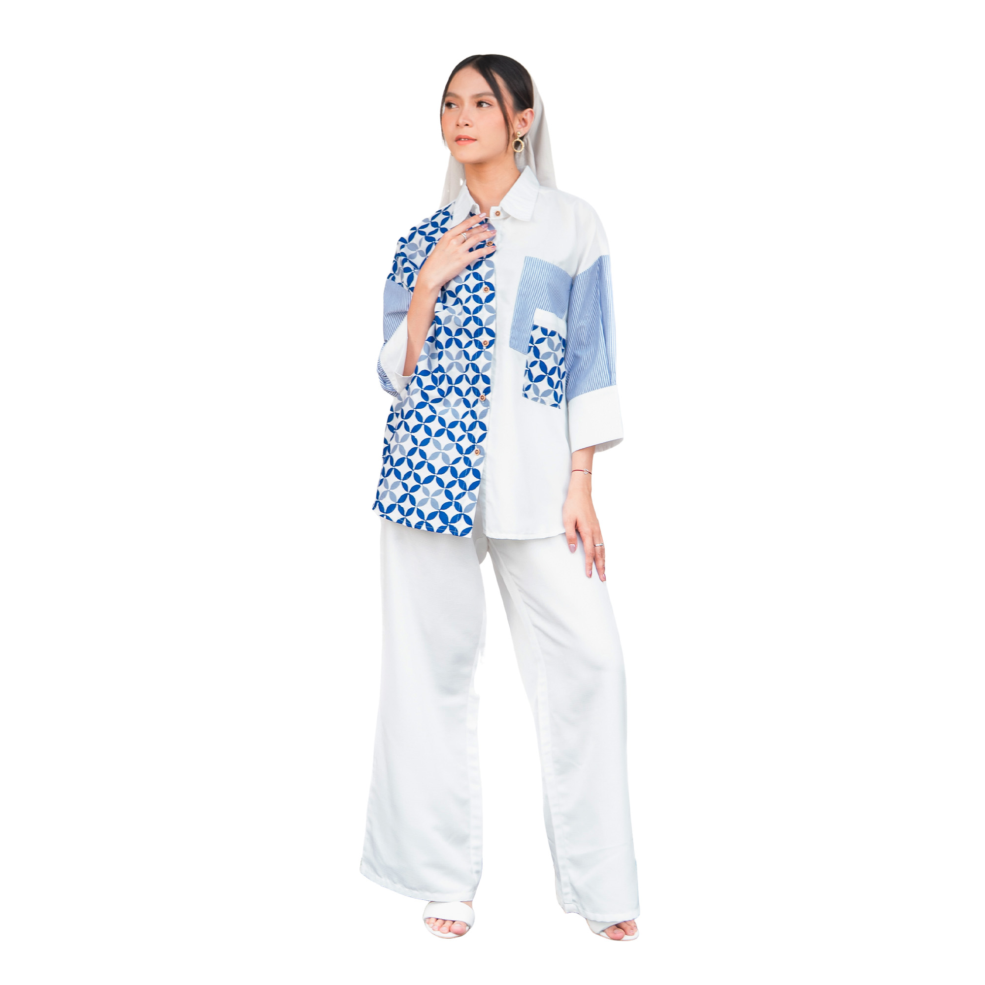 1. Kemeja batik print desain puff sleeves untuk feminine look