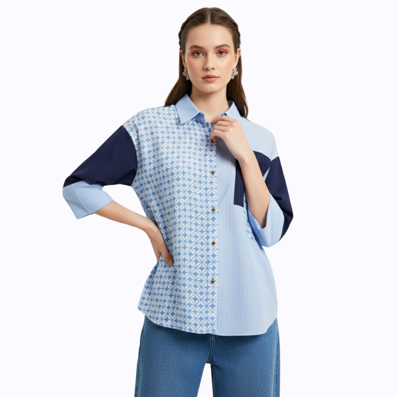1. Kemeja batik print desain puff sleeves untuk feminine look