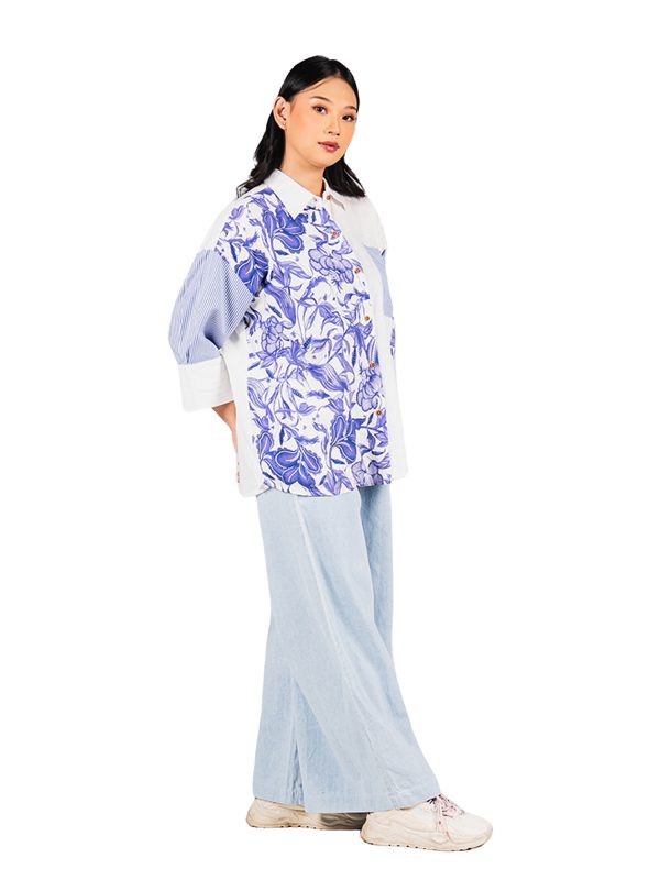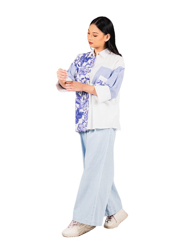 1. Kemeja batik print desain puff sleeves untuk feminine look