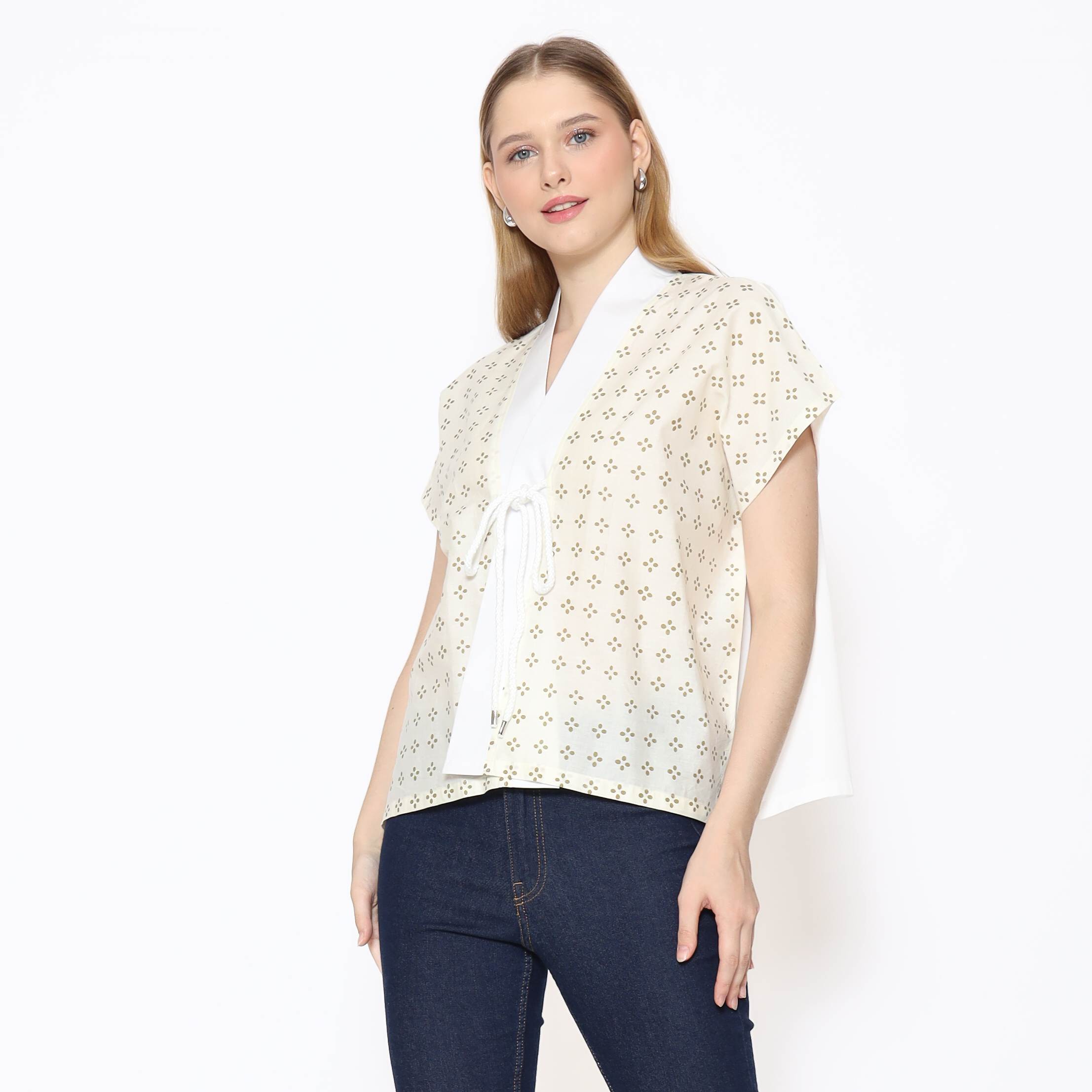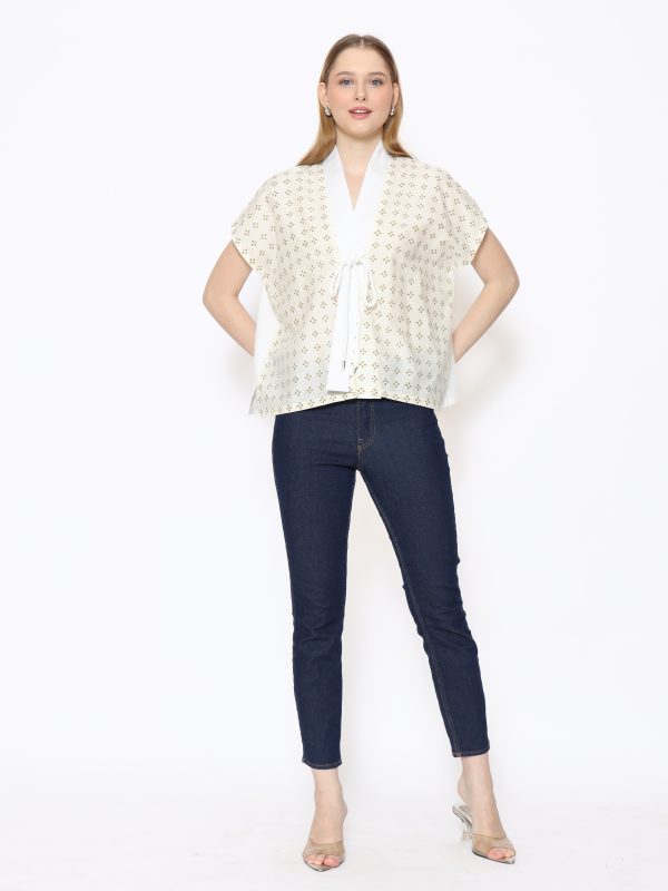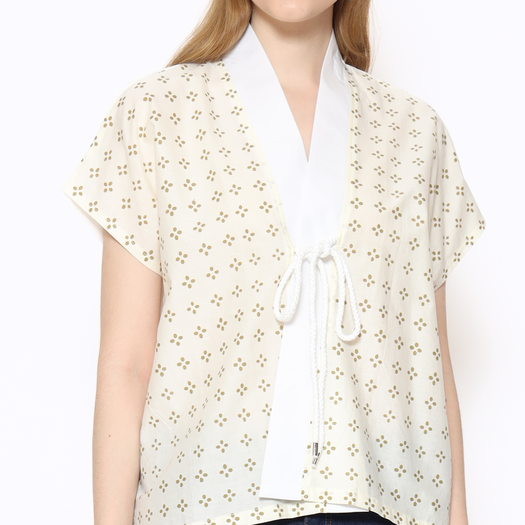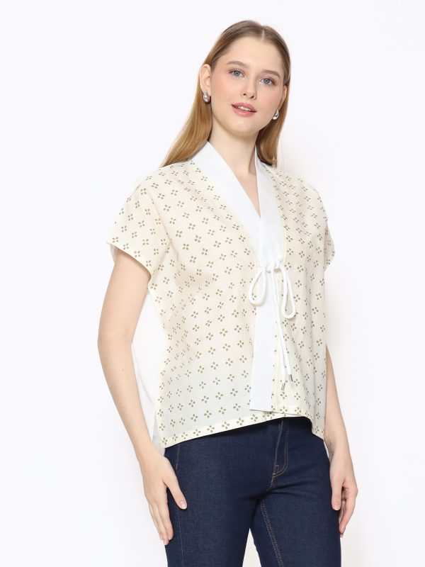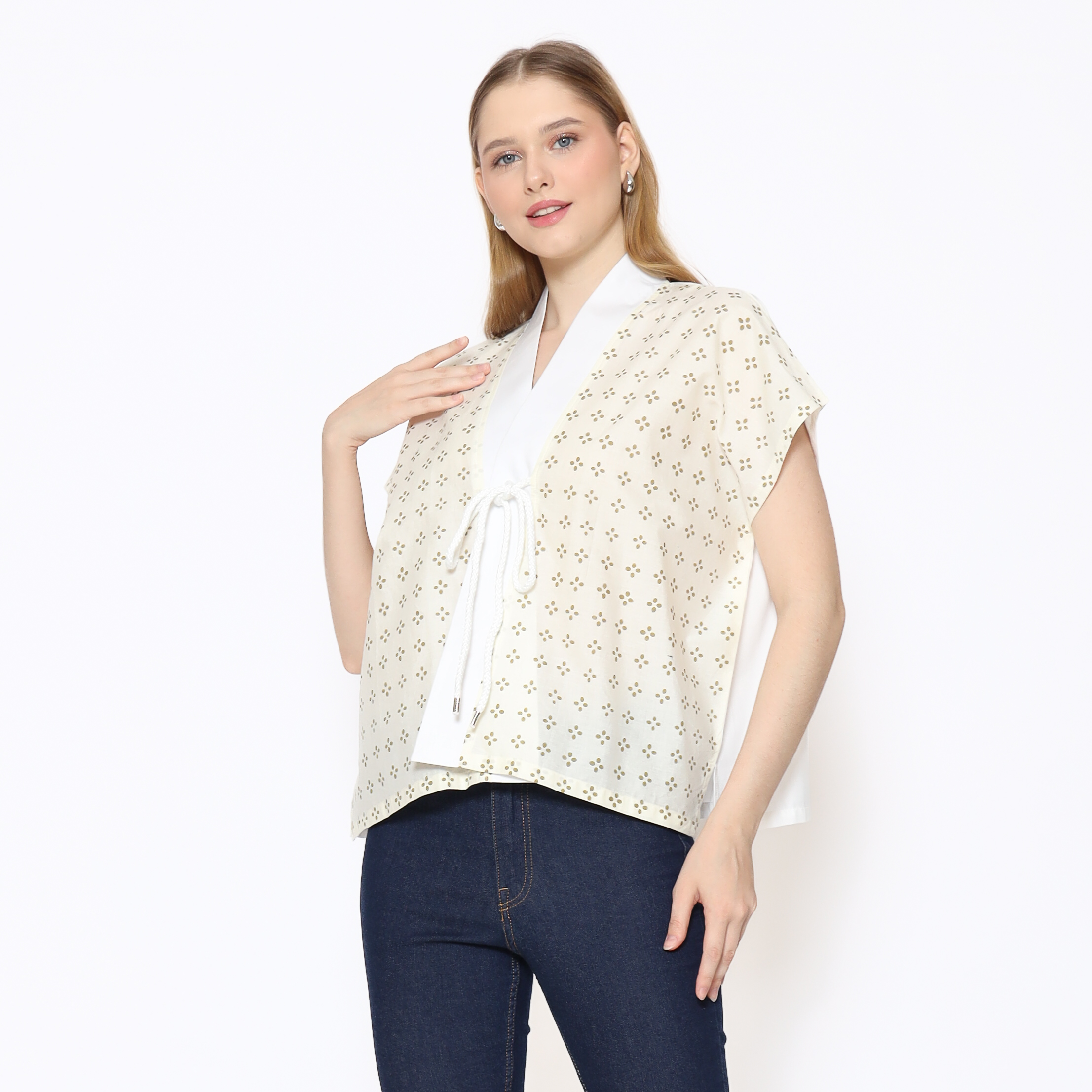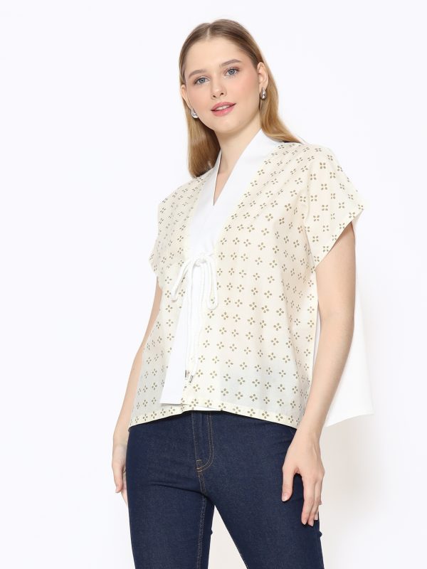1. Outerwear batik cap bernuansa trendy ethnic dengan aksen tali