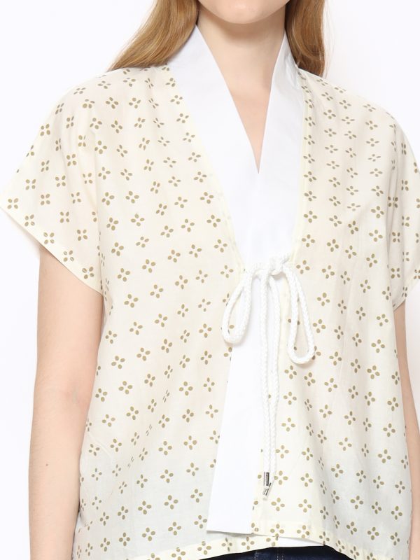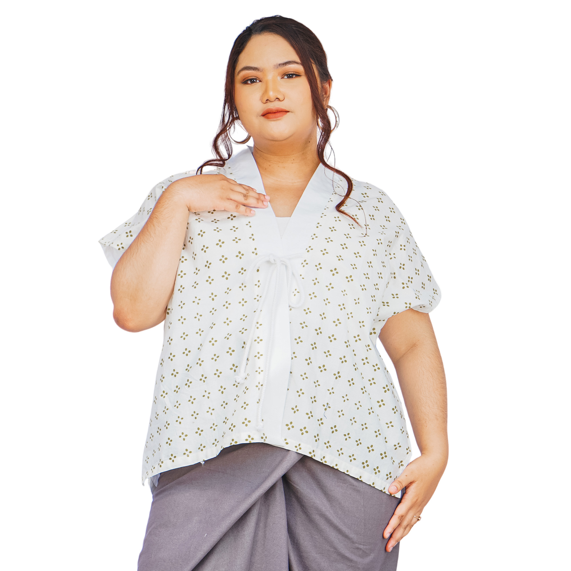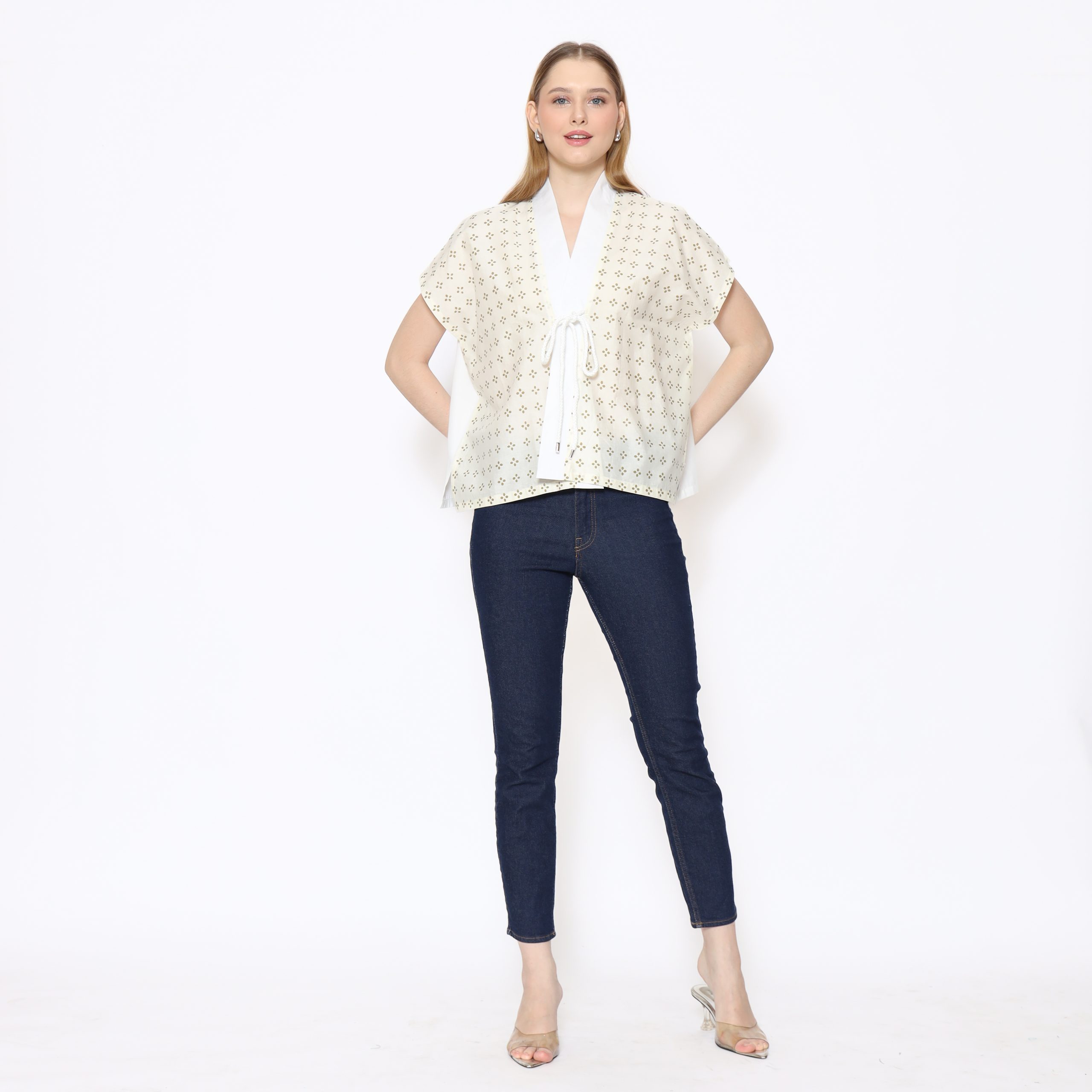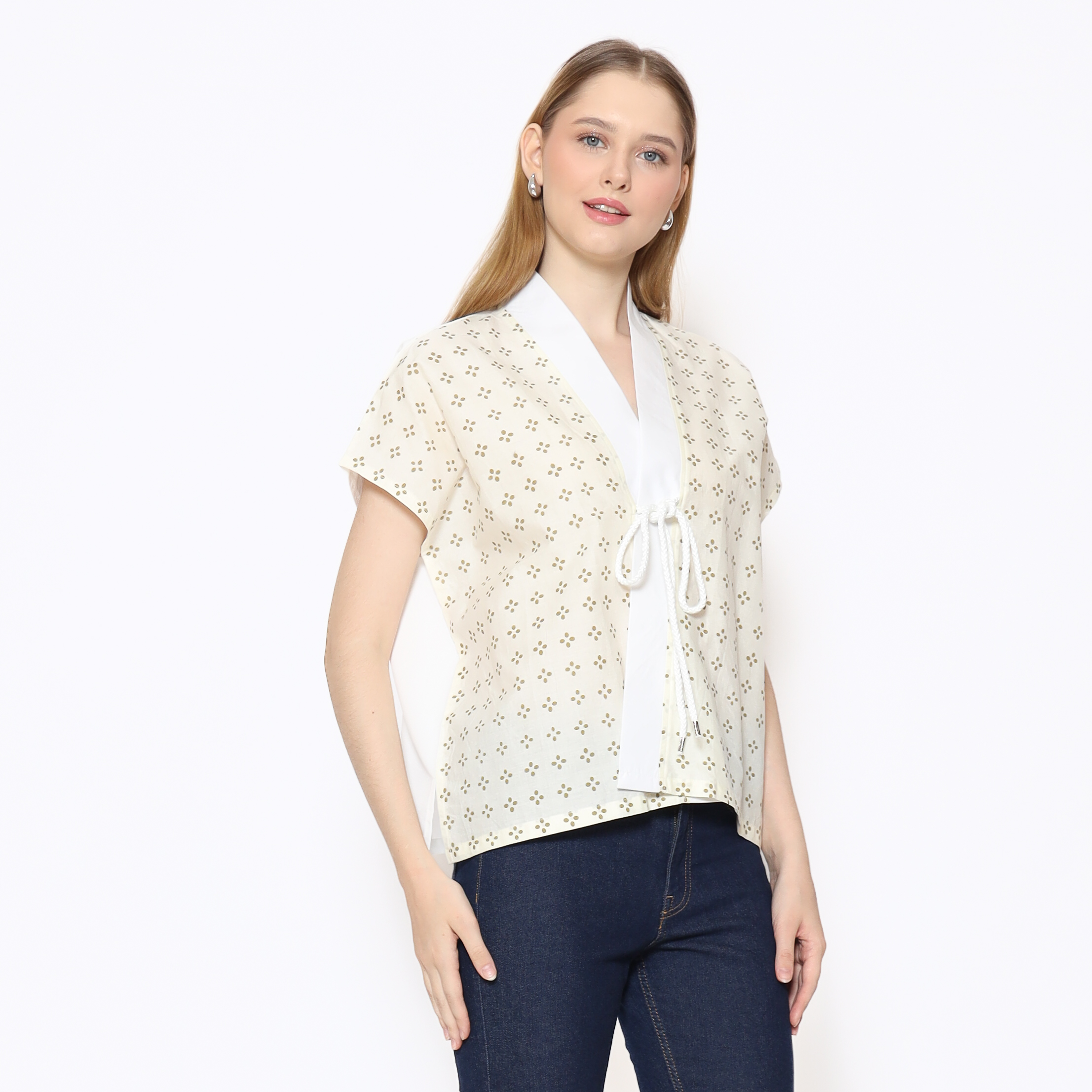 1. Outerwear batik cap bernuansa trendy ethnic dengan aksen tali