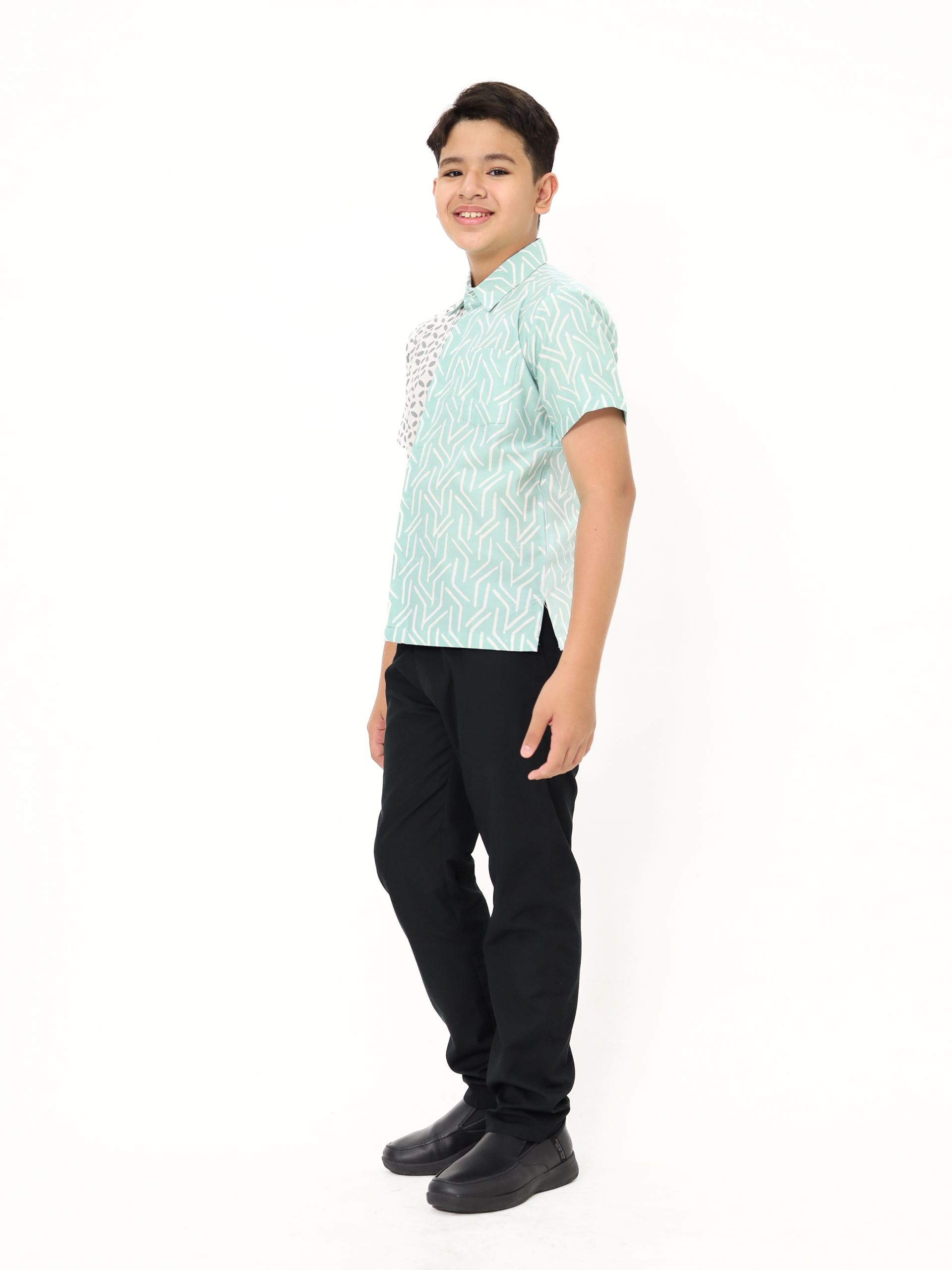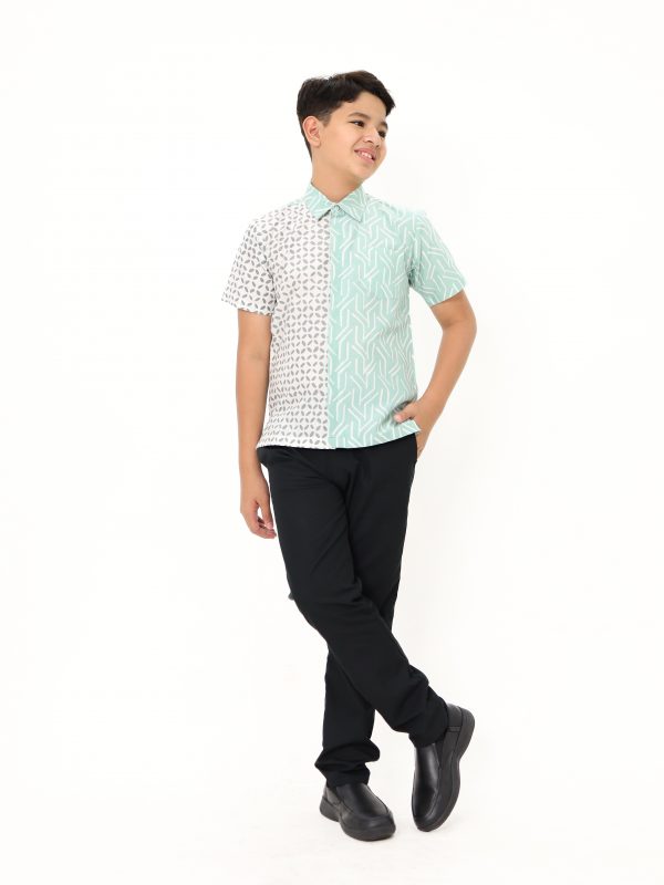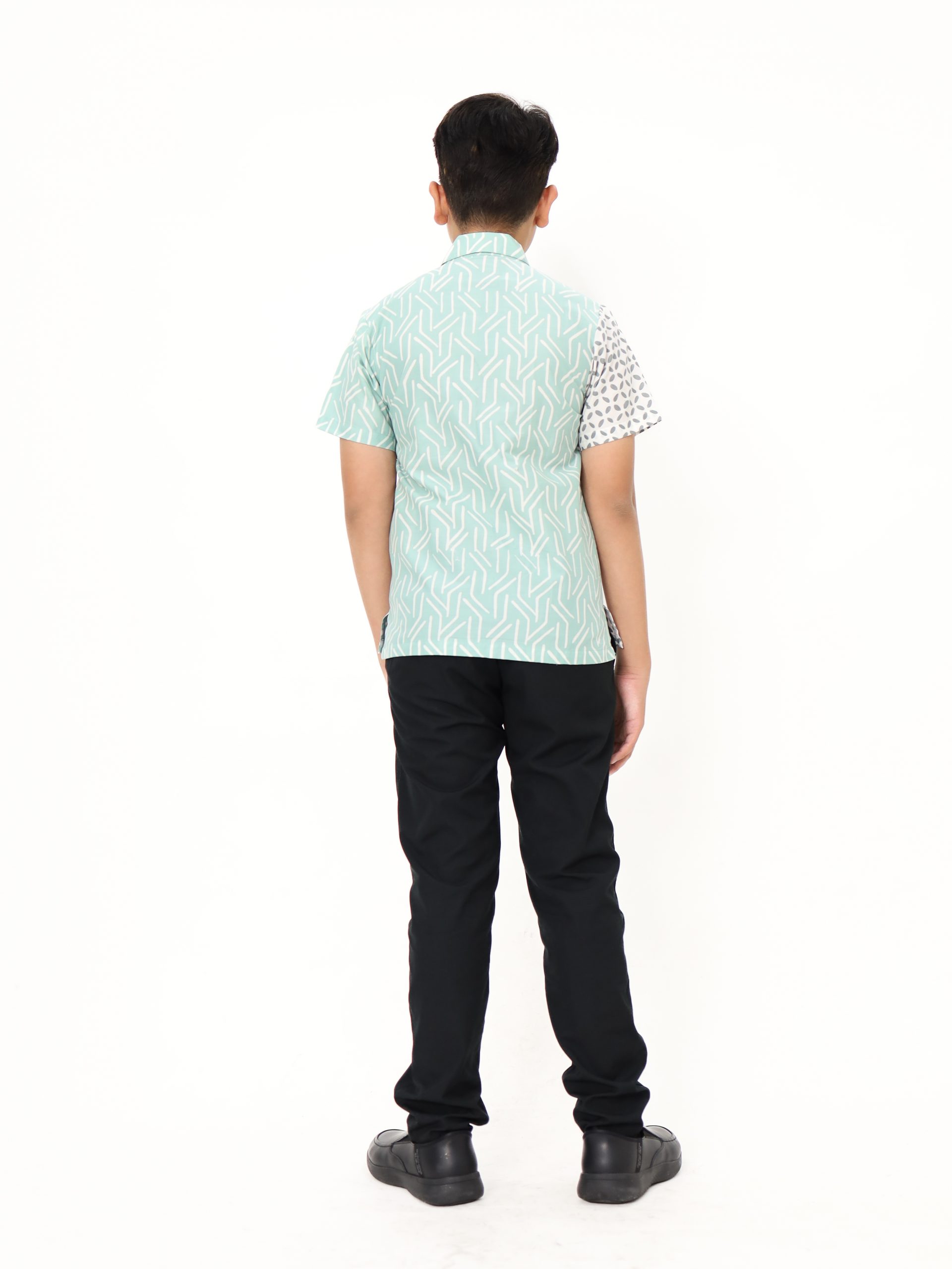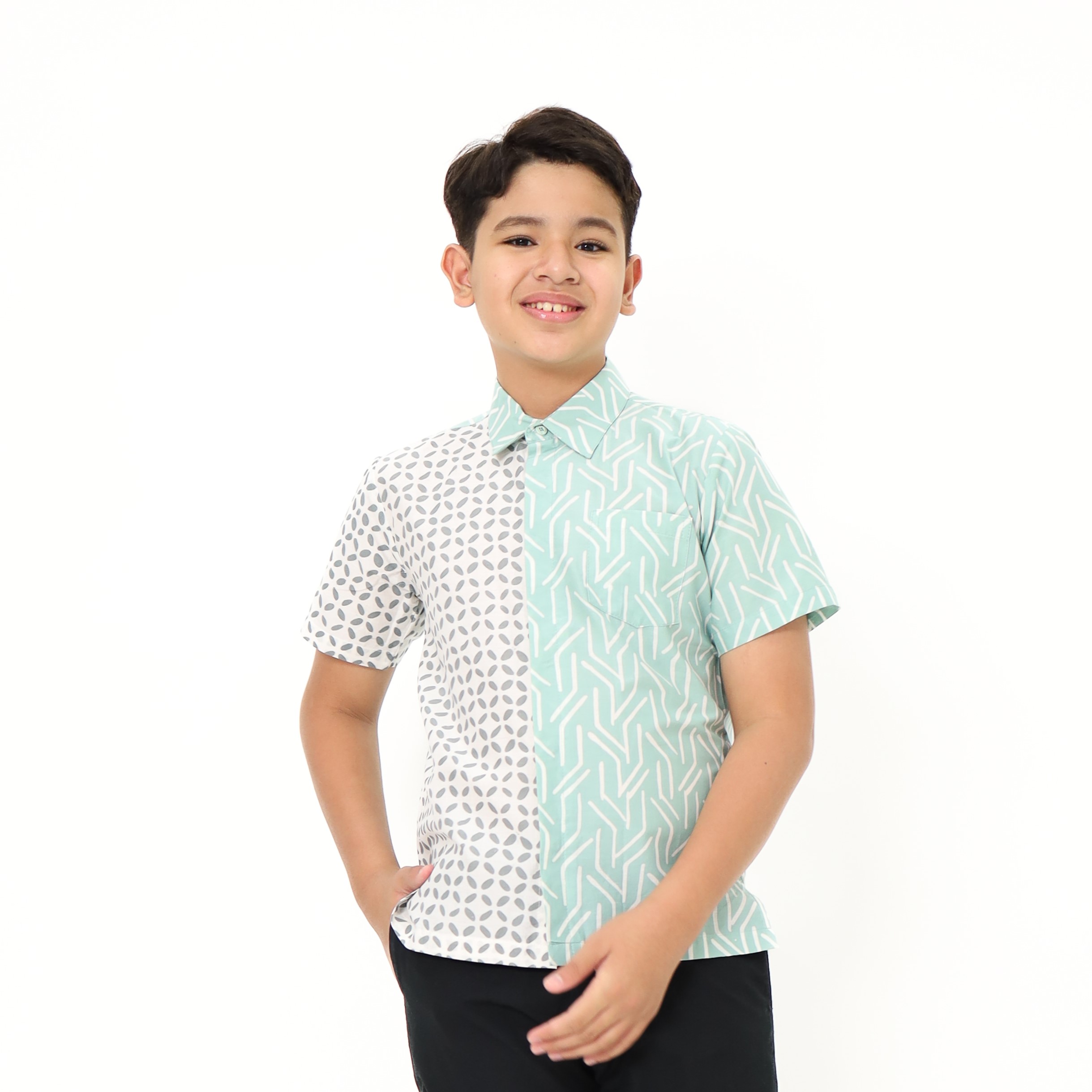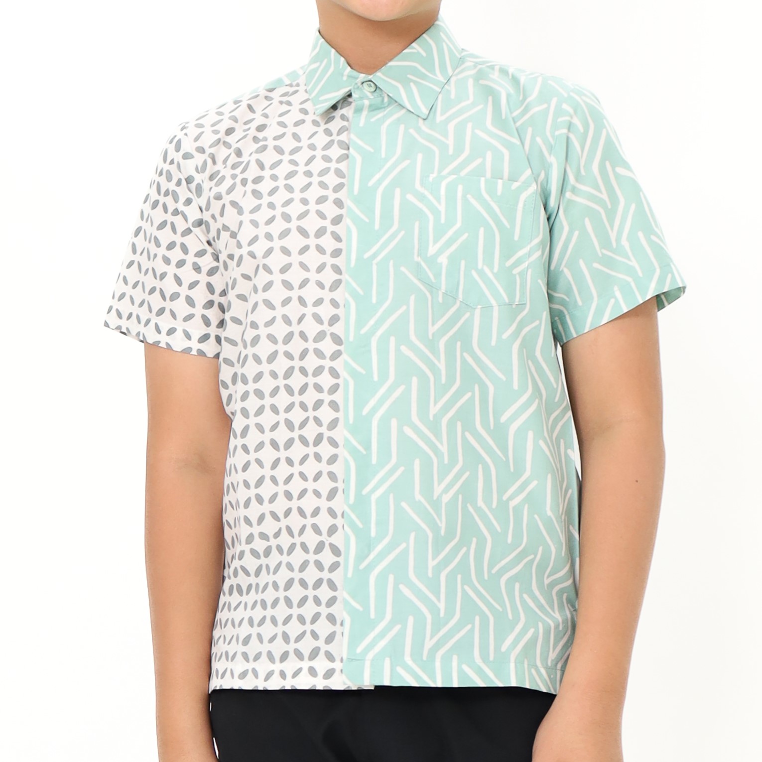 1. Kemeja batik cap dengan 2 kombinasi motif batik yang elegan