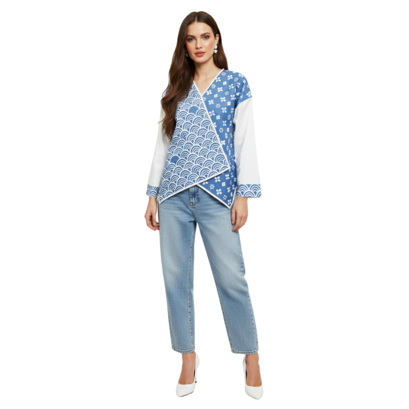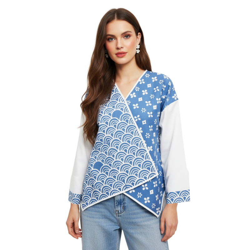 1. Blouse batik cap bergaya modern ethnic untuk formal look