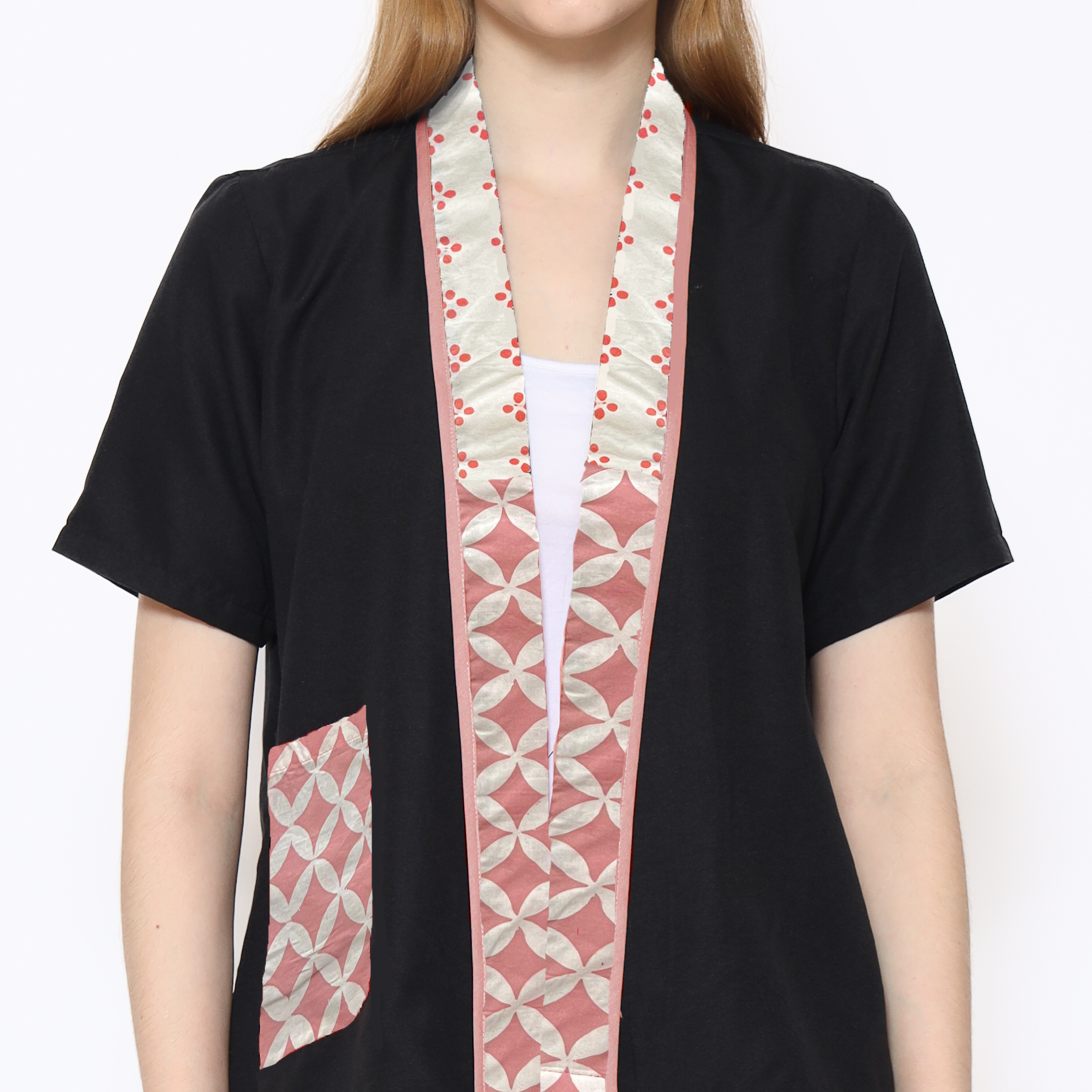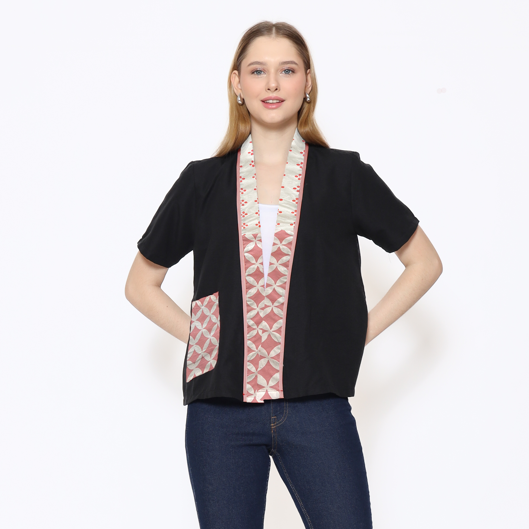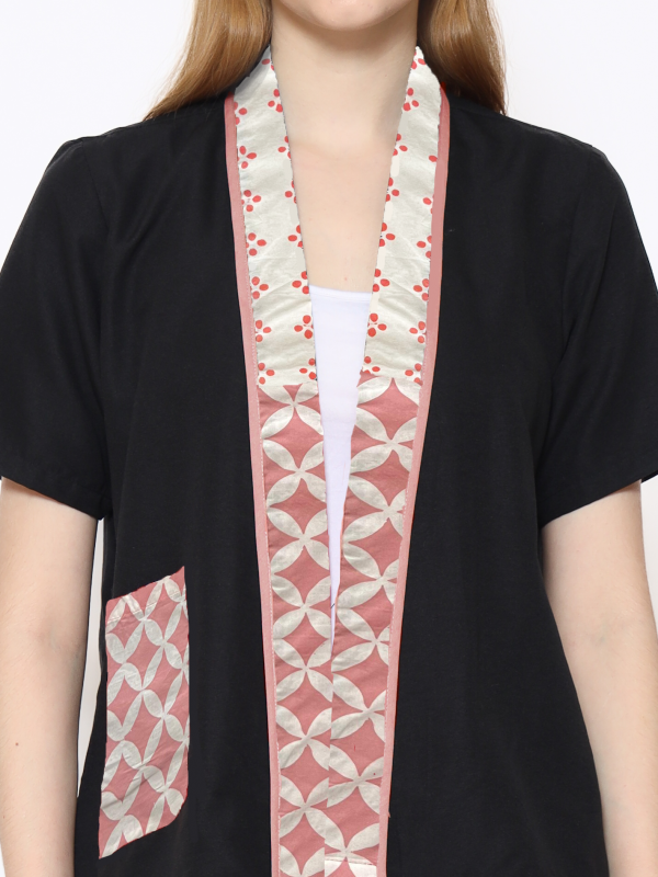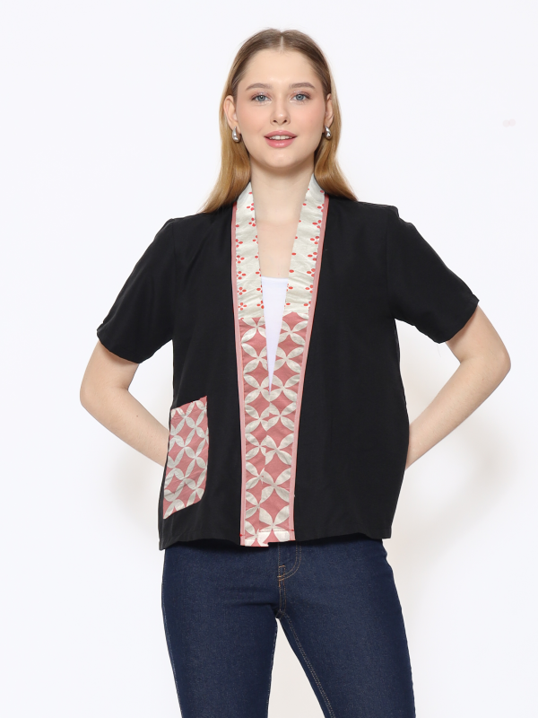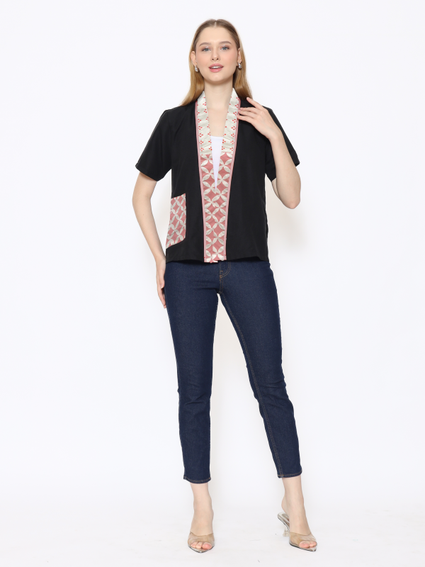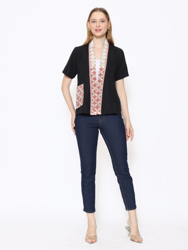 1. Blouse batik cap berdesain batwing dengan detail multi pattern