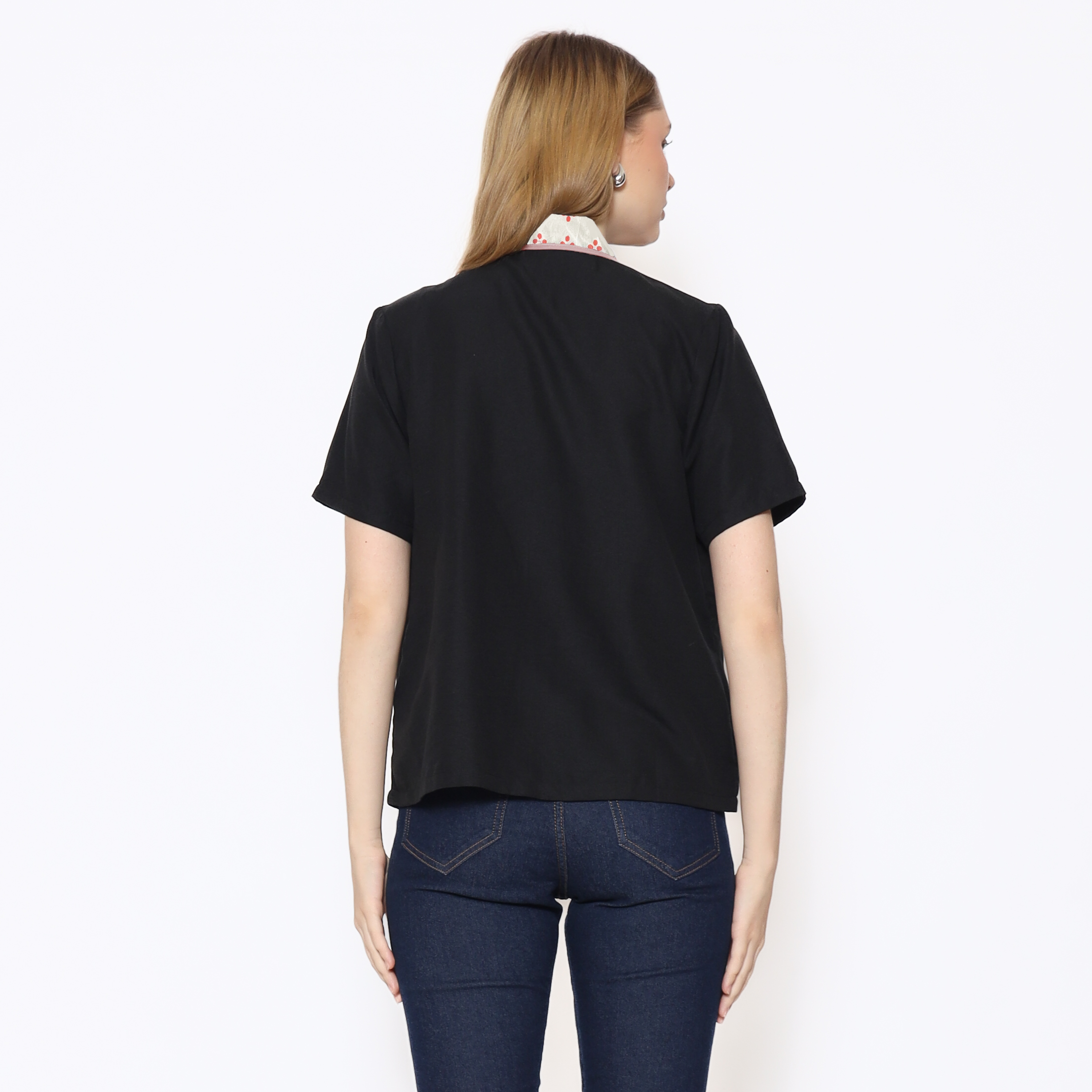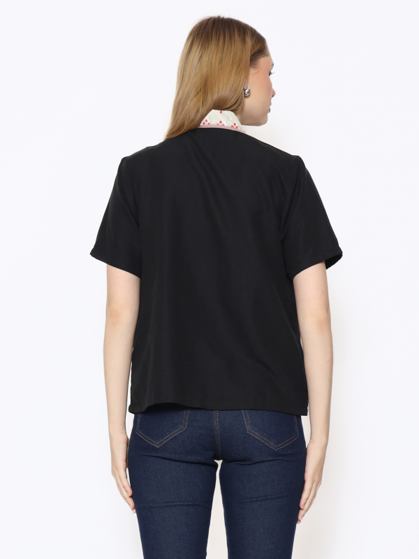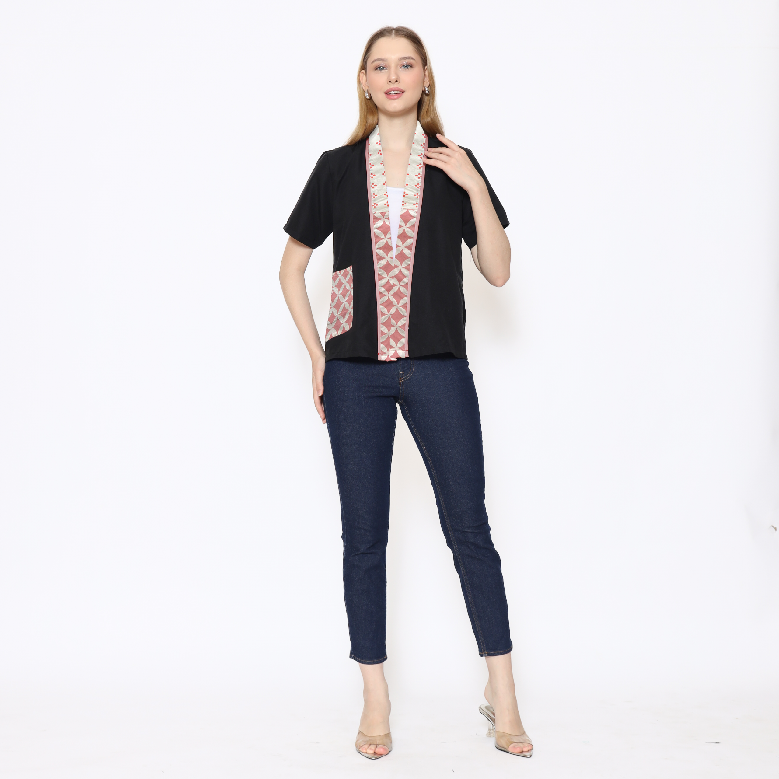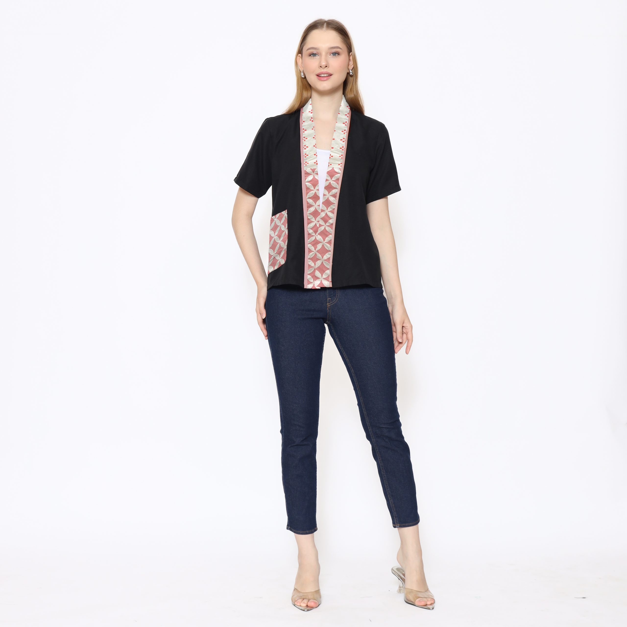 1. Blouse batik cap berdesain batwing dengan detail multi pattern