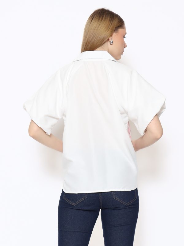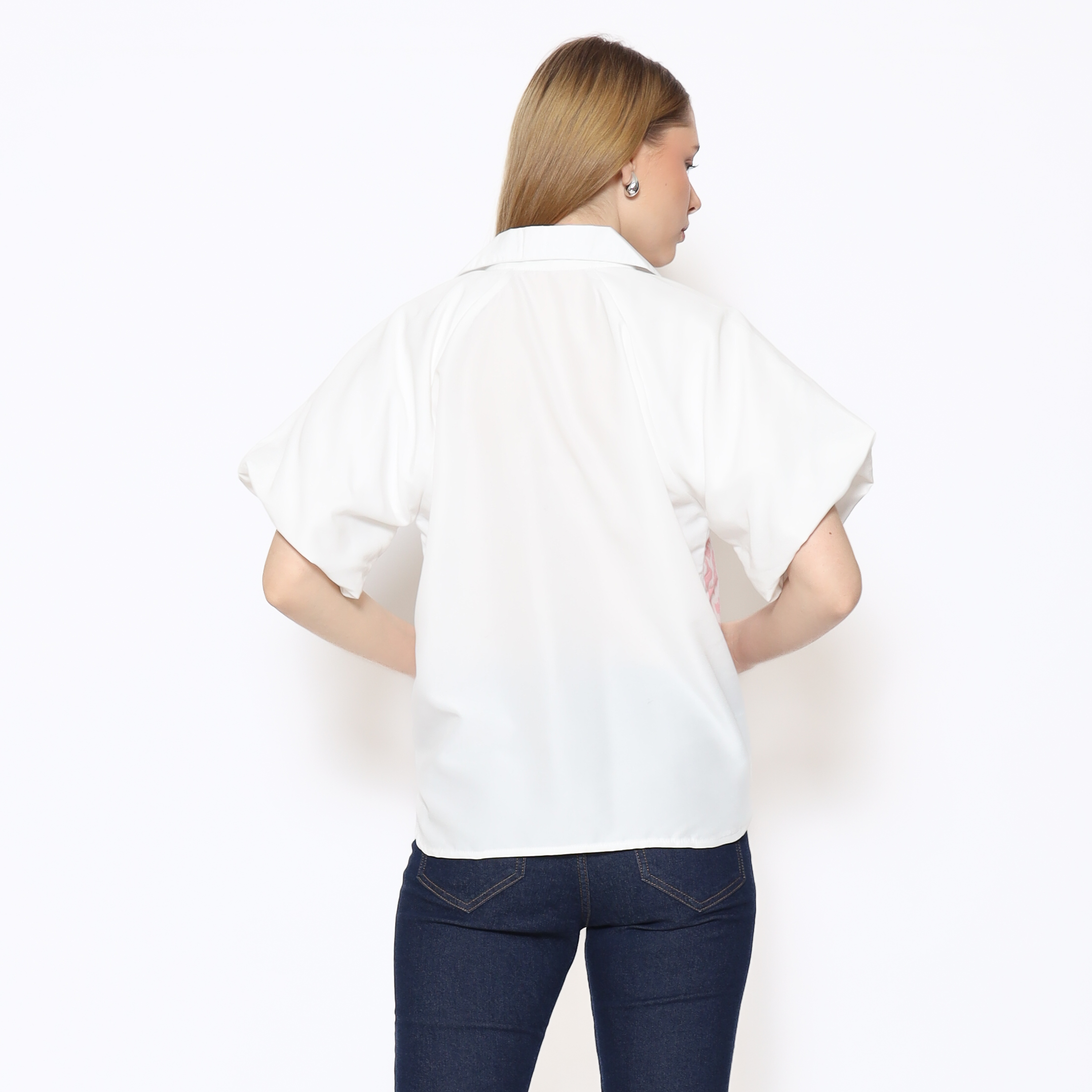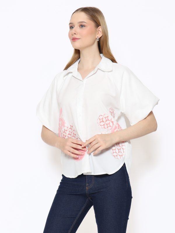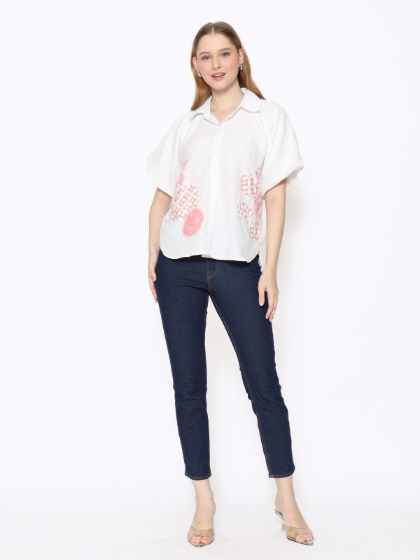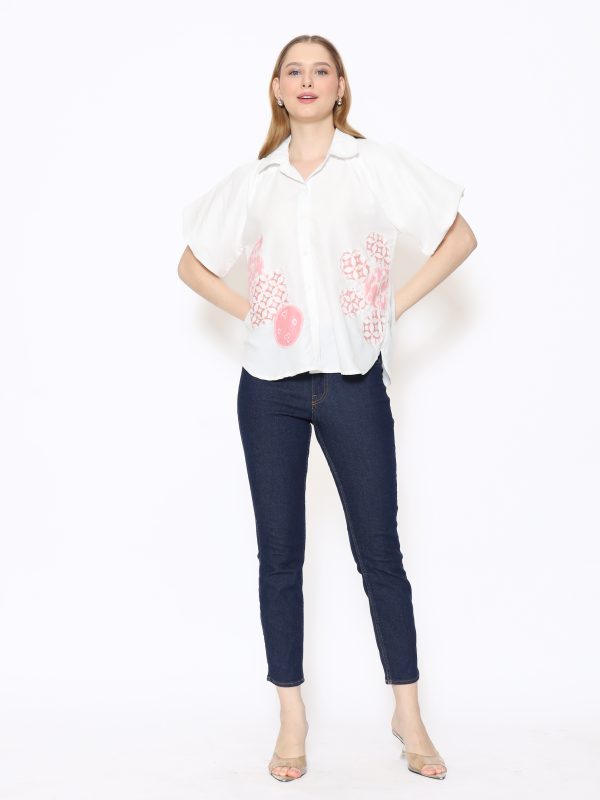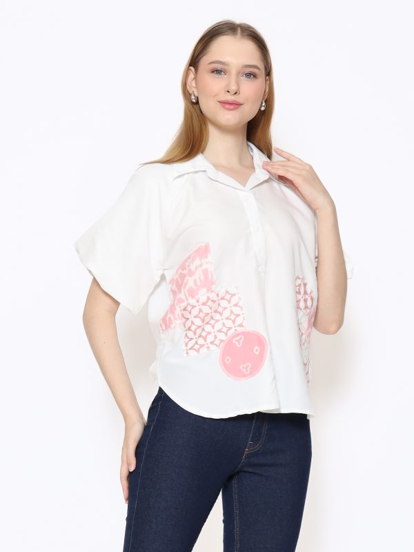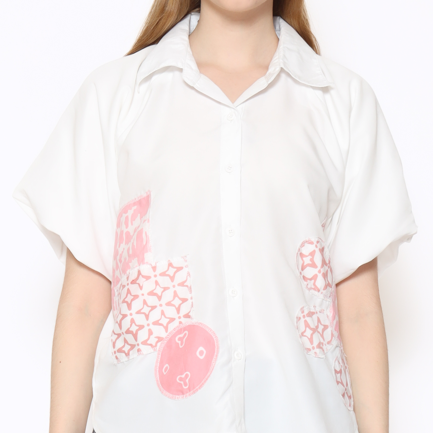 1. Kemeja detail patchwork batik cap dalam nuansa casual