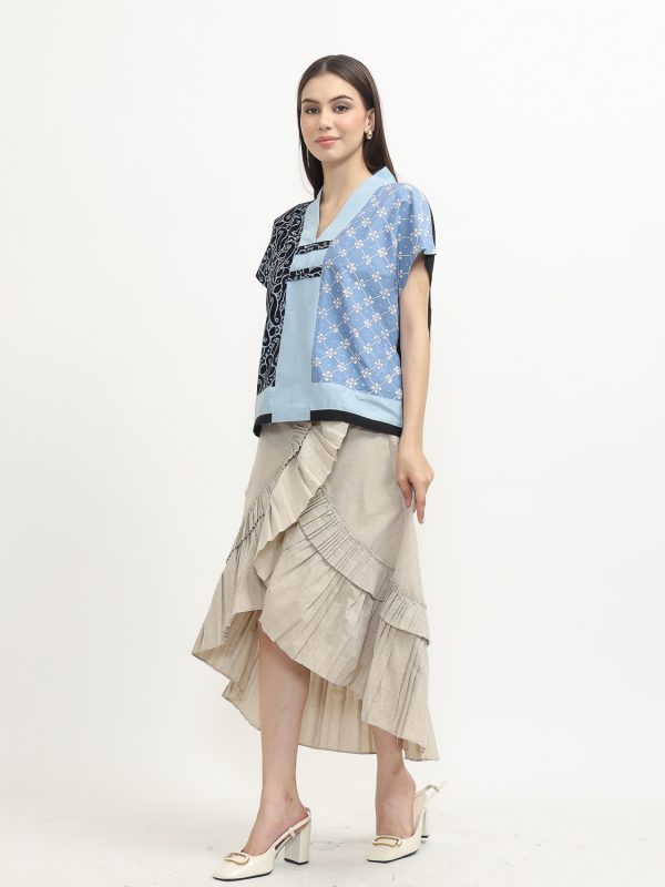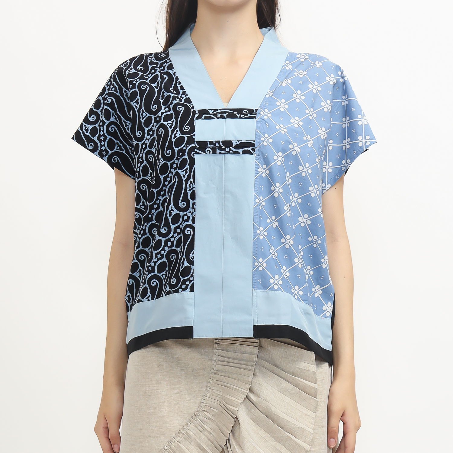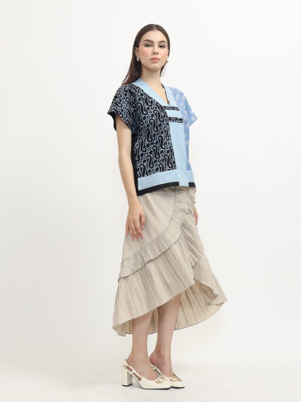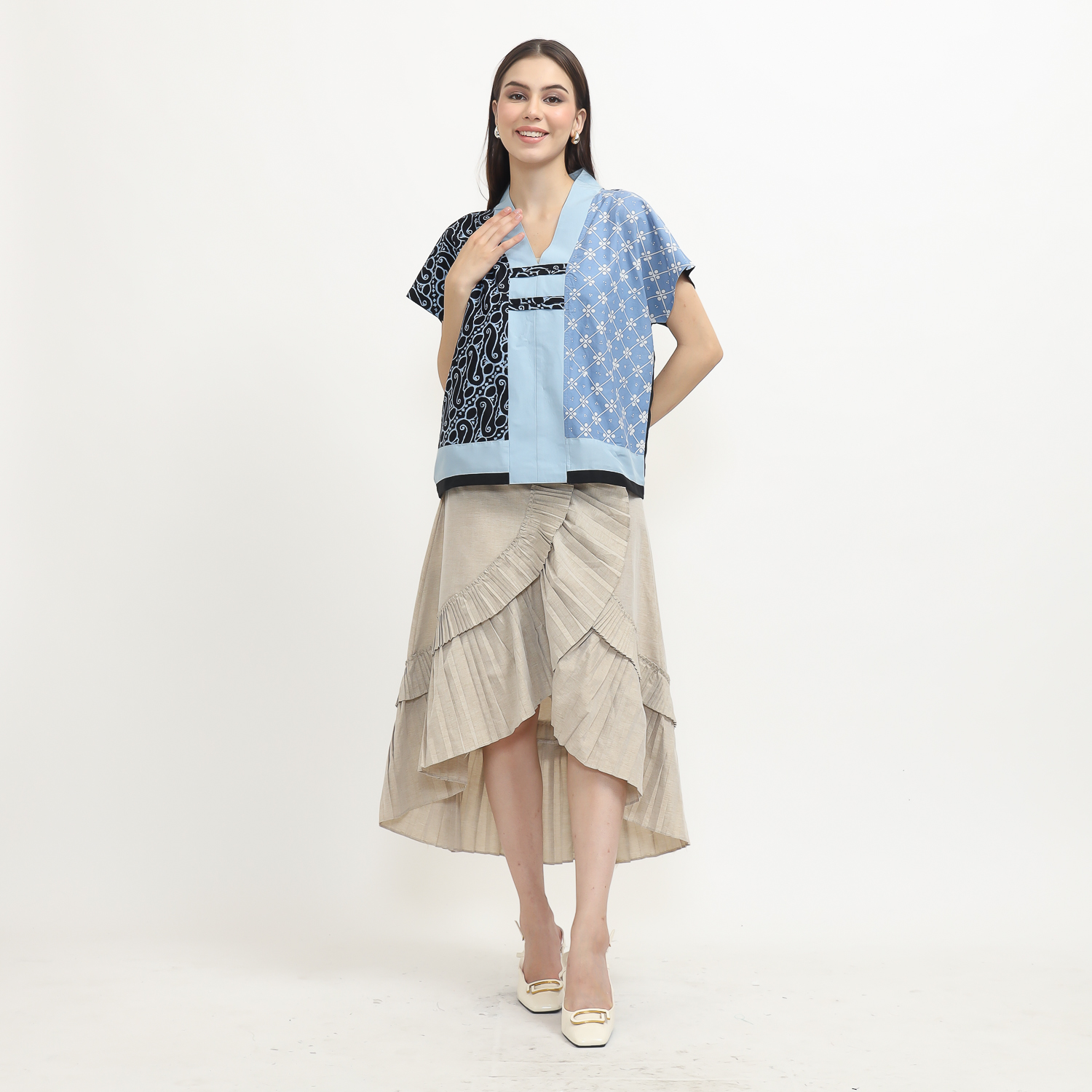 1. Blouse bermotif batik cap kombinasi untuk ethnic modern look
