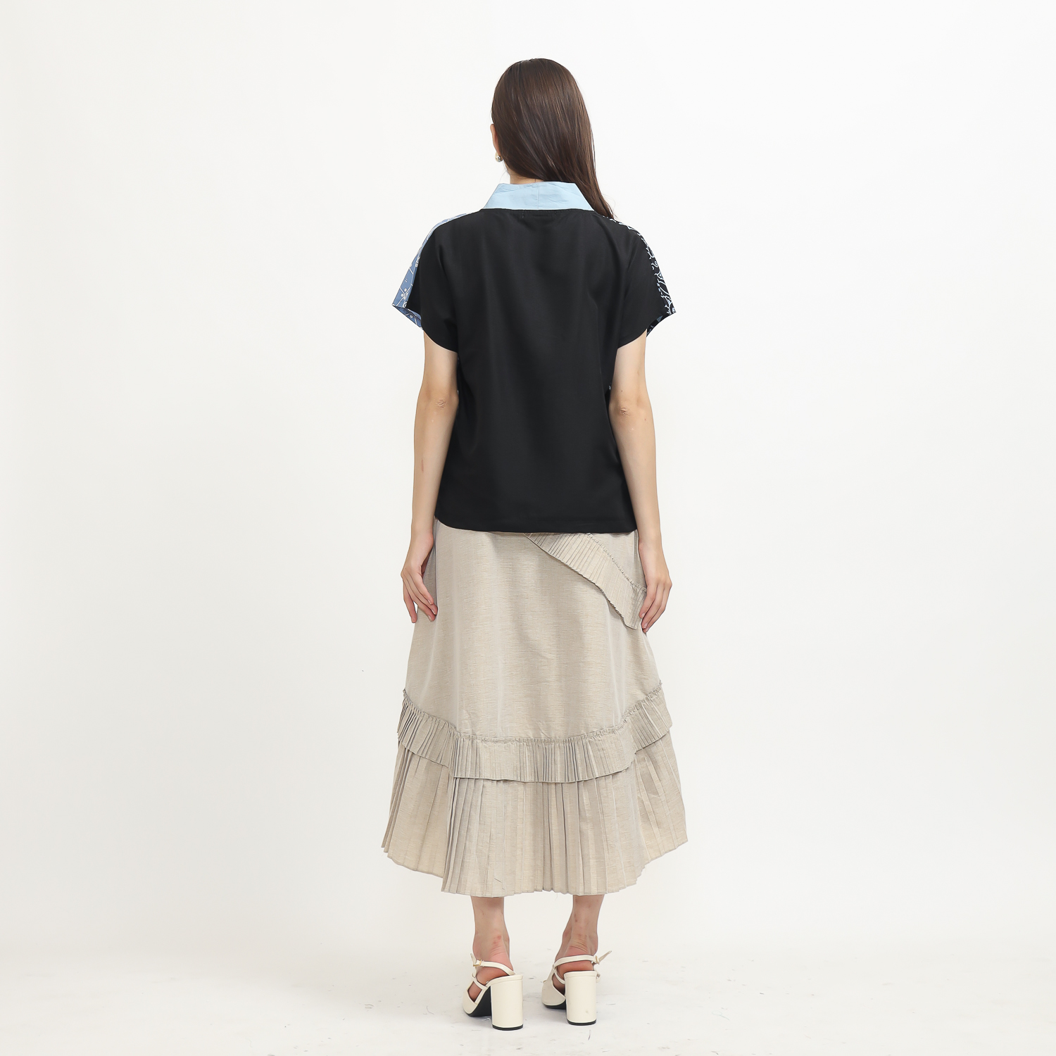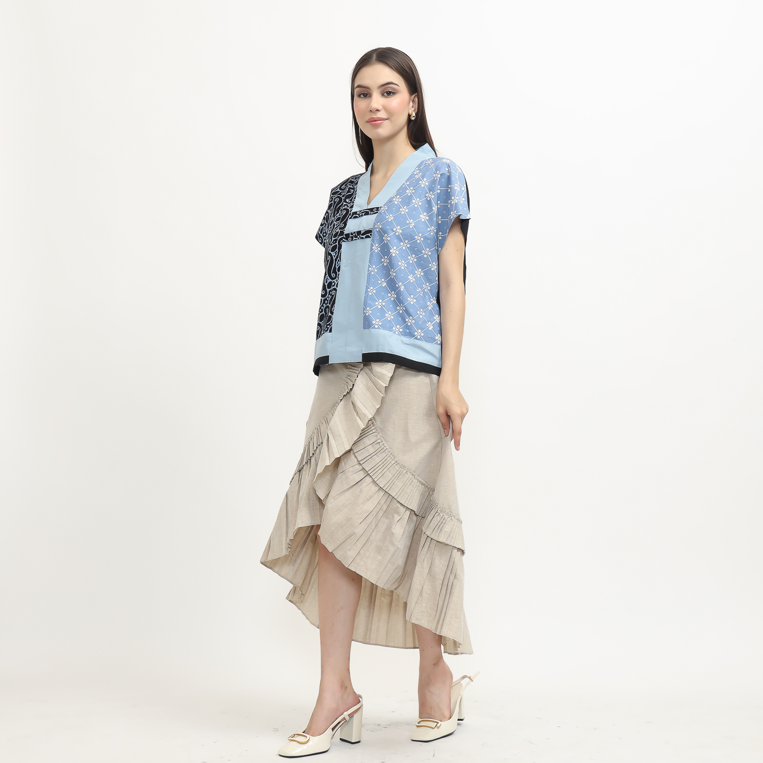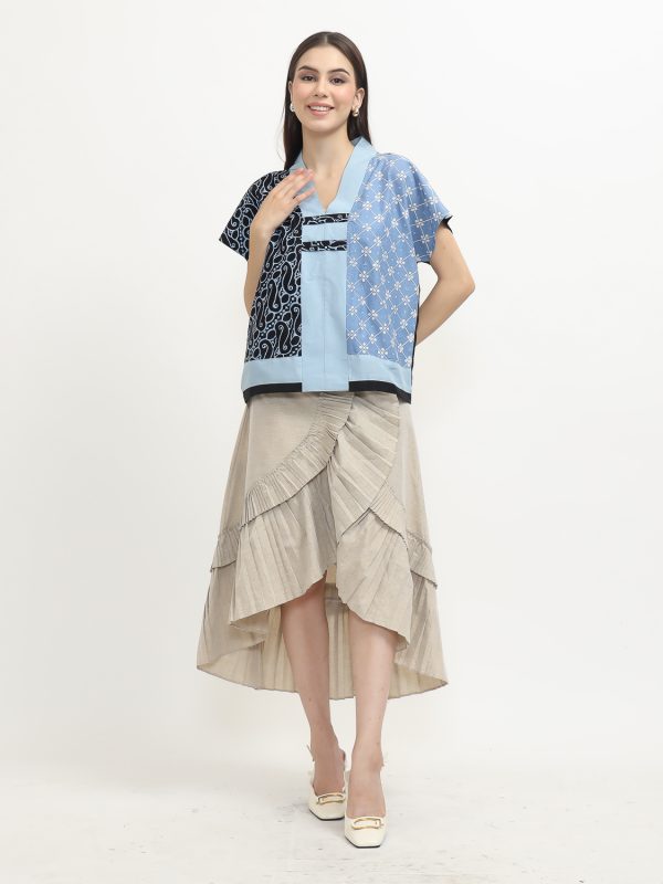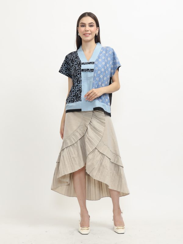 1. Blouse bermotif batik cap kombinasi untuk ethnic modern look