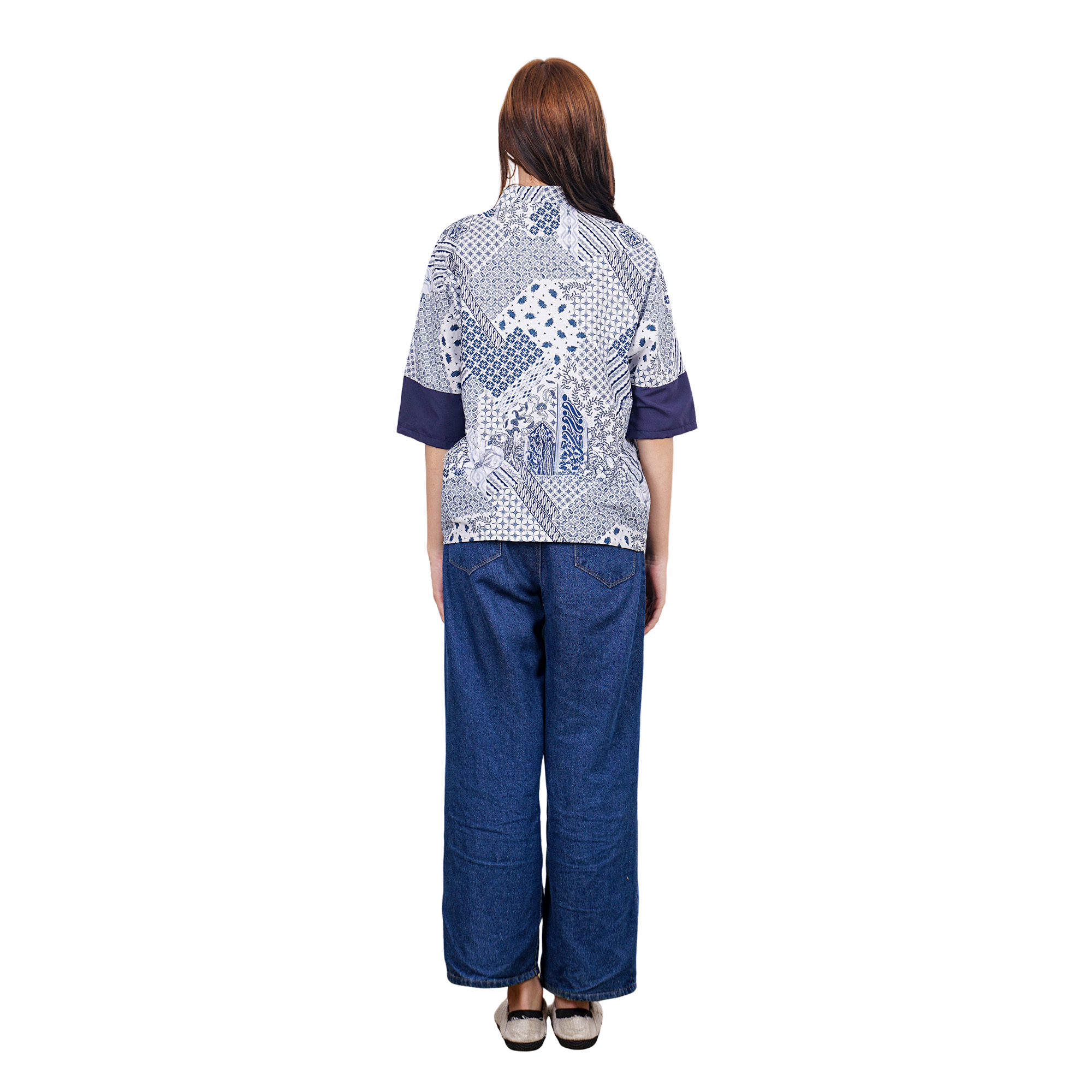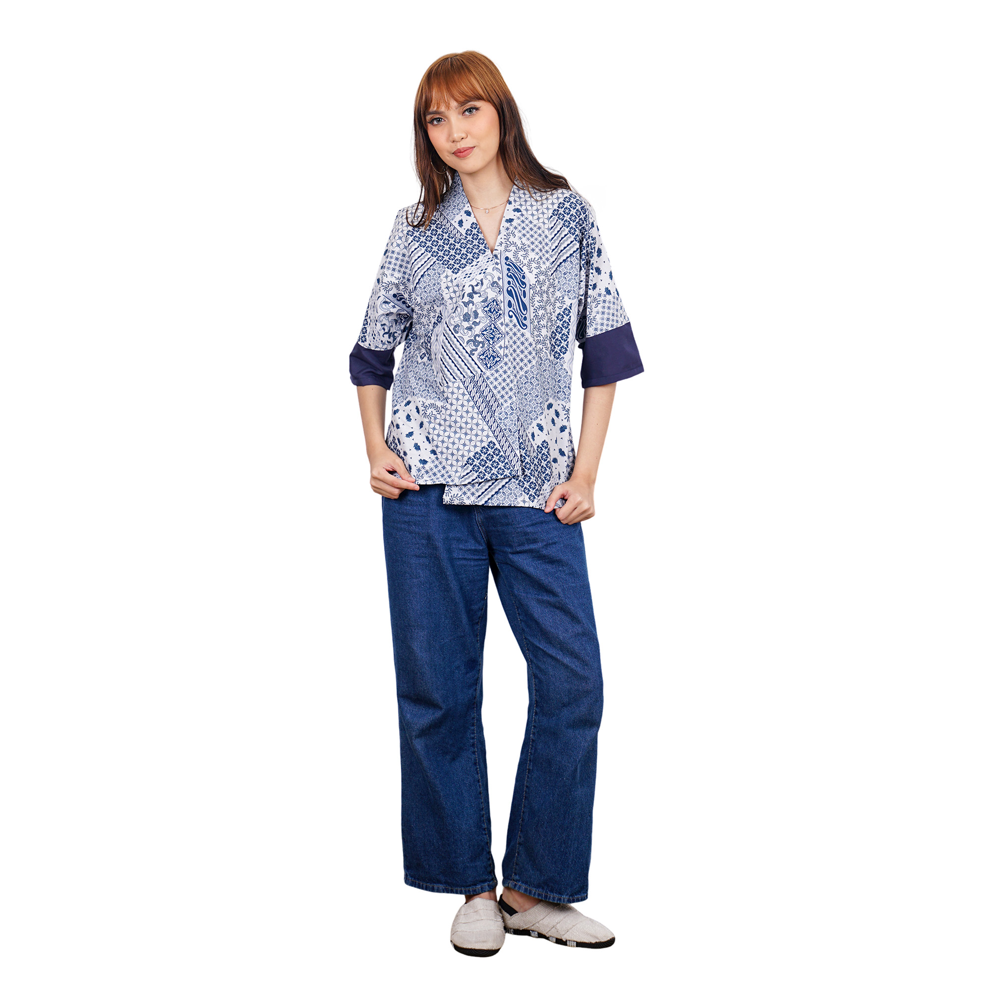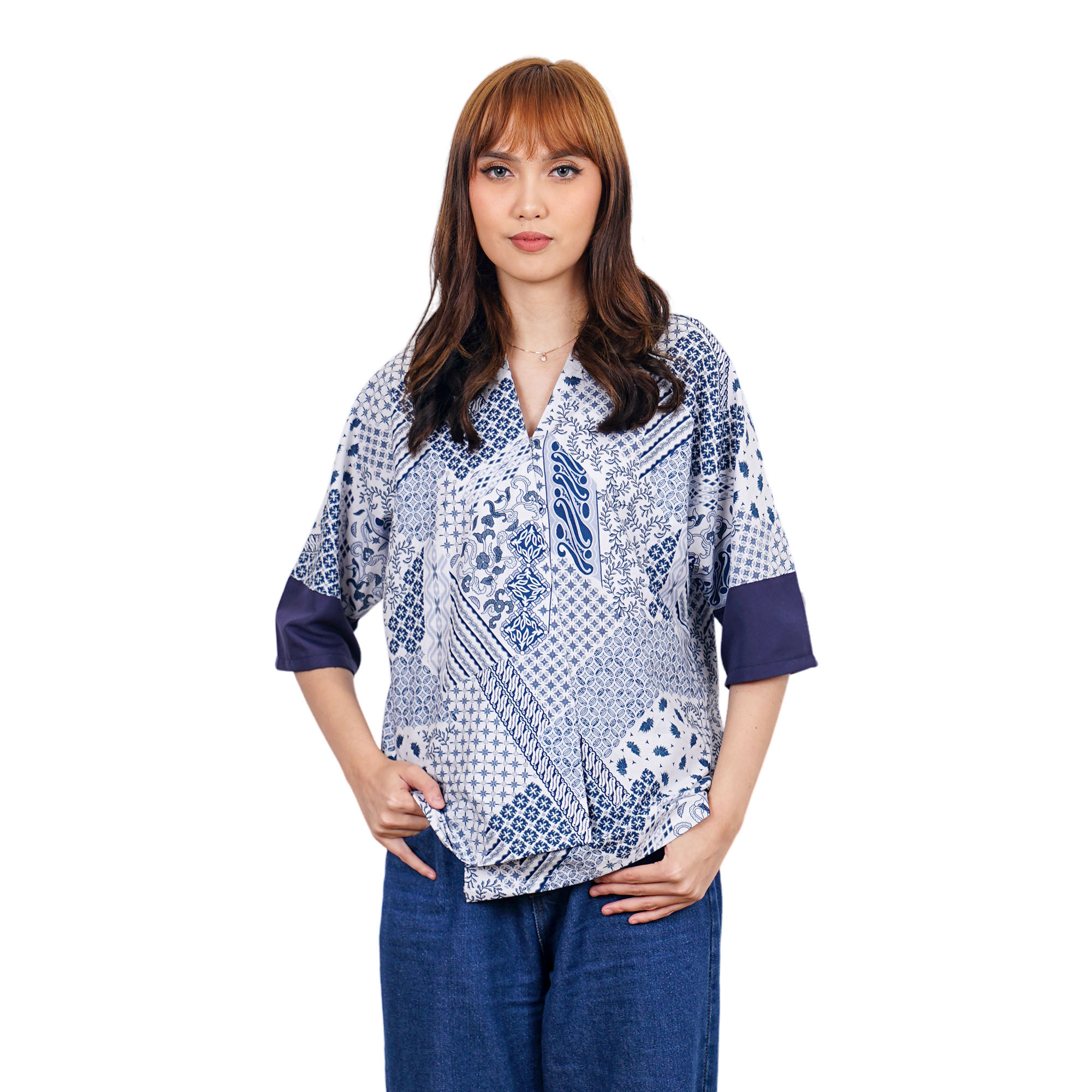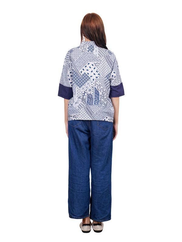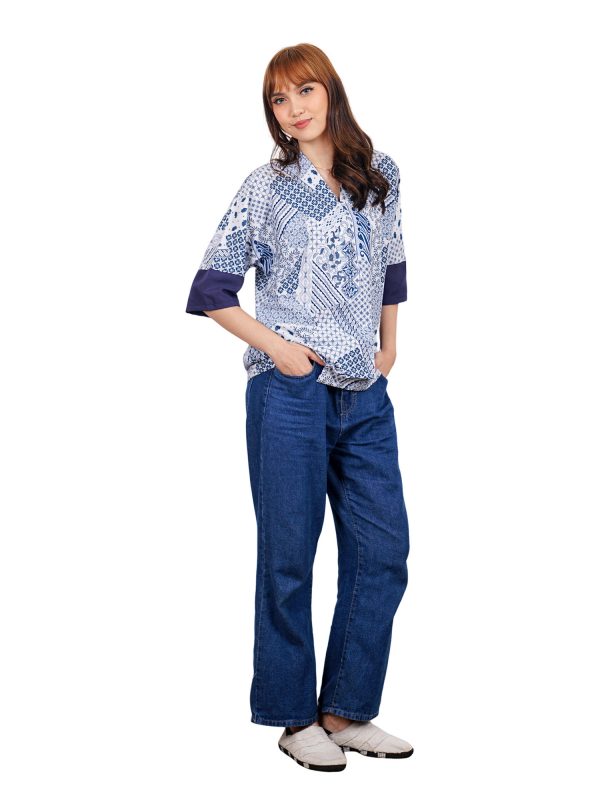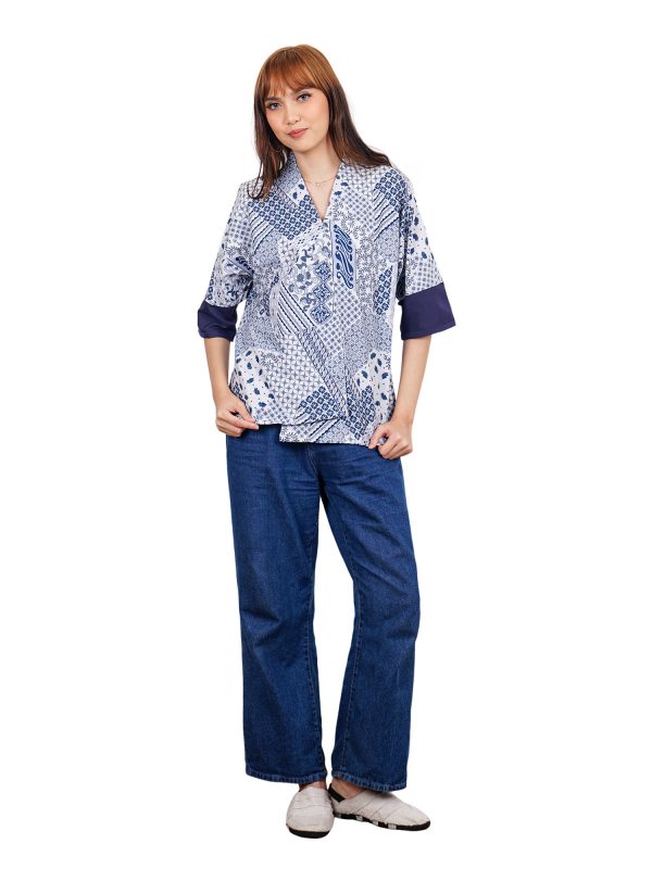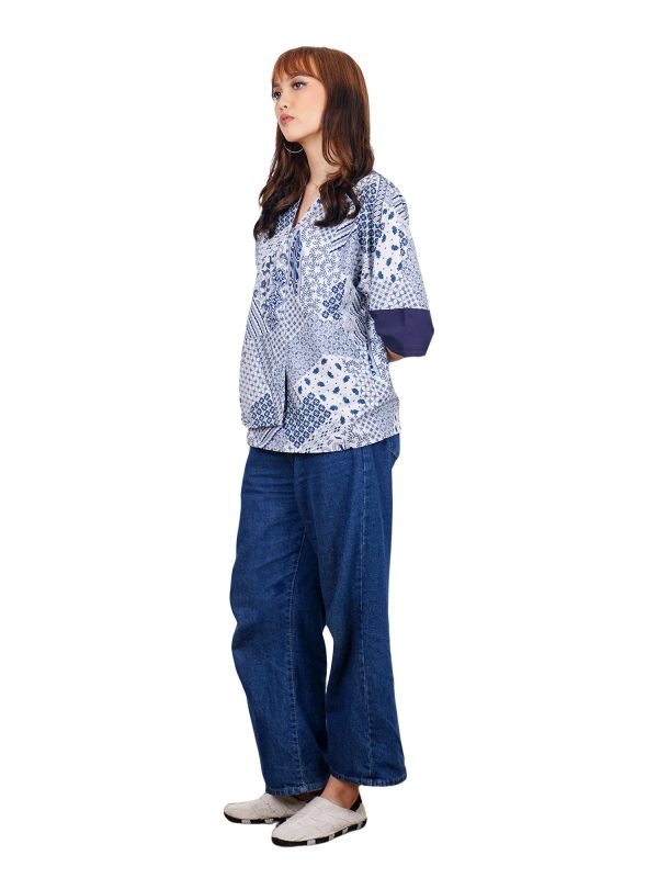 1. Blouse batik cap bergaya modern ethnic untuk semiformal look