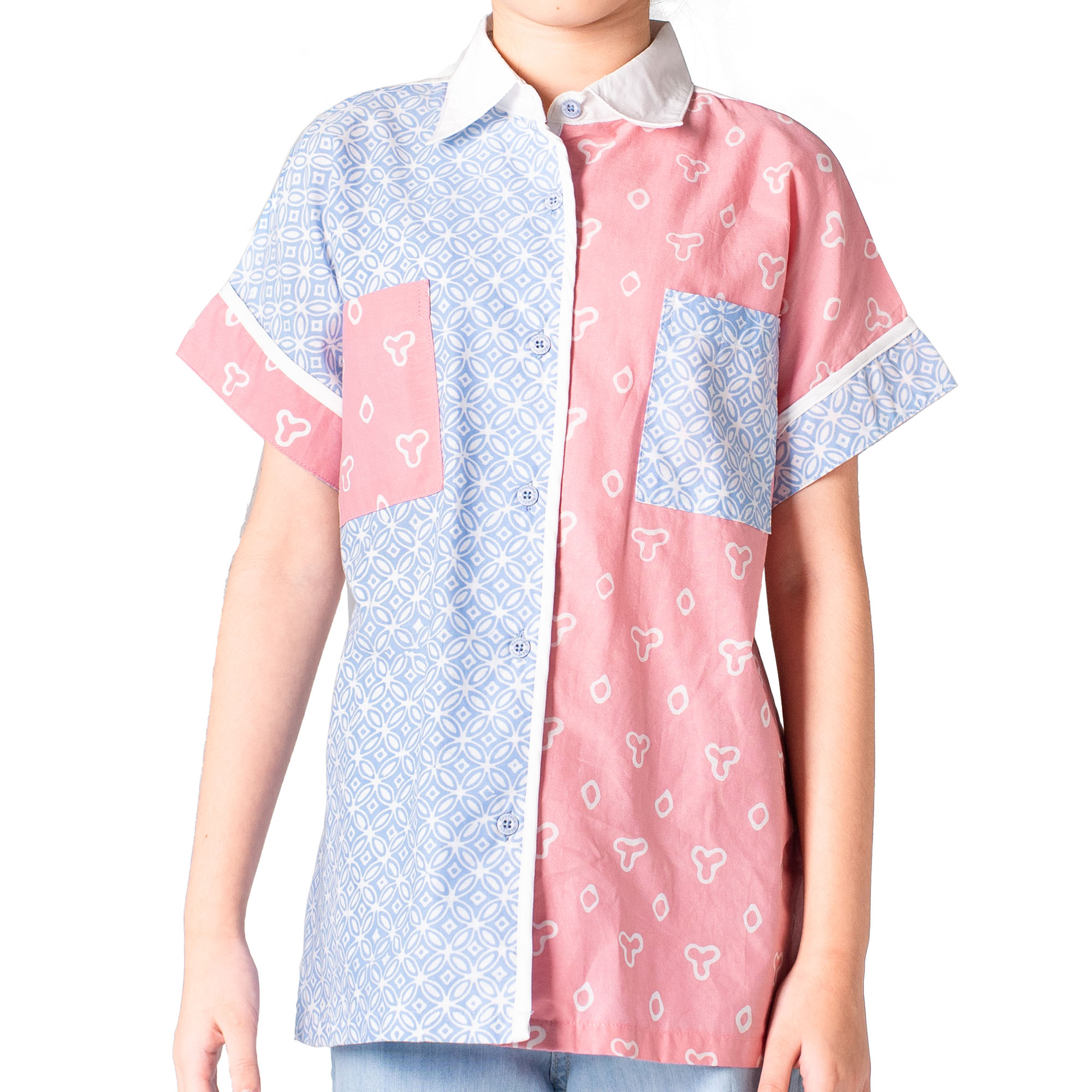 1. Kemeja bergaya semi formal detail motif batik cap yang modern