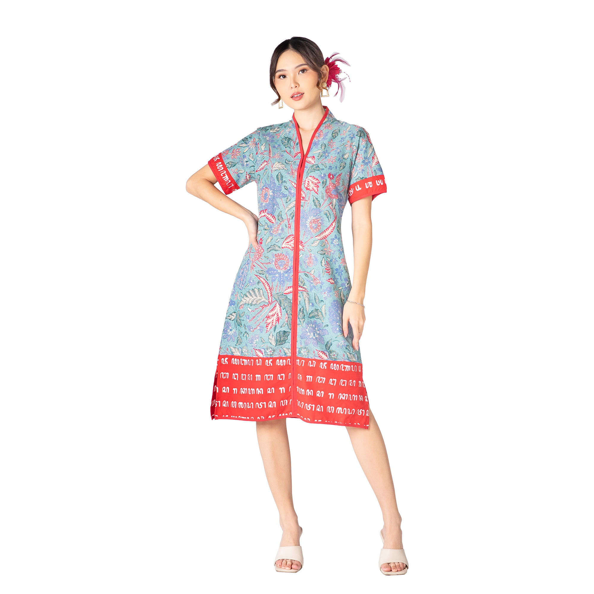 1. Sackdress detail motif batik cap kombinasi bernuansa modern