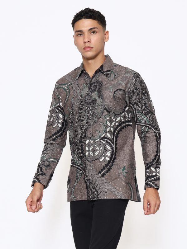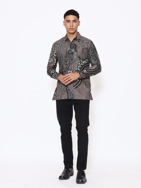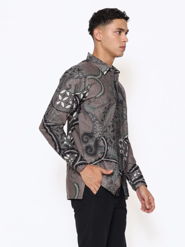 1. Kemeja batik print dengan detail motif yang elegan