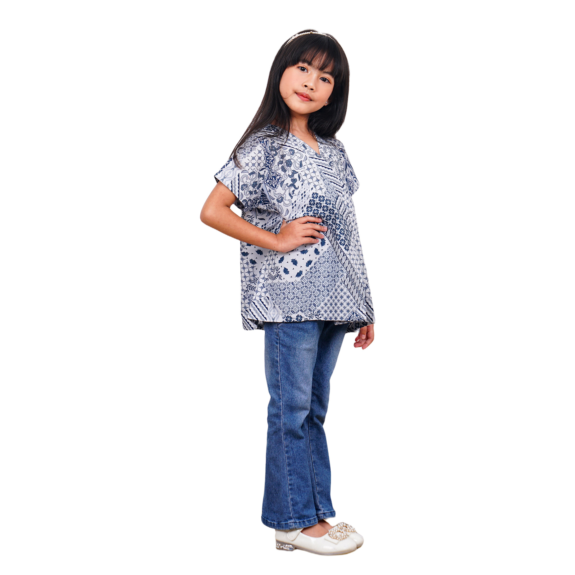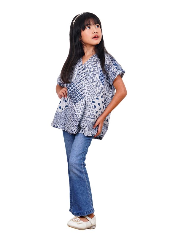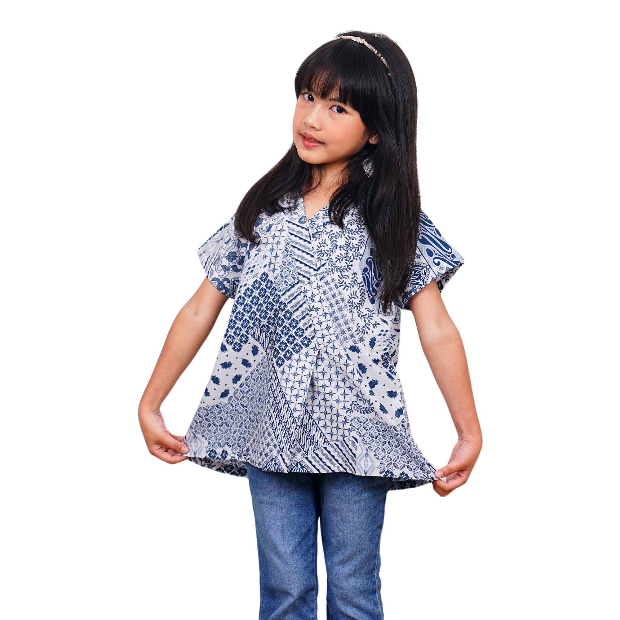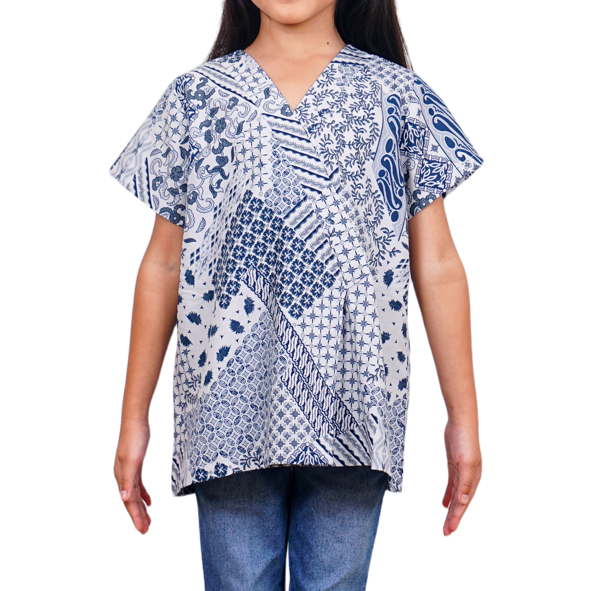 1. Blouse batik print desain boxy cut yang nyaman digunakan