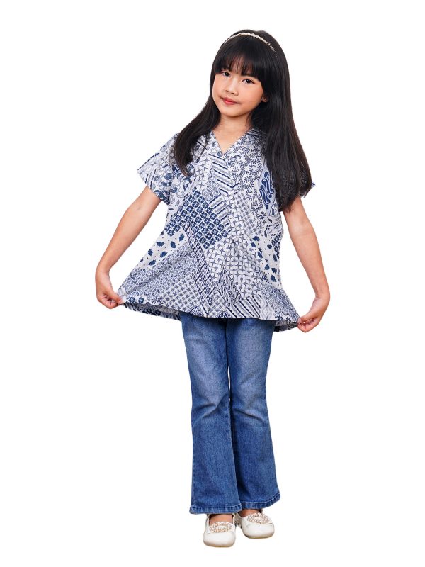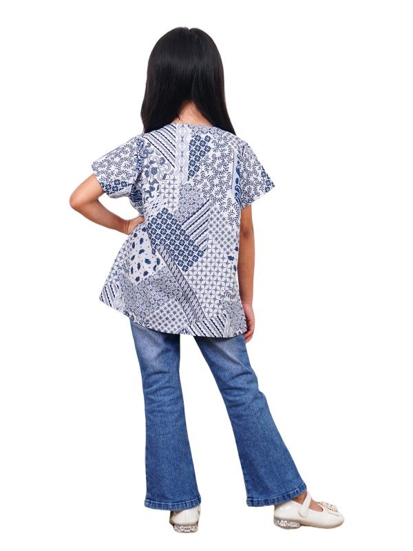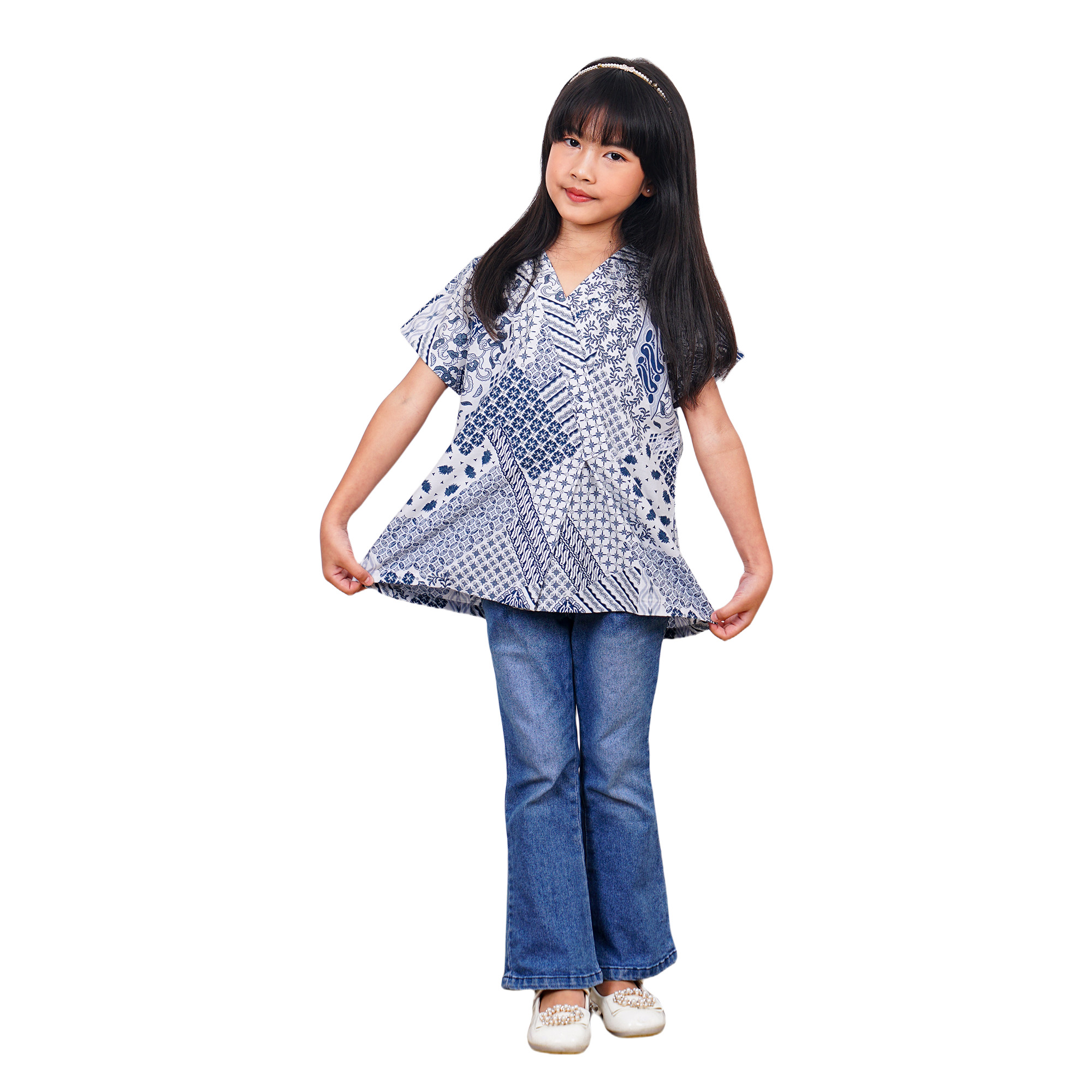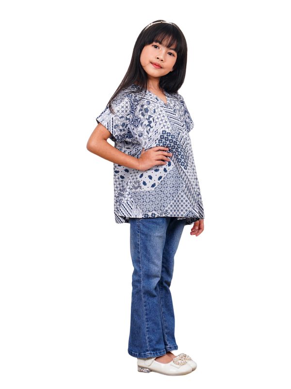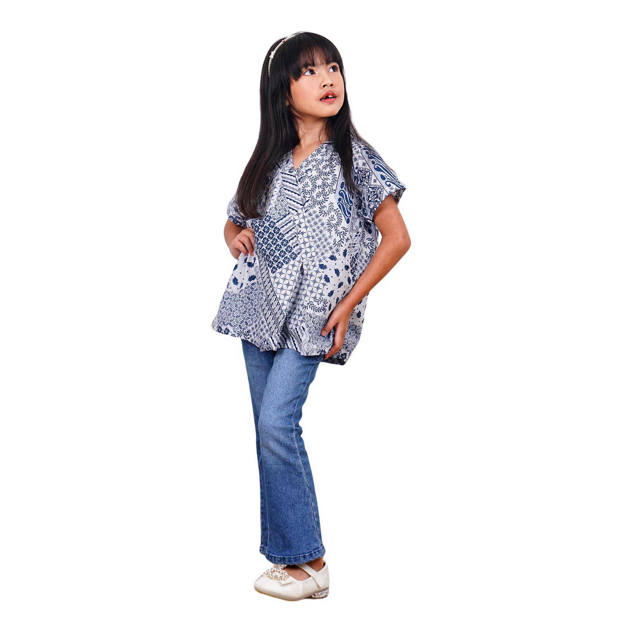 1. Blouse batik print desain boxy cut yang nyaman digunakan