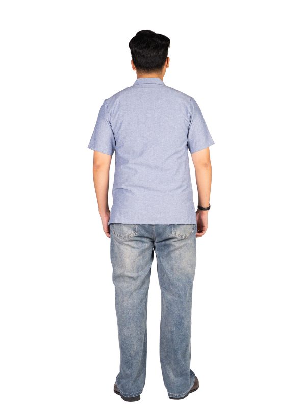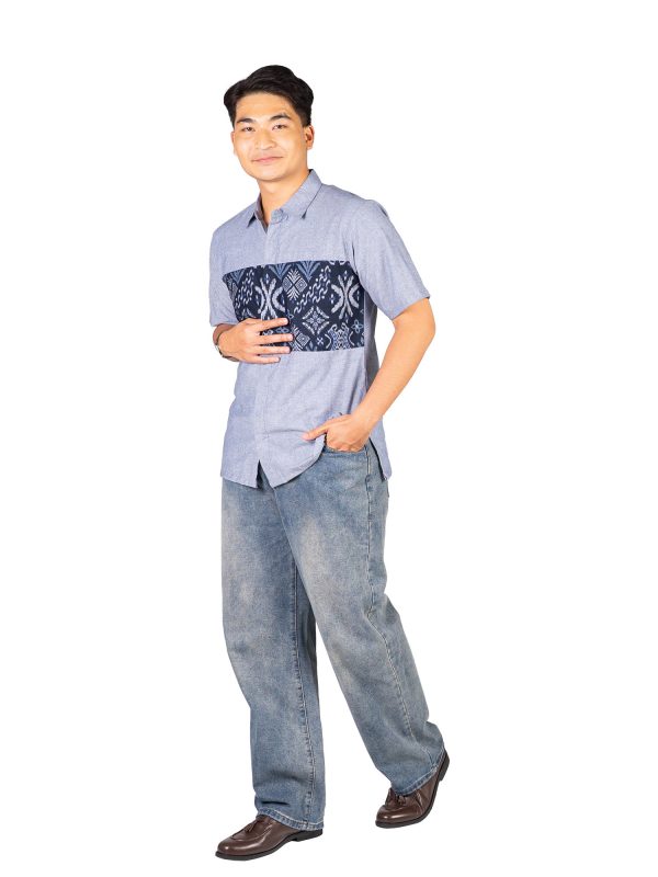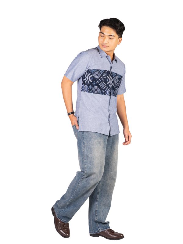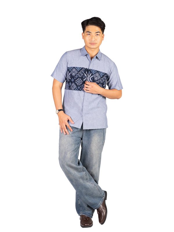 1. Kemeja bergaya modern perpaduan antara batik dan polosan