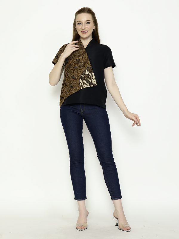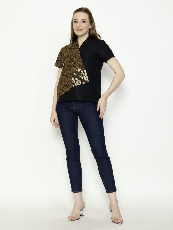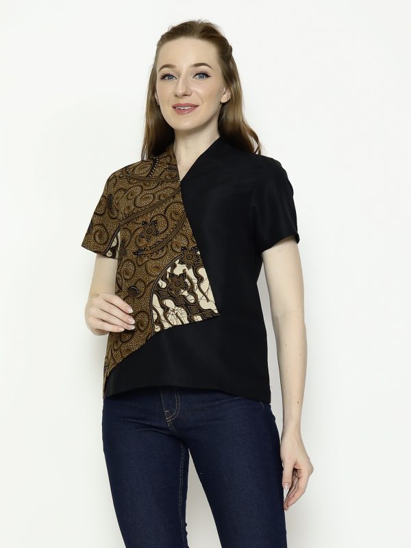 1. Blouse batik print bernuansa two tone untuk timeless ethnic look