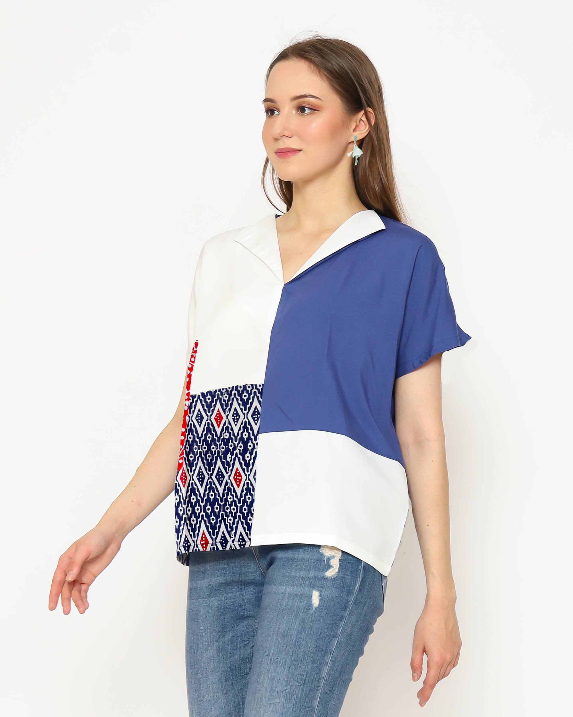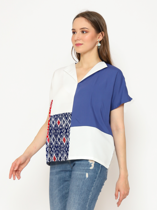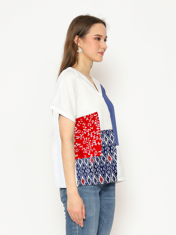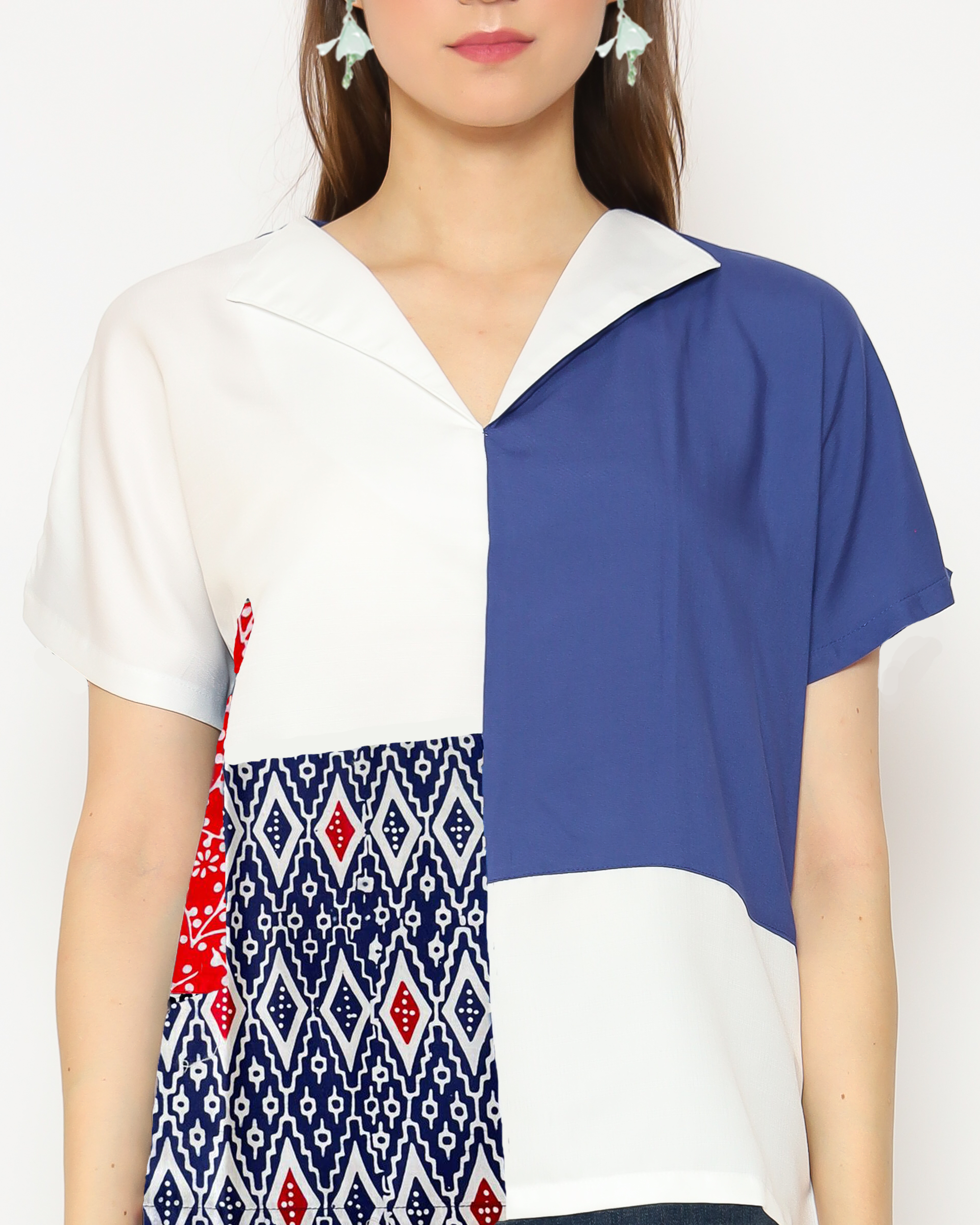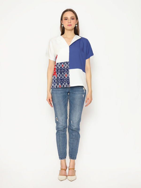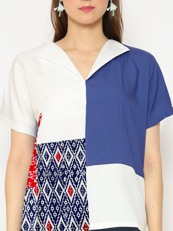 1. Blouse batik cap desain color block untuk modern ethnic look