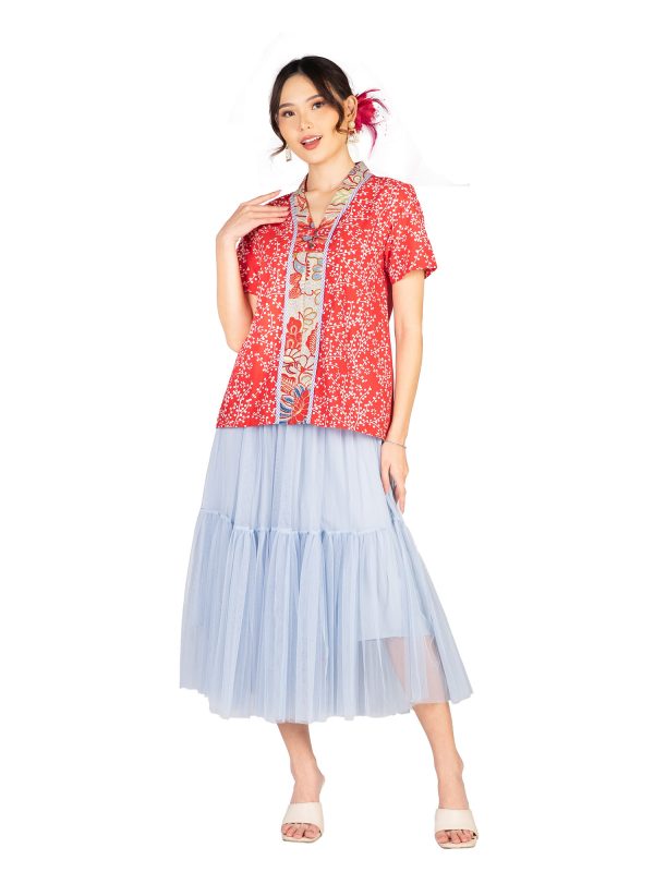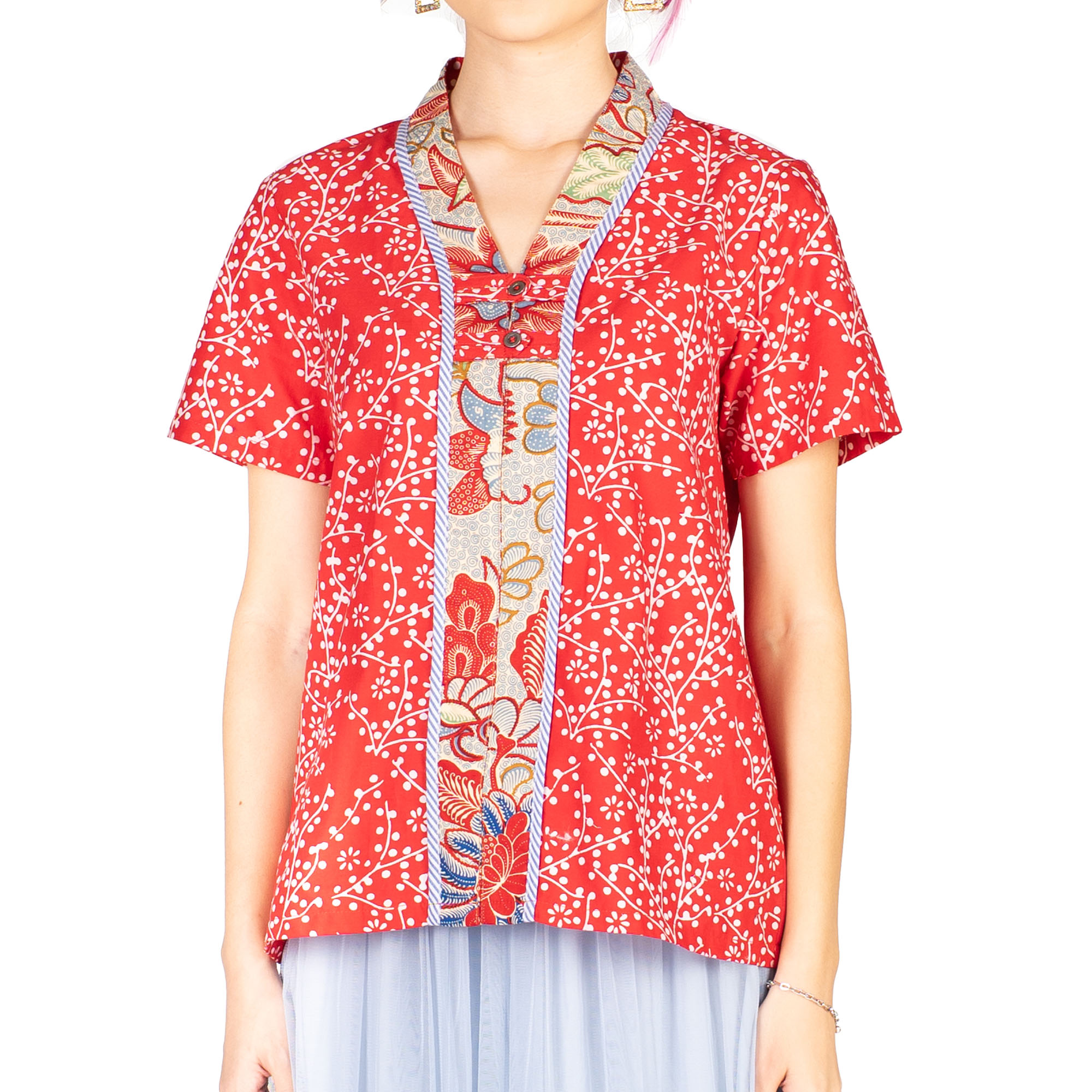 1. Blouse patchwork batik cap bergaya modern untuk ethnic chic look