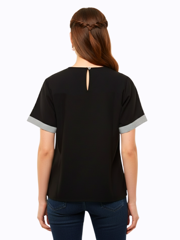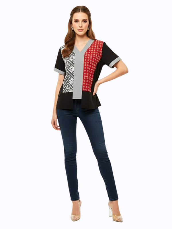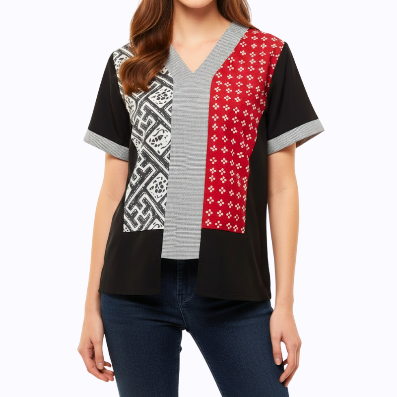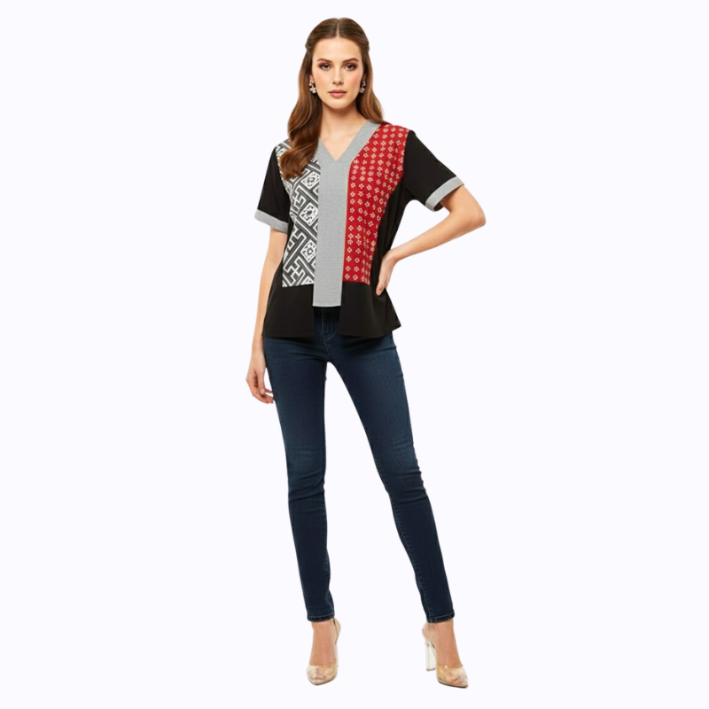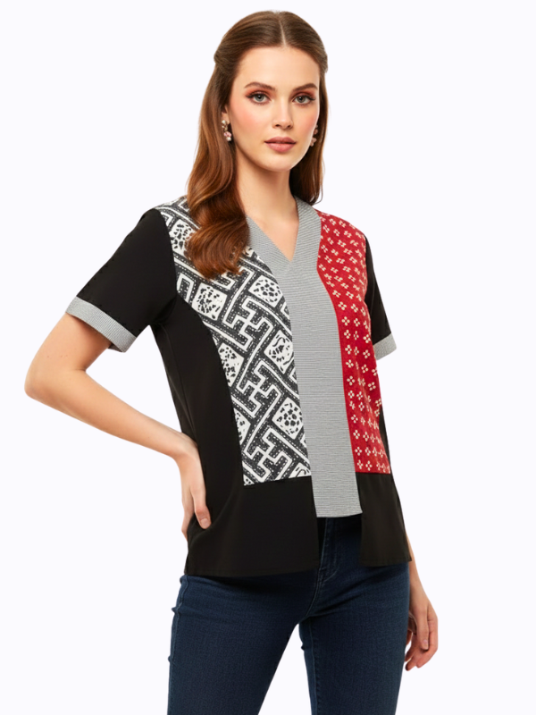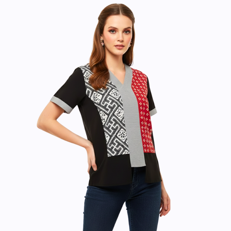 1. Blouse batik cap dengan desain sleek cut yang modern