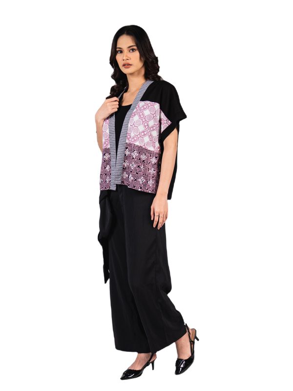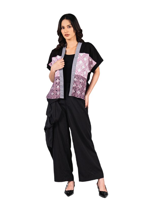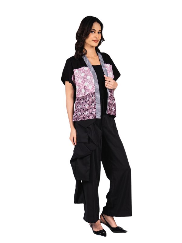 1. Blazer batik cap patchwork dengan desain boxy cut yang modern