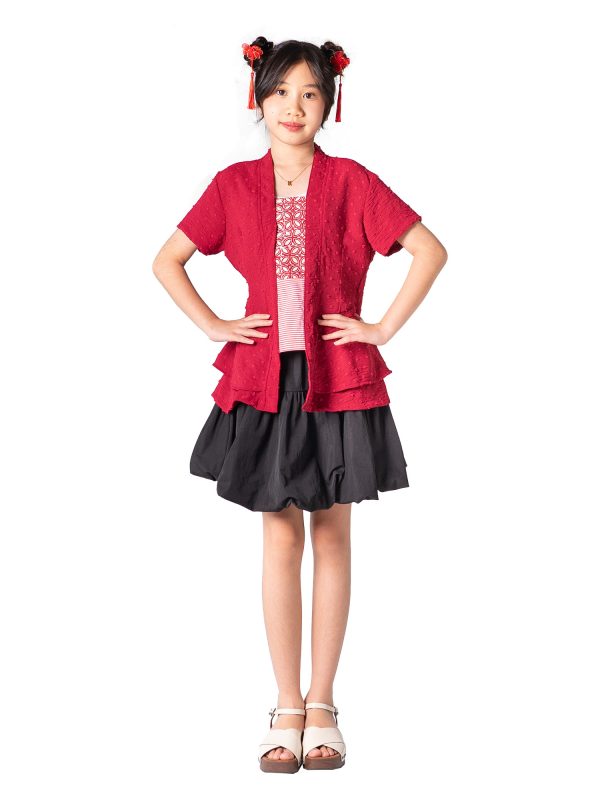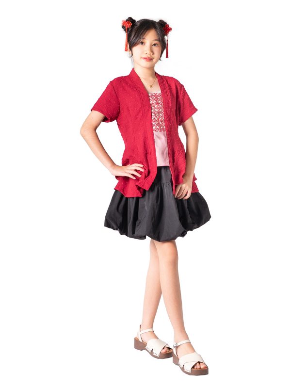 1. Blouse desain kutubaru dengan aksen batik cap bergaya ethnic modern