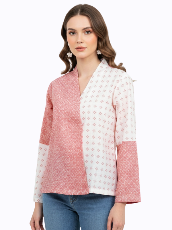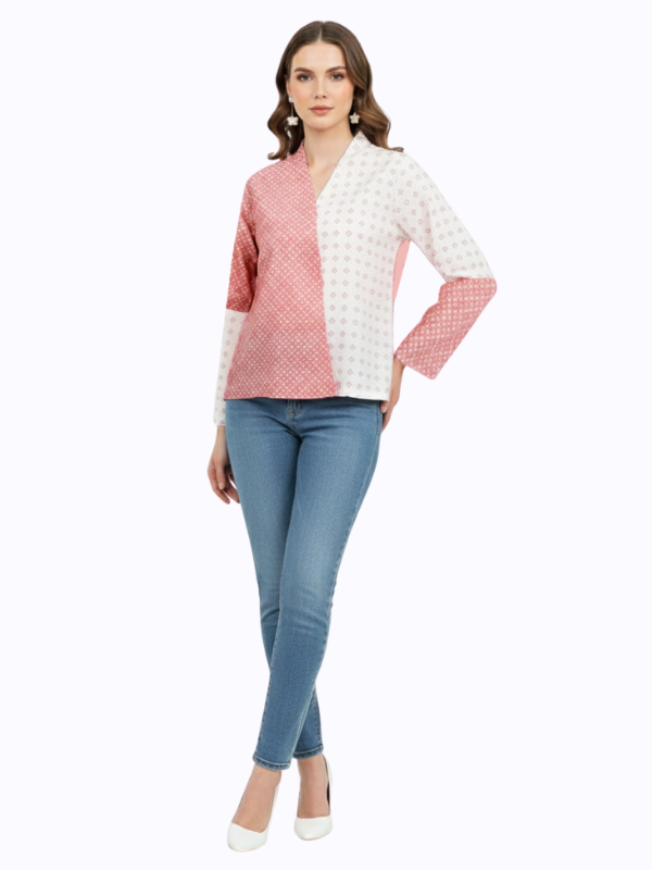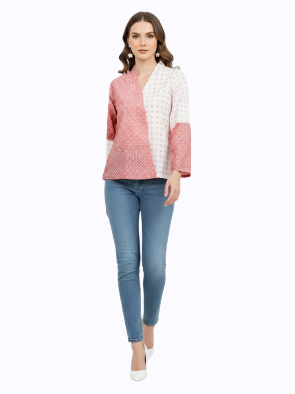 1. Blouse batik cap bergaya modern ethnic untuk formal look