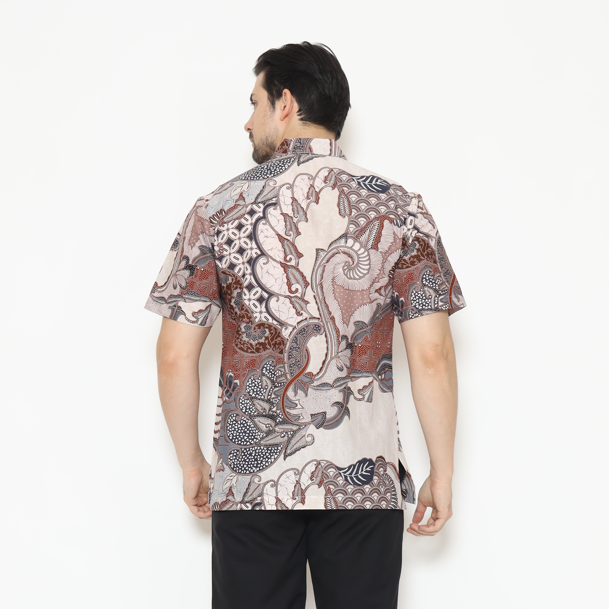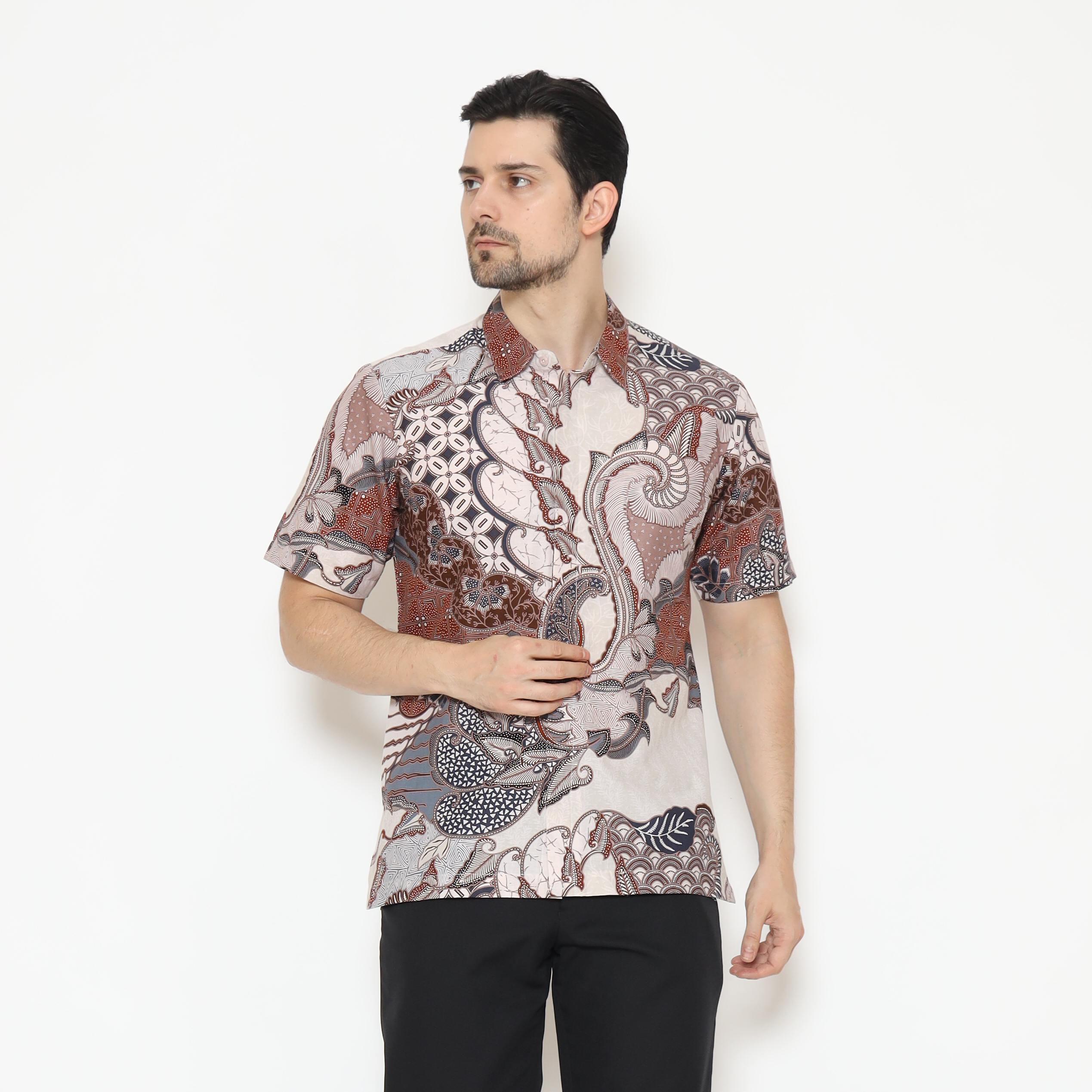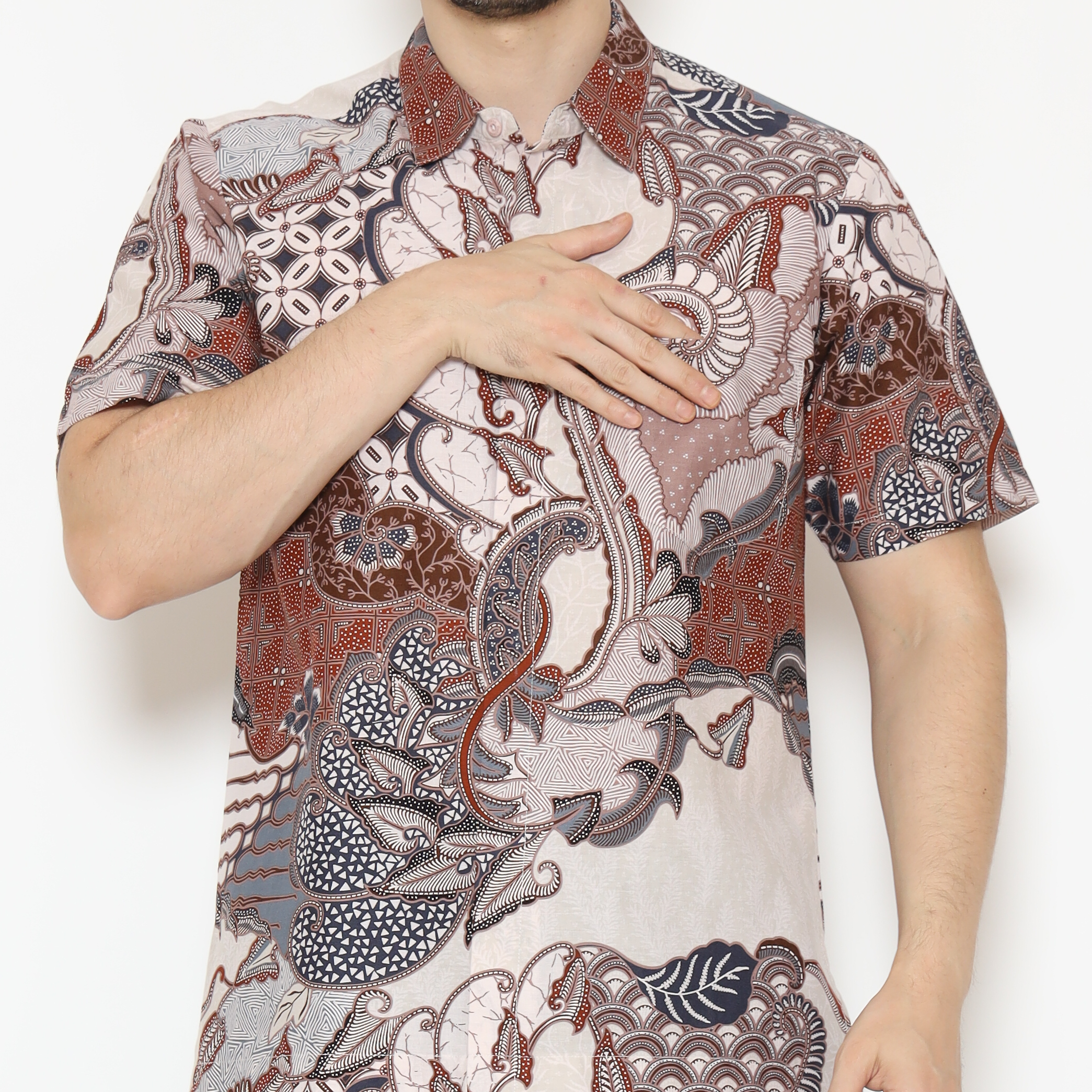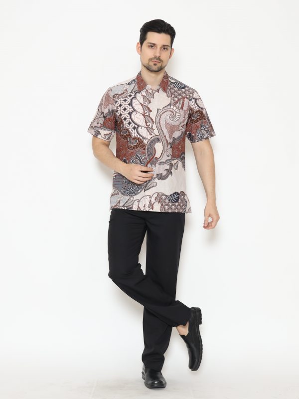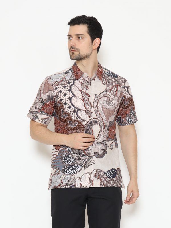 1. Kemeja batik print dengan detail motif yang elegan