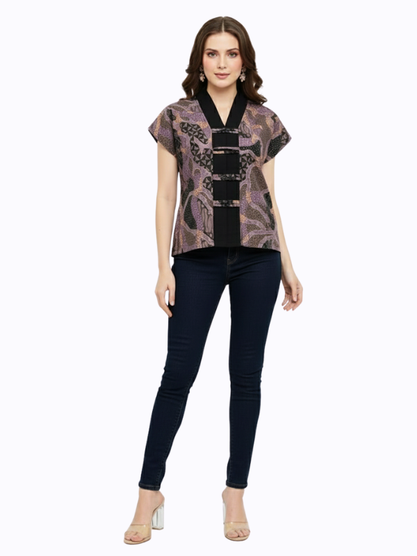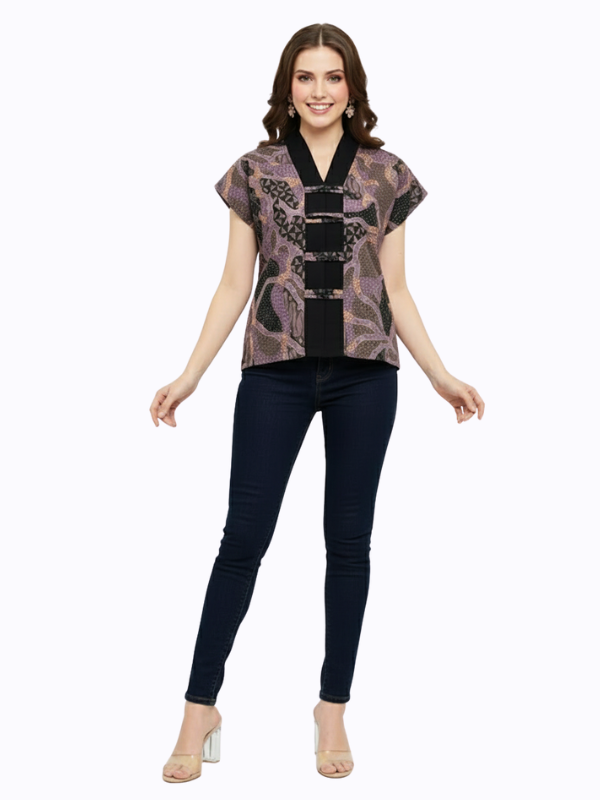 1. Blouse batik print dengan desain boxy cut yang modern