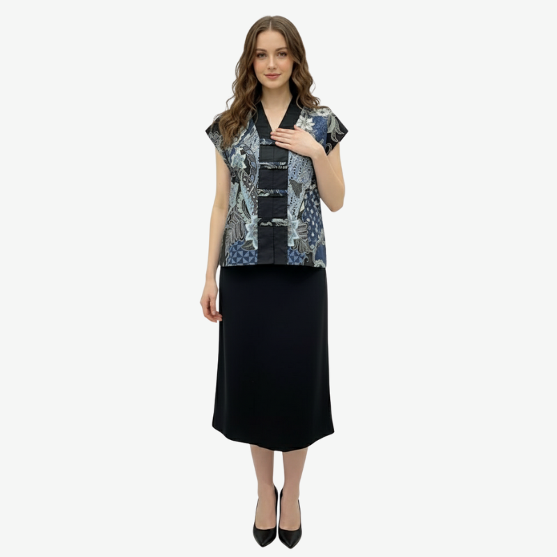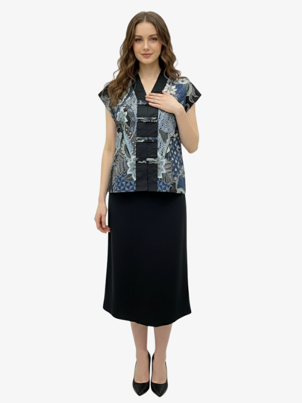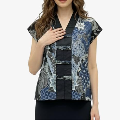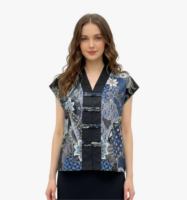 1. Blouse batik print dengan desain boxy cut yang modern