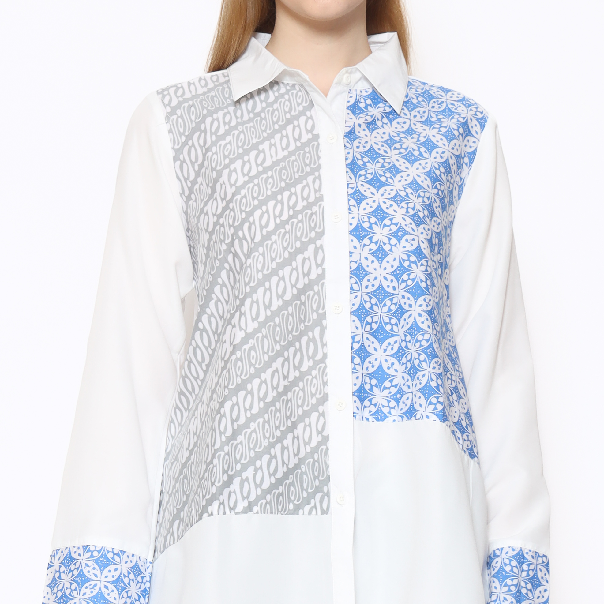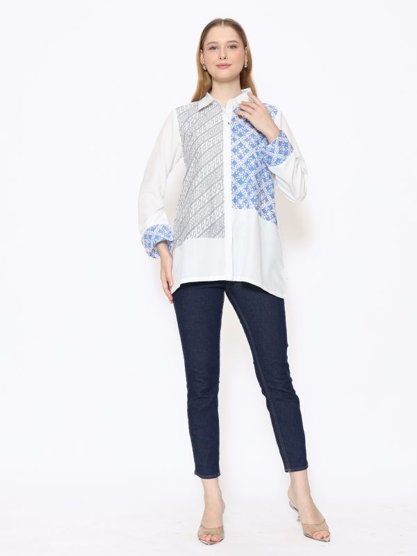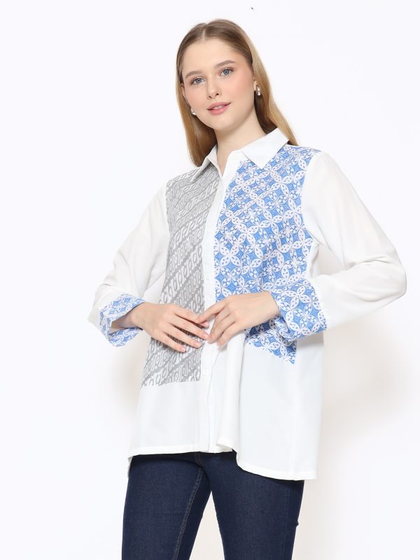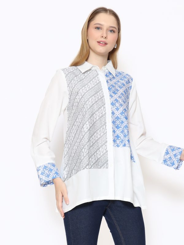 1. Kemeja batik cap bermotif bunga untuk modern ethnic look